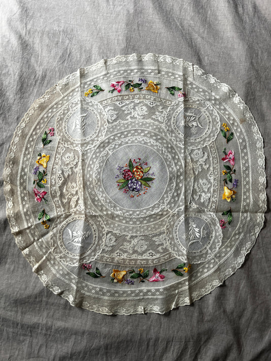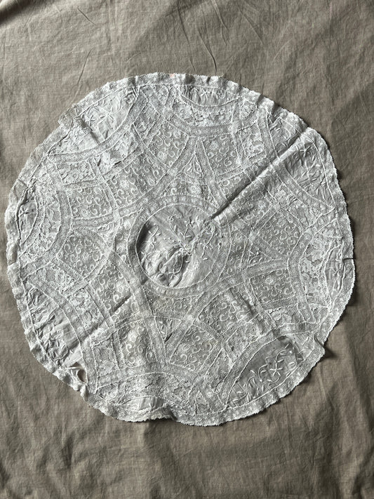 刺繍入りノルマンディレース円形クロス