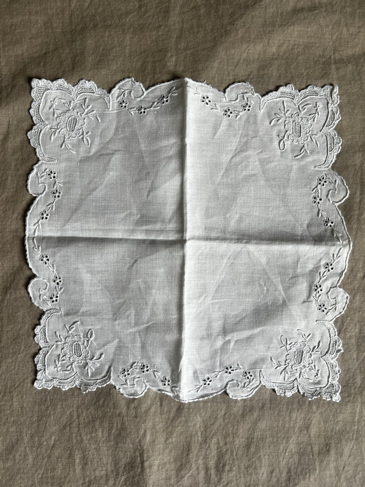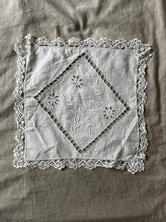 刺繍とレースのハンカチ