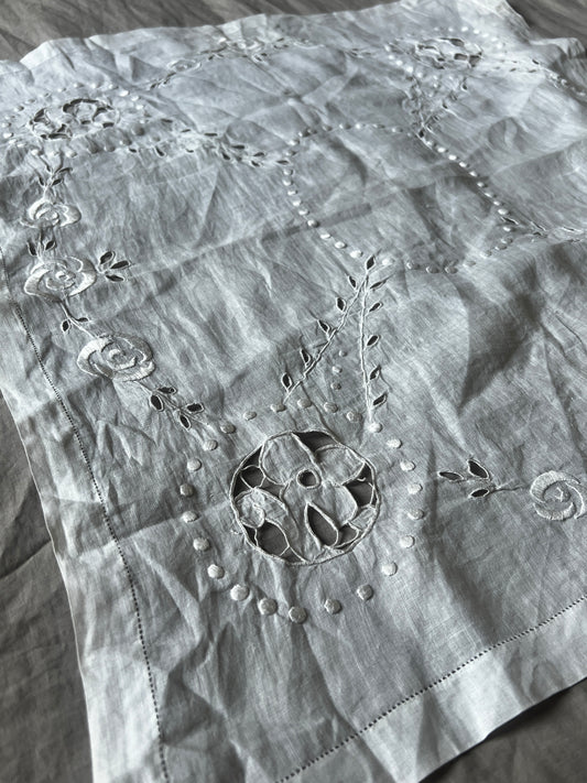 Sold outカットワーク刺繍リネンクロス(ダメージ)