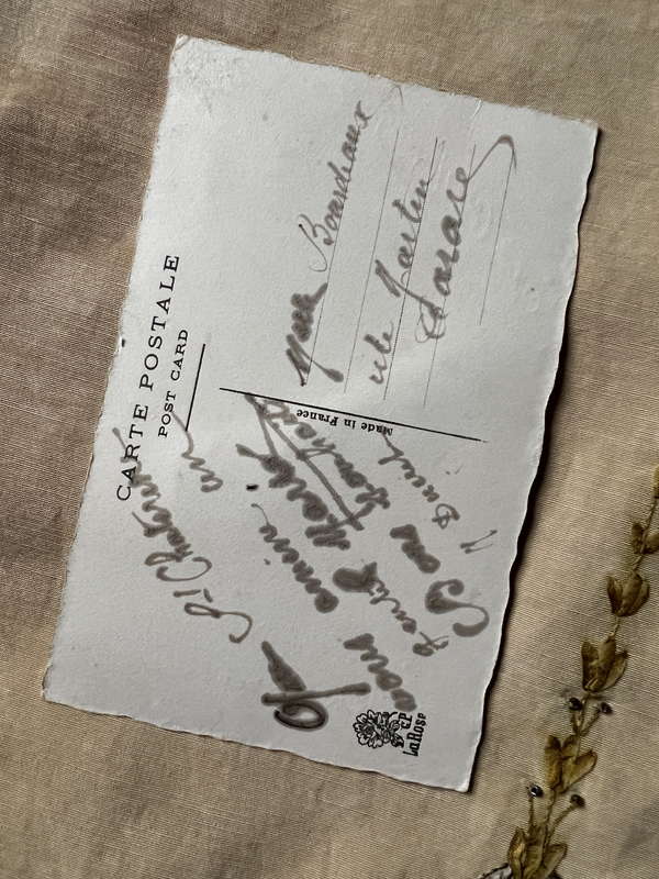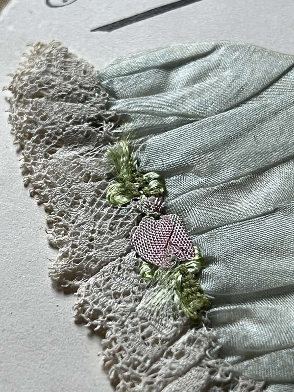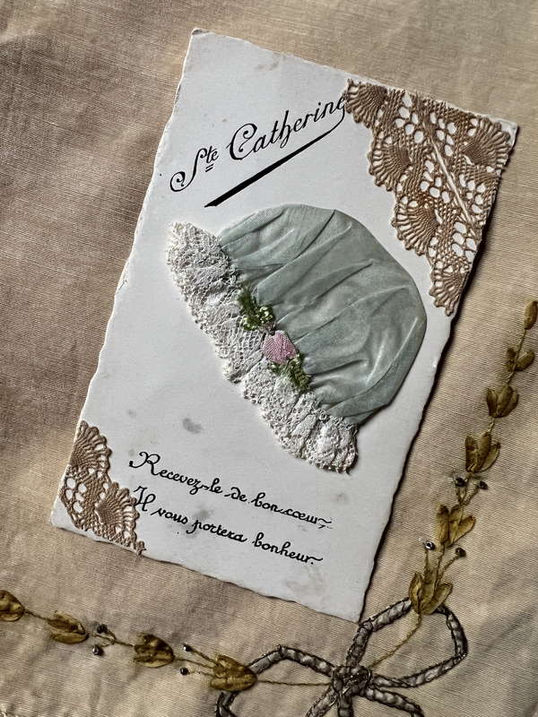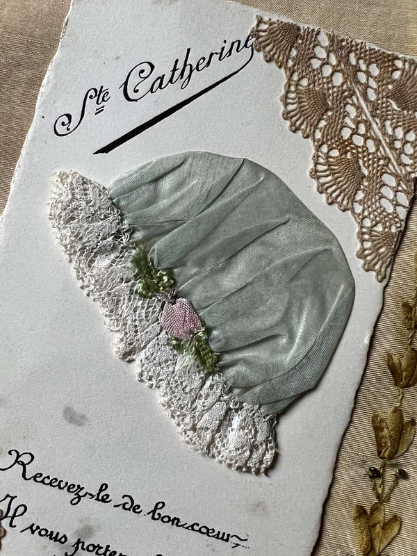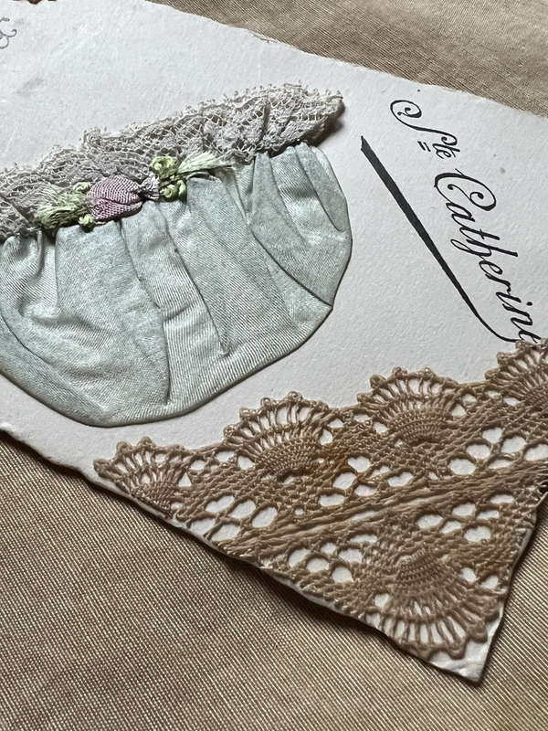 くすんだブルーのカラーが美しいミニサイズのボネとレースで装飾されたカードです。