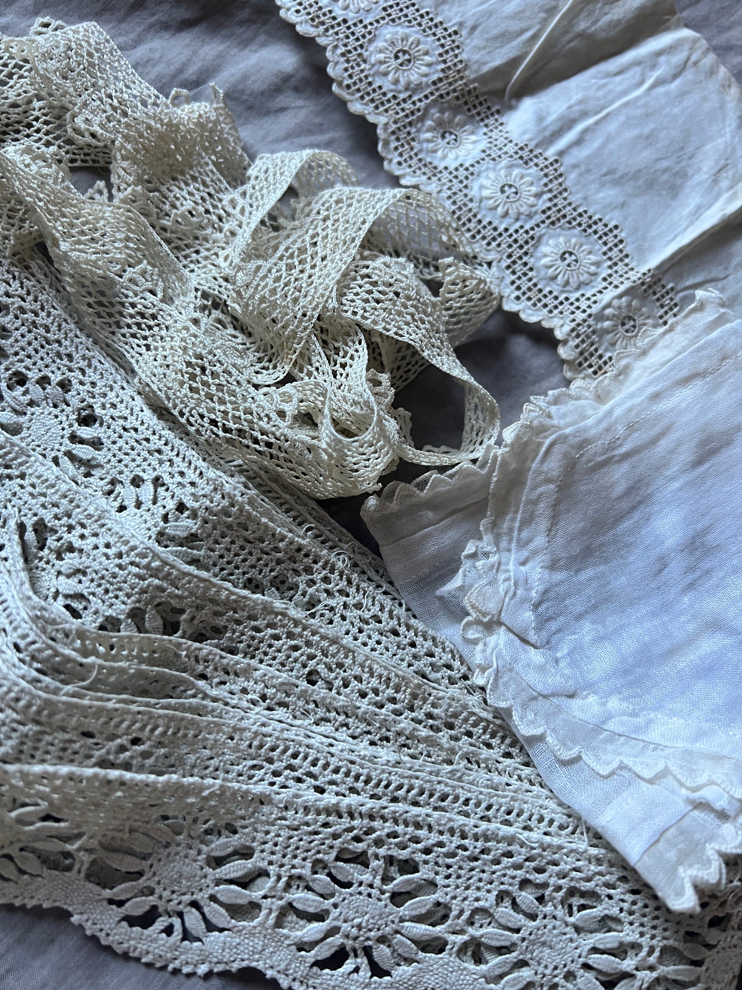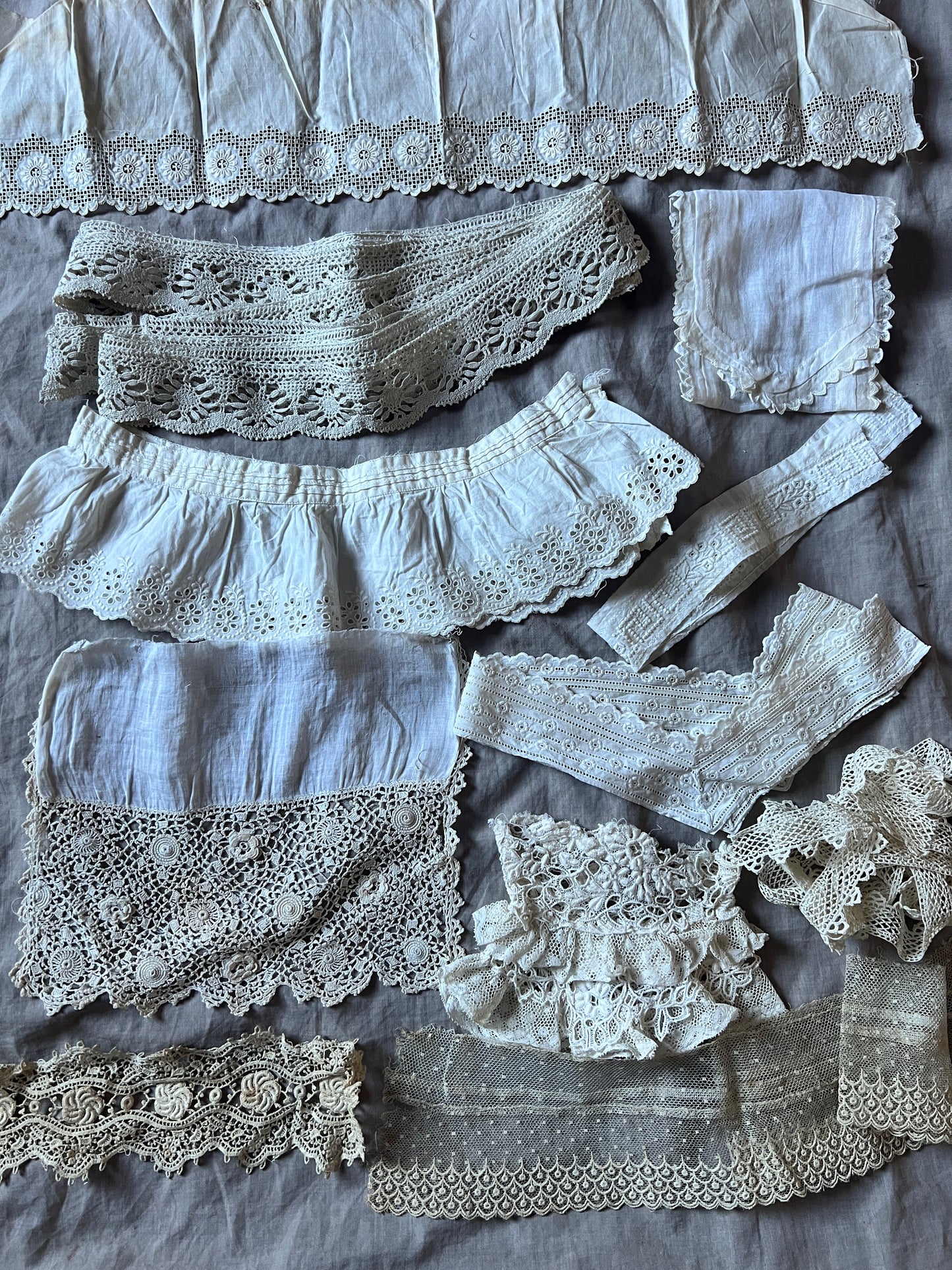レースの端布やパーツなど材料として使えそうなものをいろいろセットにしました。