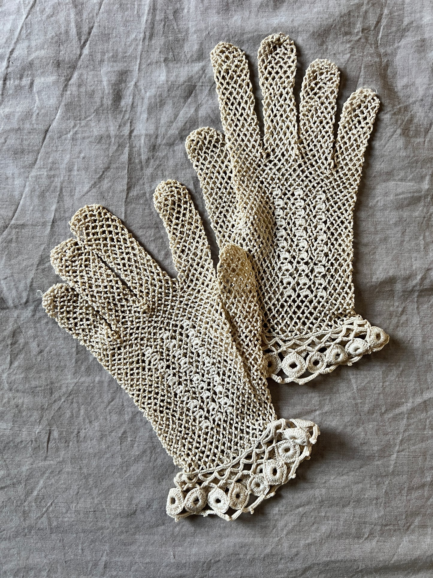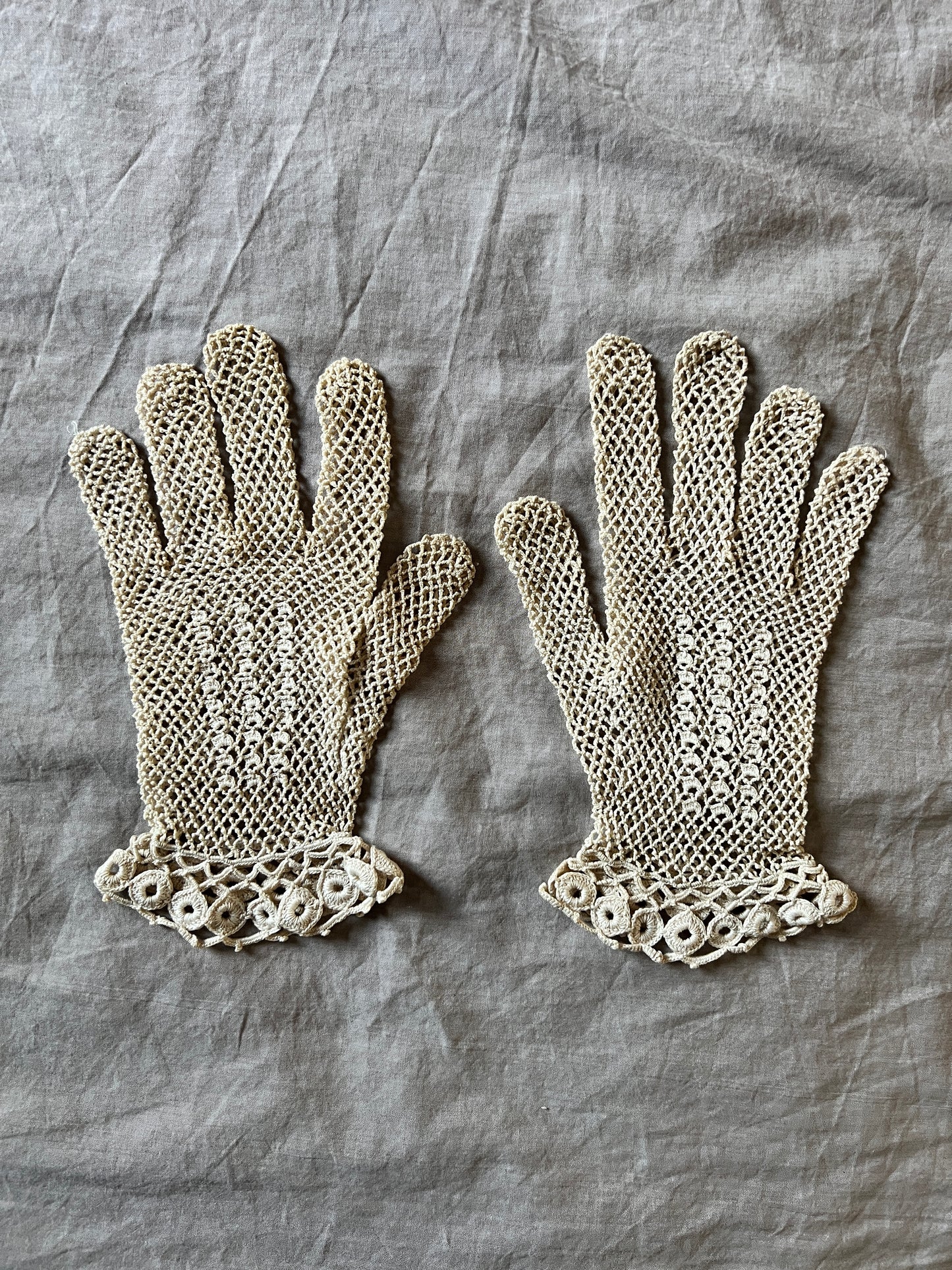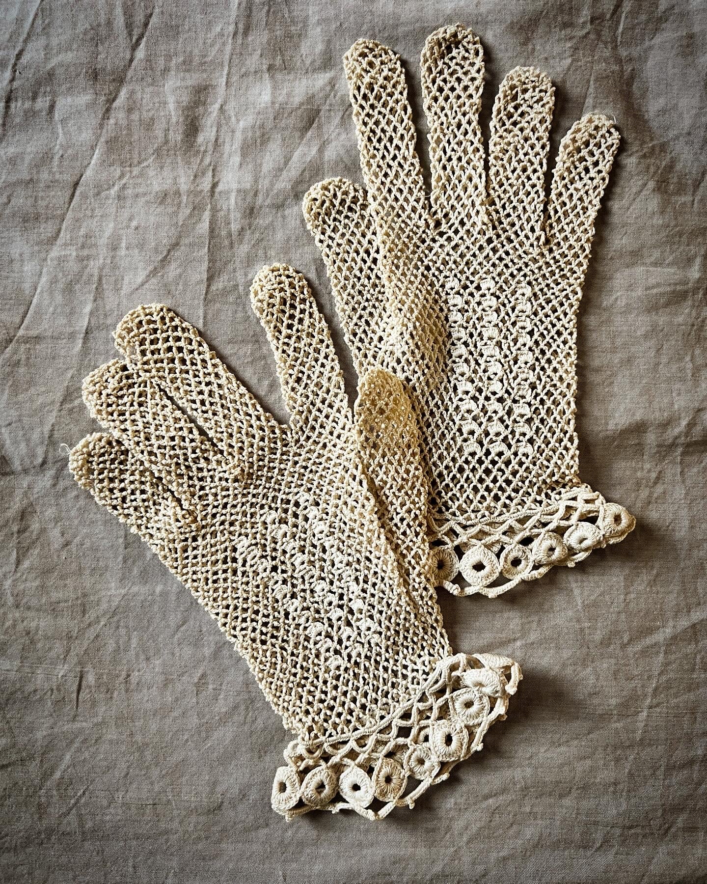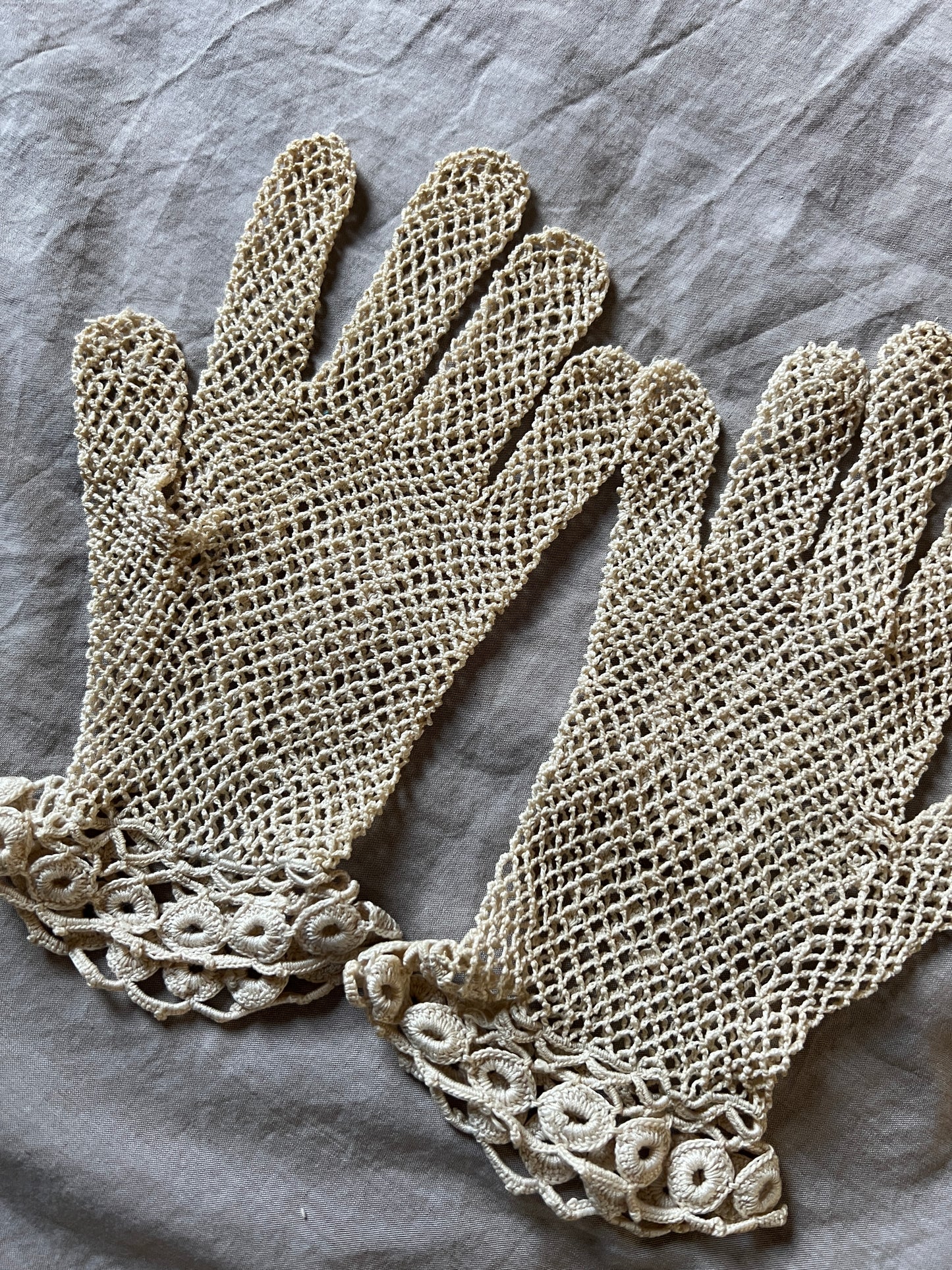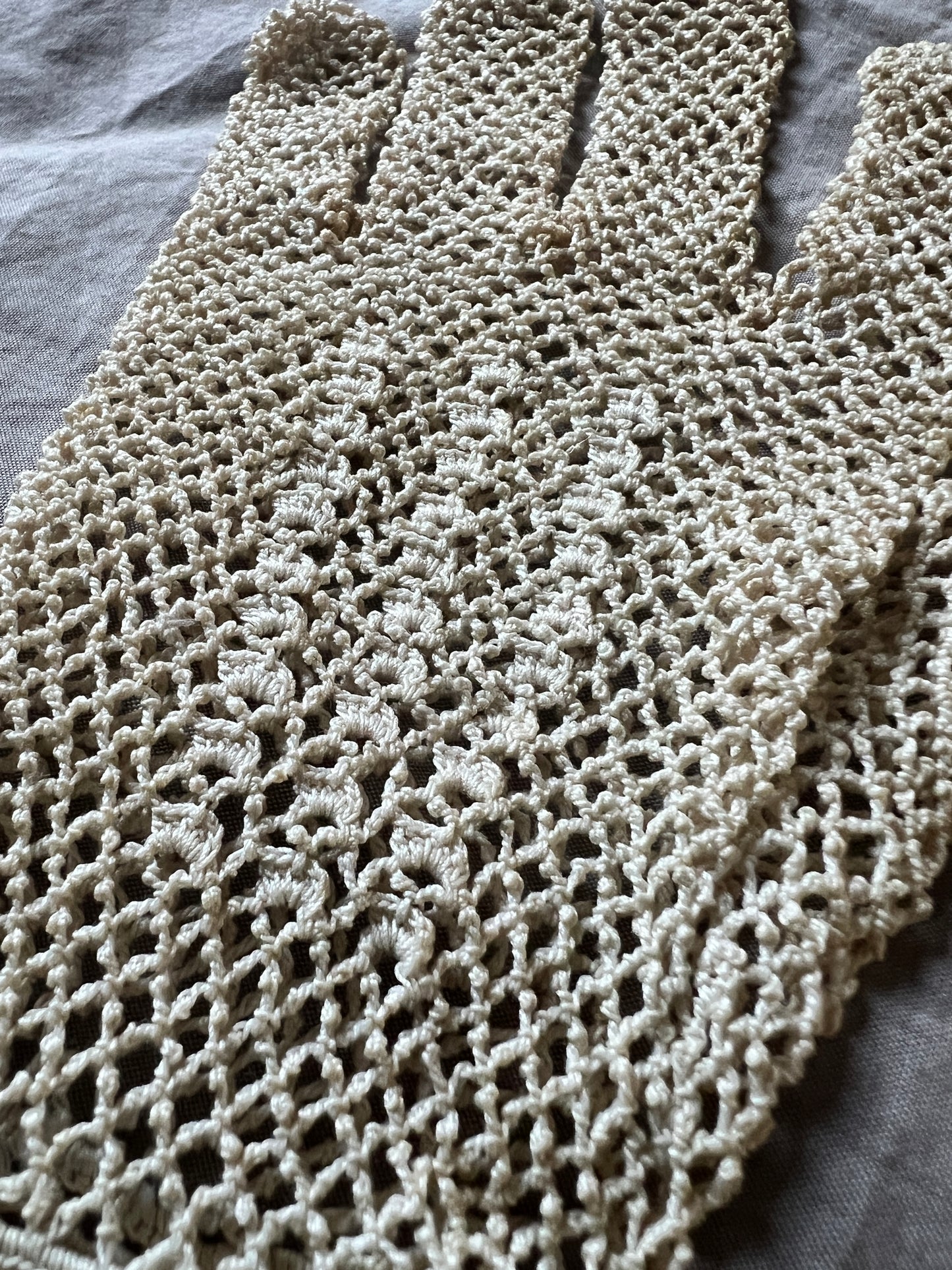 淡いミルクティー色のクロシェレースグローブです