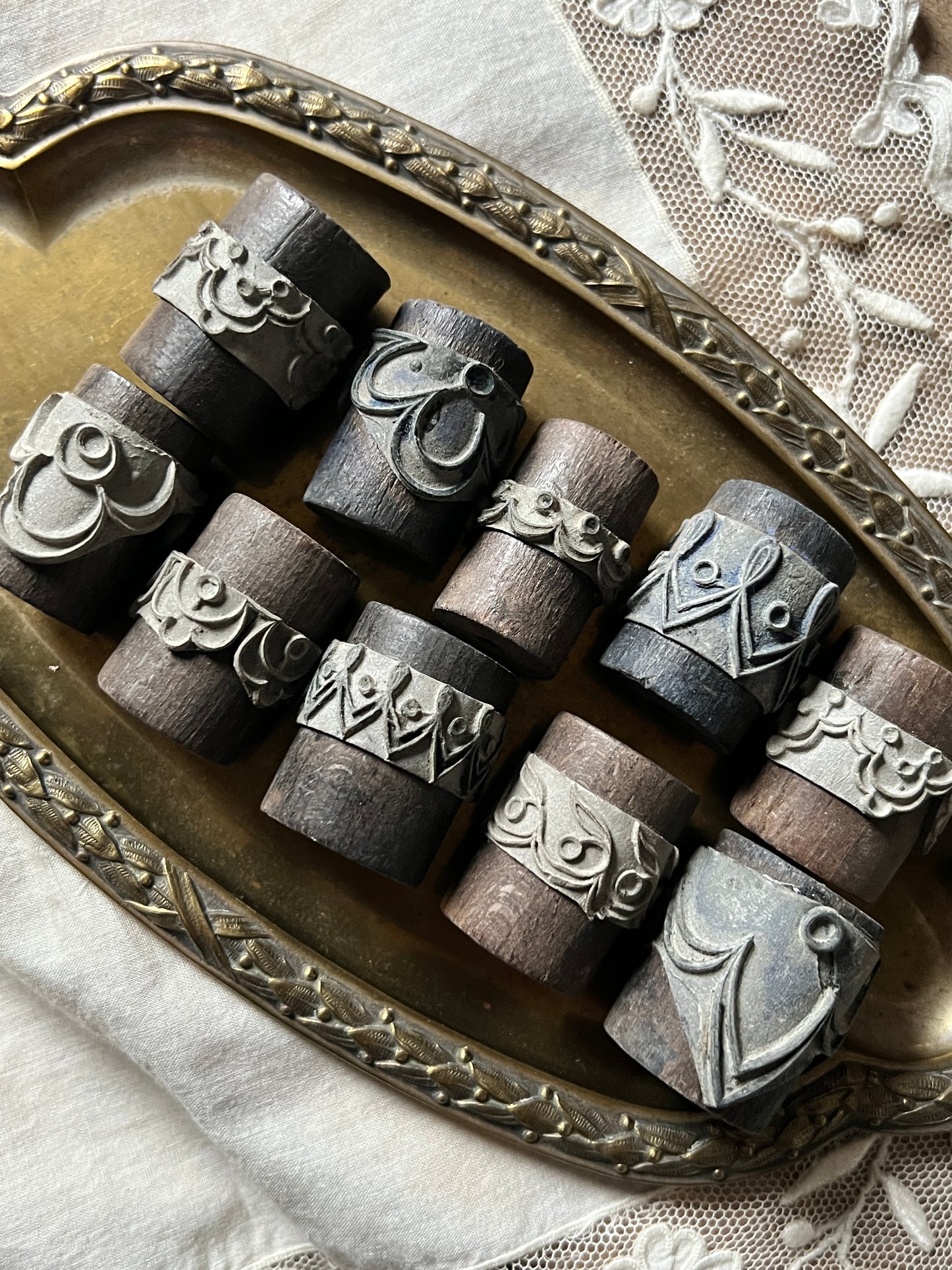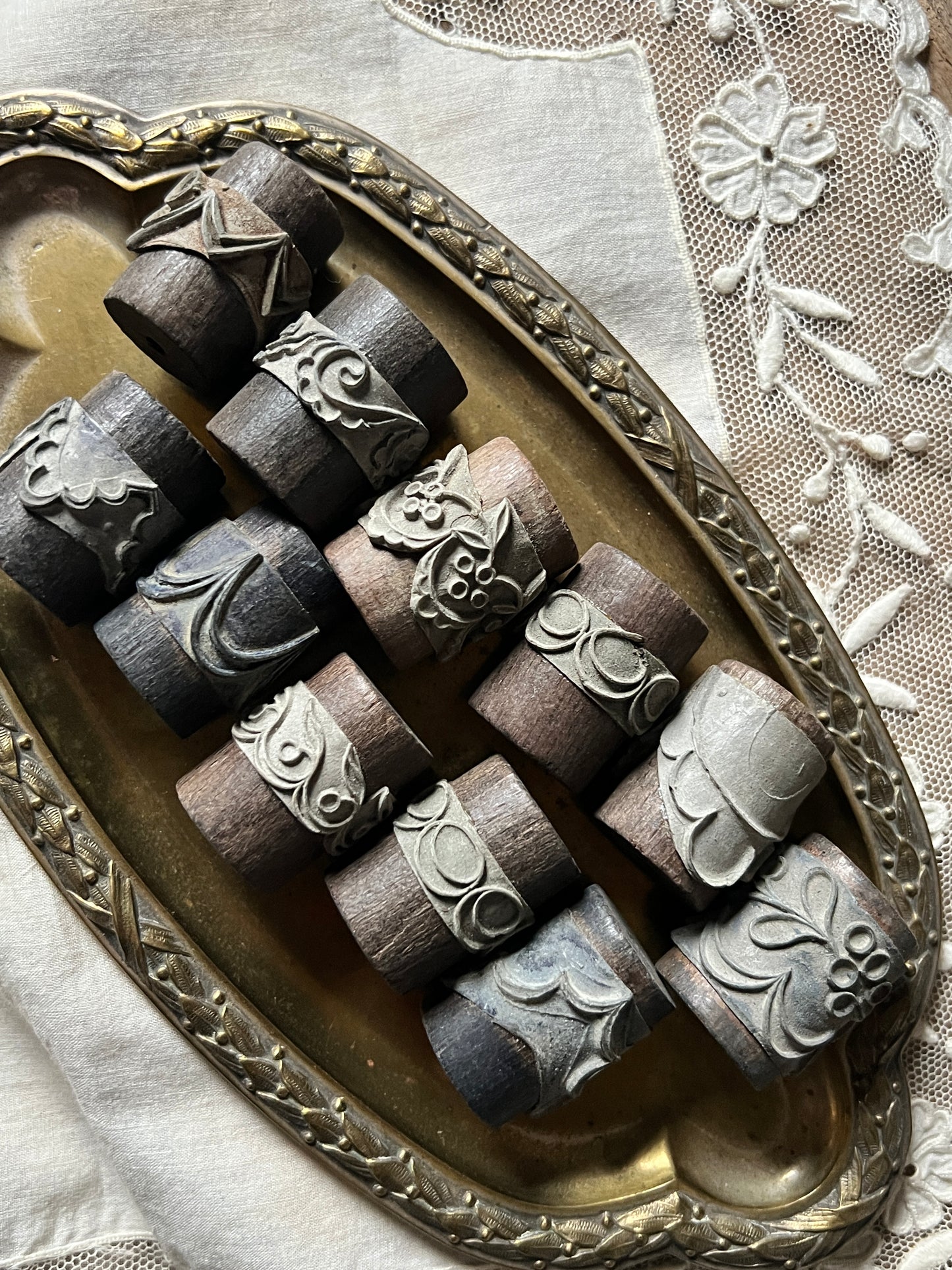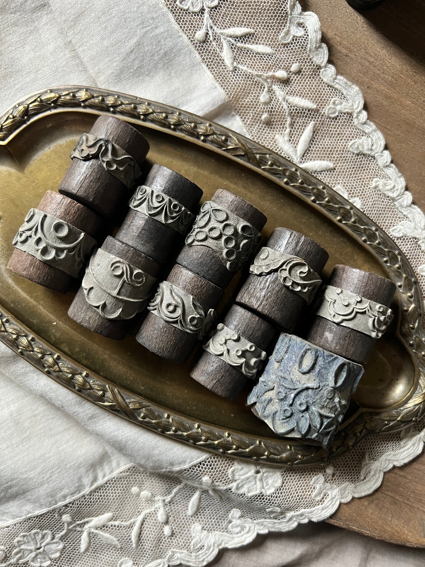スカラップ刺繍などの図案を描写するためのローラースタンプです