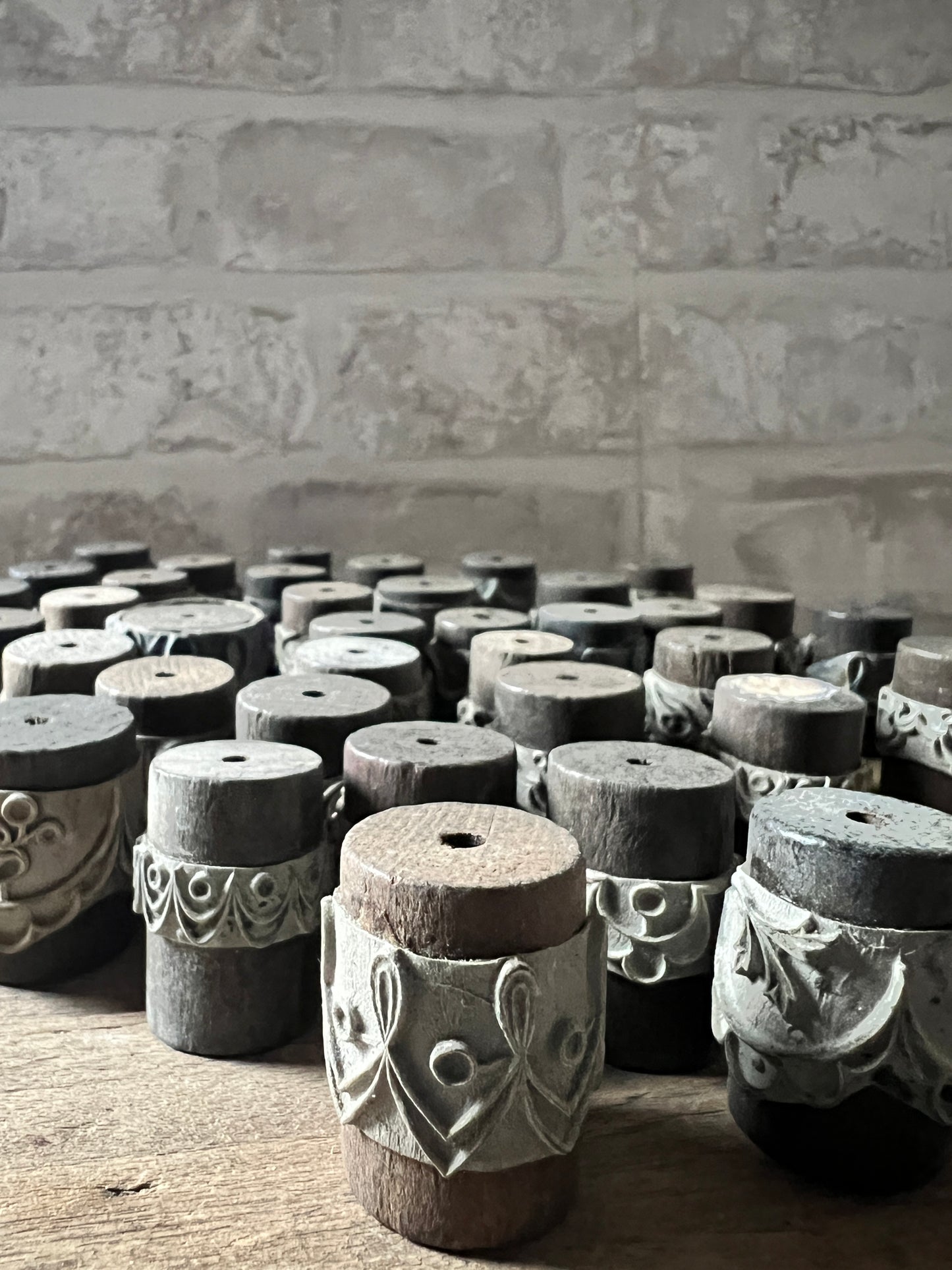 柄がない場合は丈夫な竹串などを中心の穴に刺してころころと転がして使うことも可能