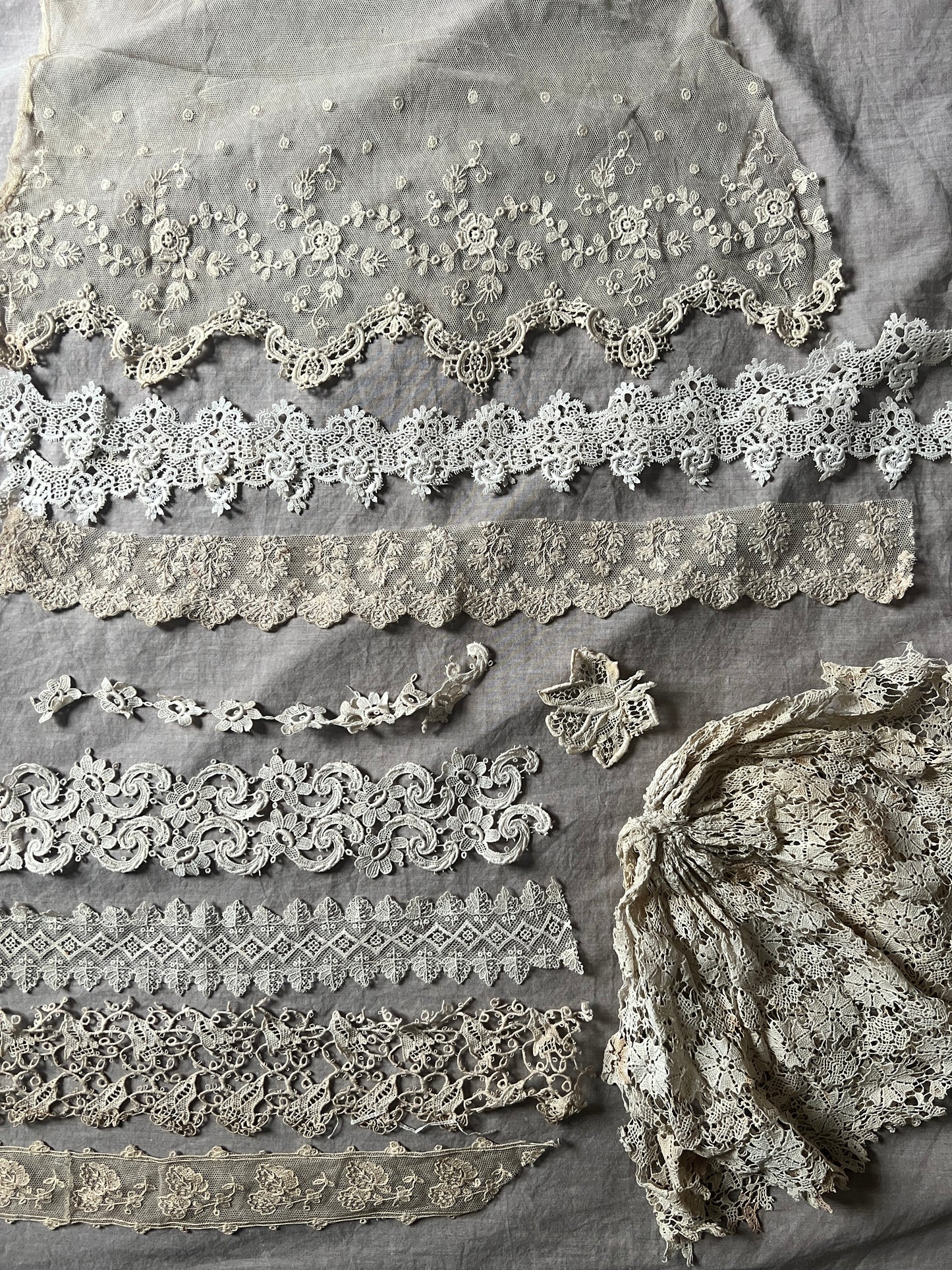 刺繍トリムの端布やパーツなど材料として使えそうなものをいろいろセットにしました