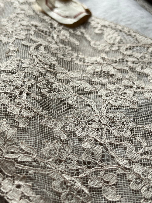 ほんのりとミルクティー色の幅広アンティークレースです。