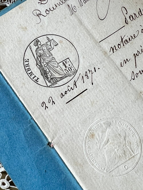 1871年の契約書で、芸術的に美しい書体で手描きされています。