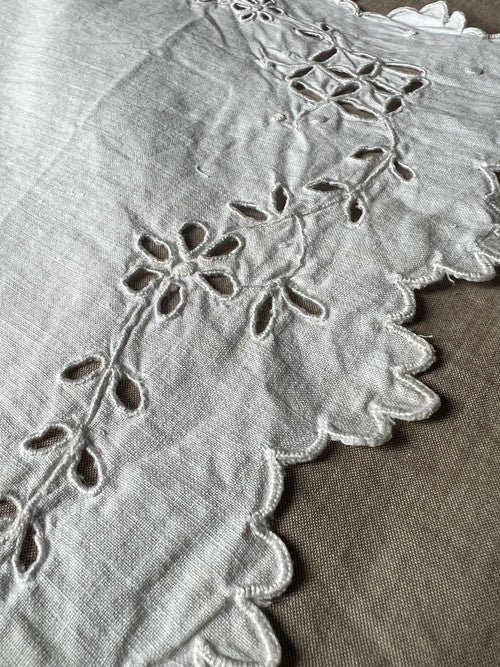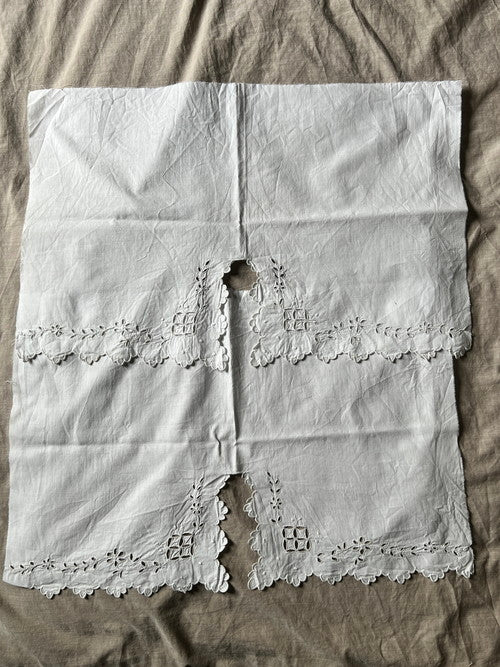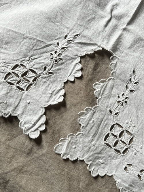スカラップの縁取りがかわいらしい白刺繍の端布です。 同デザインの2枚セット。