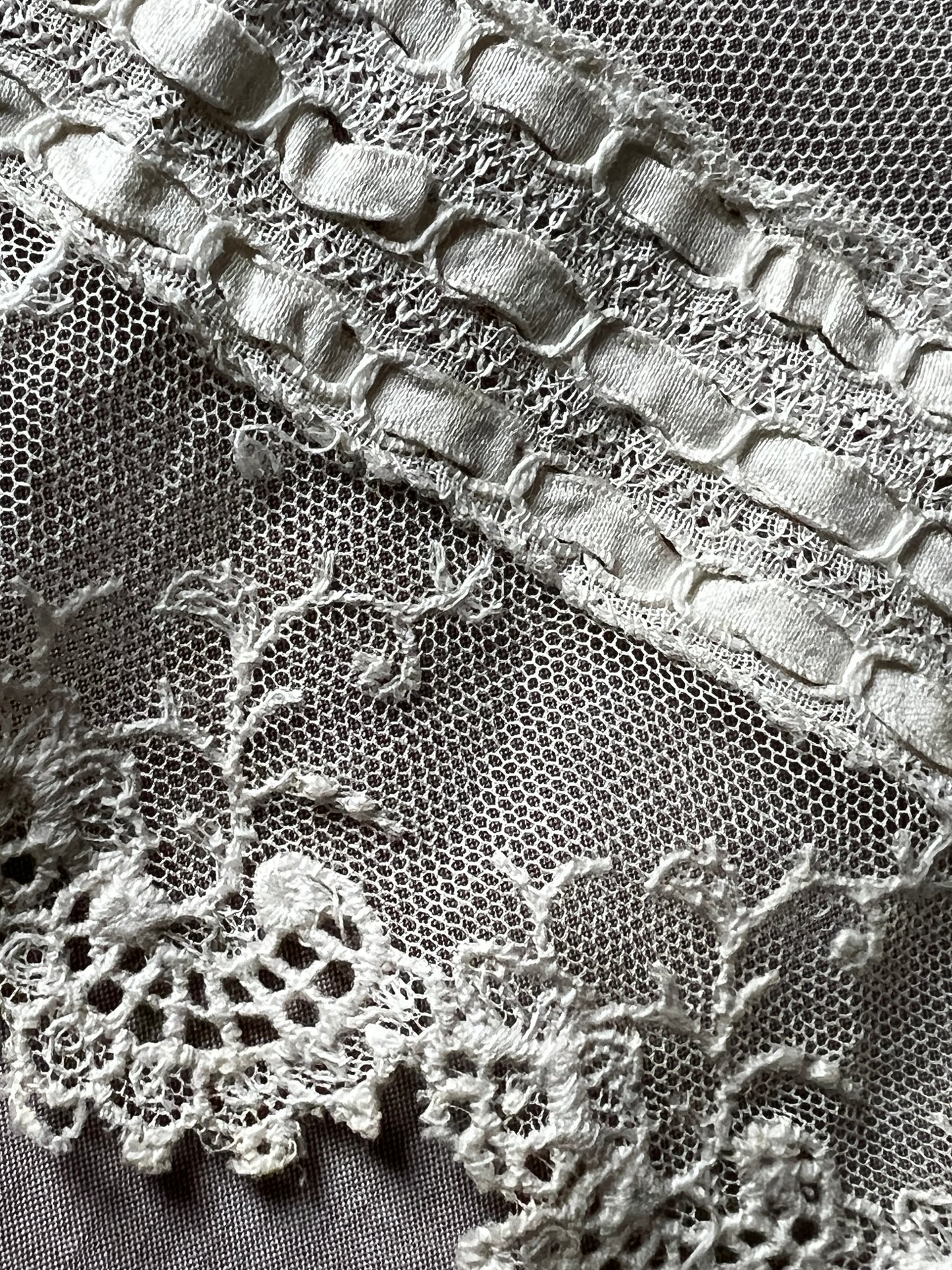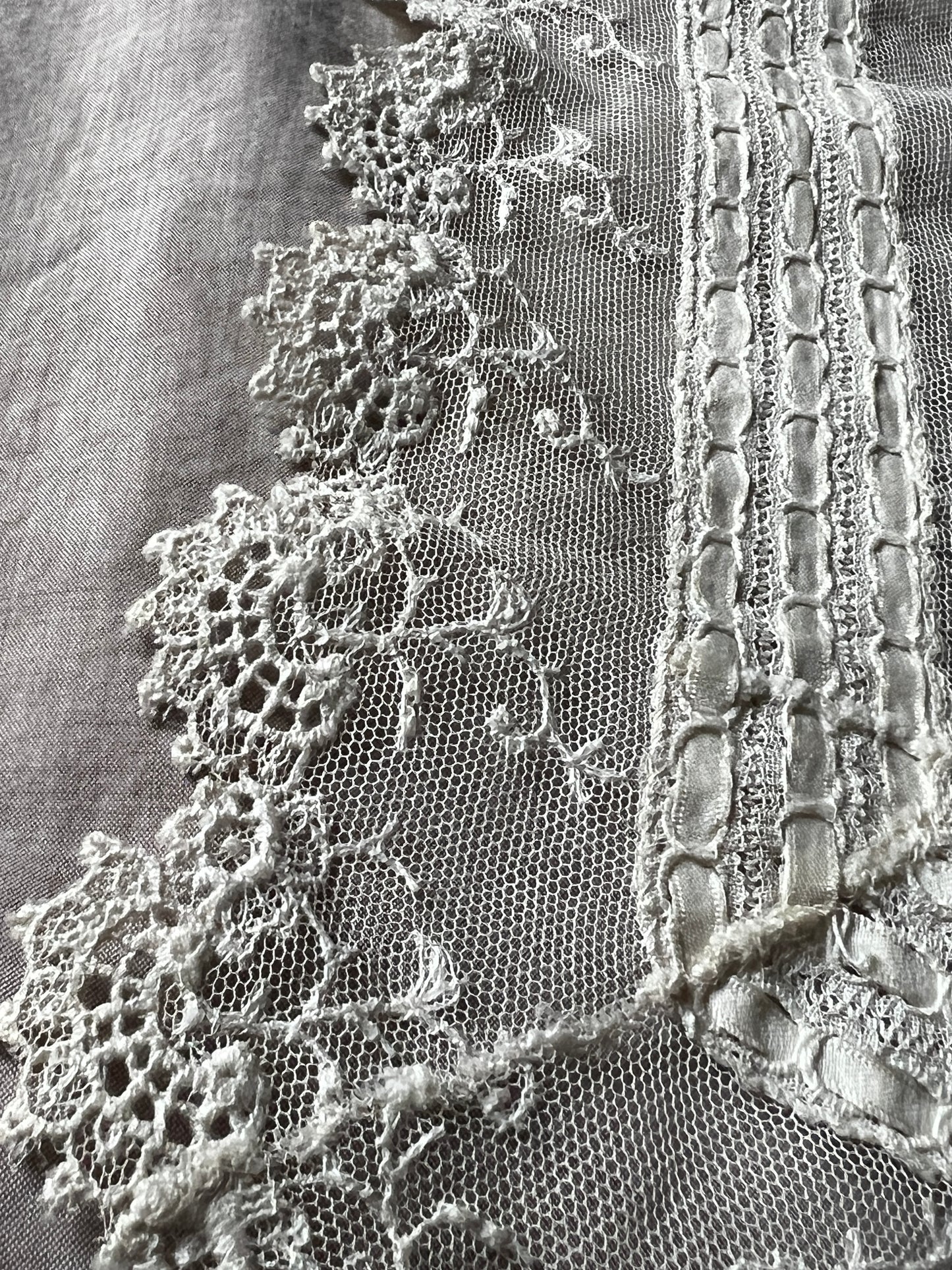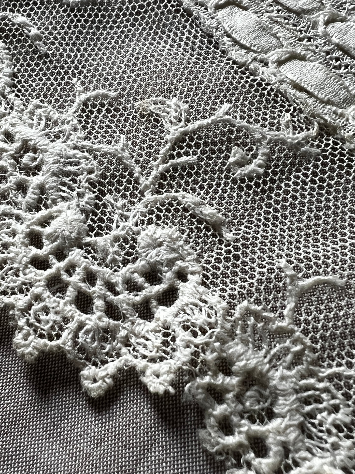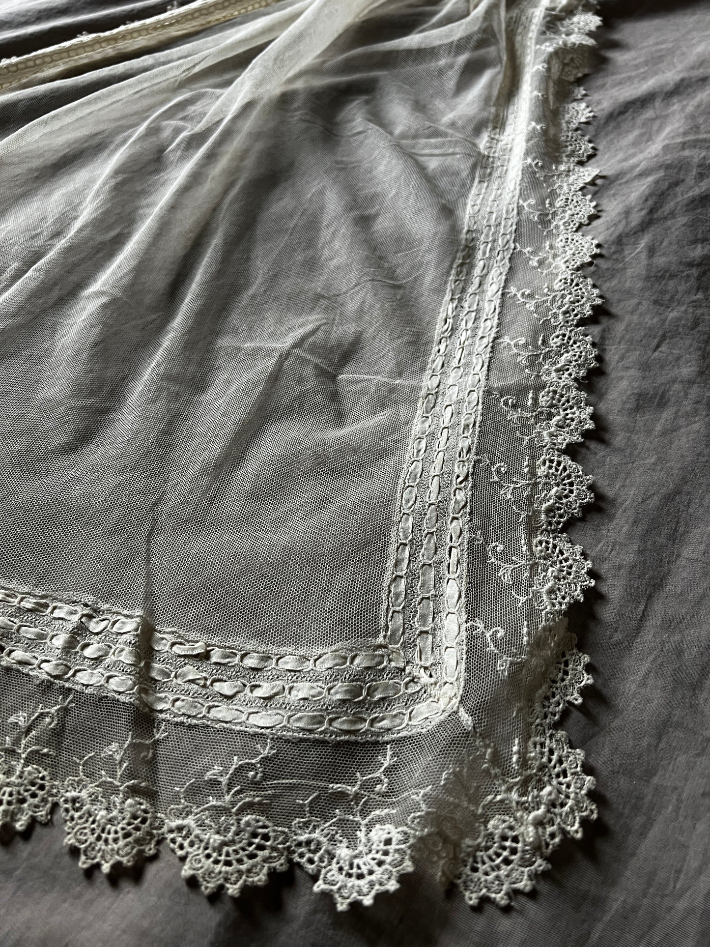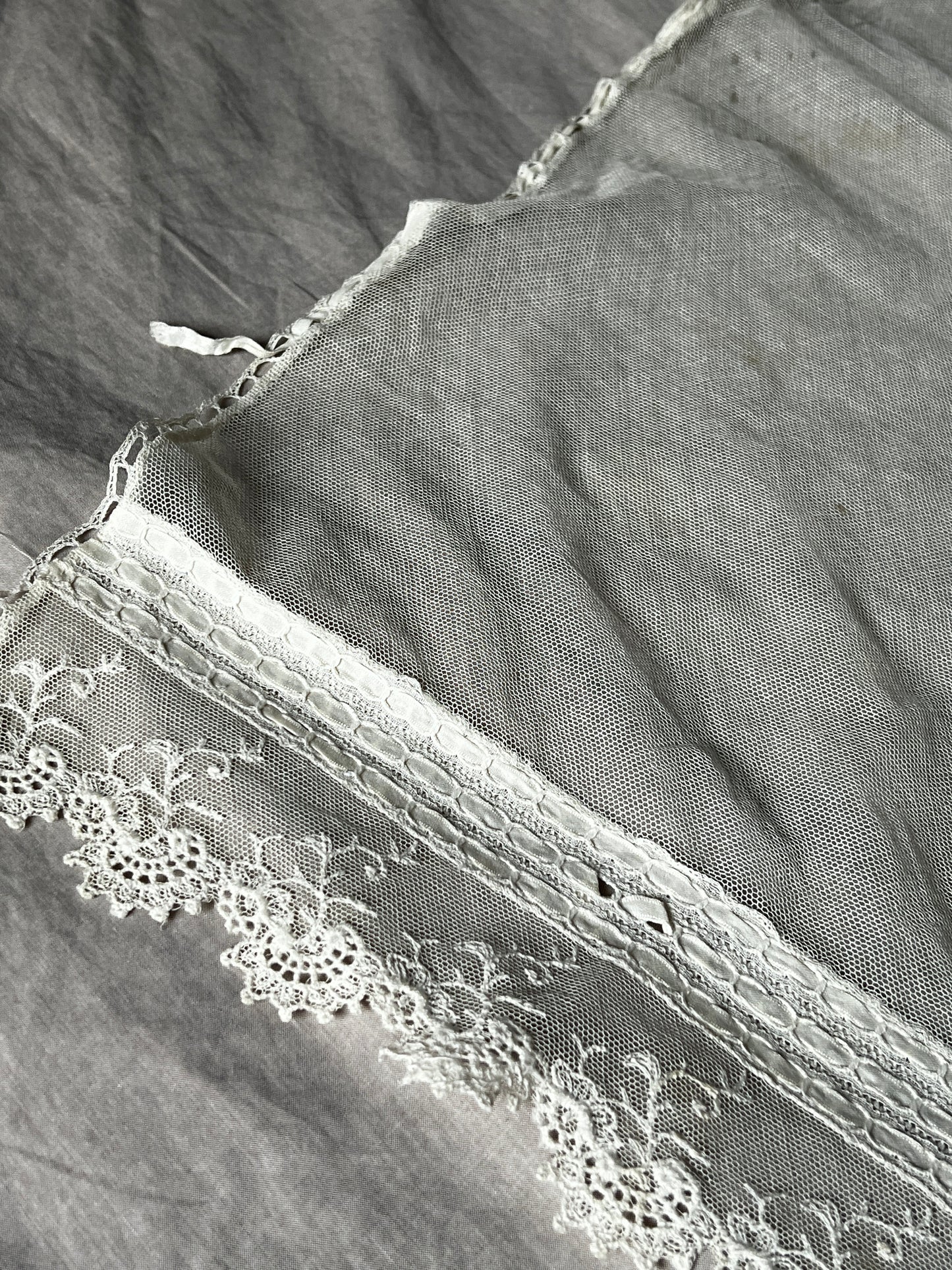 68cm幅×89cm丈 チュールレースにギュピールレース飾りで縁取りが施されたミニカーテンです リボンを通した飾りもアクセントとして美しいお品です