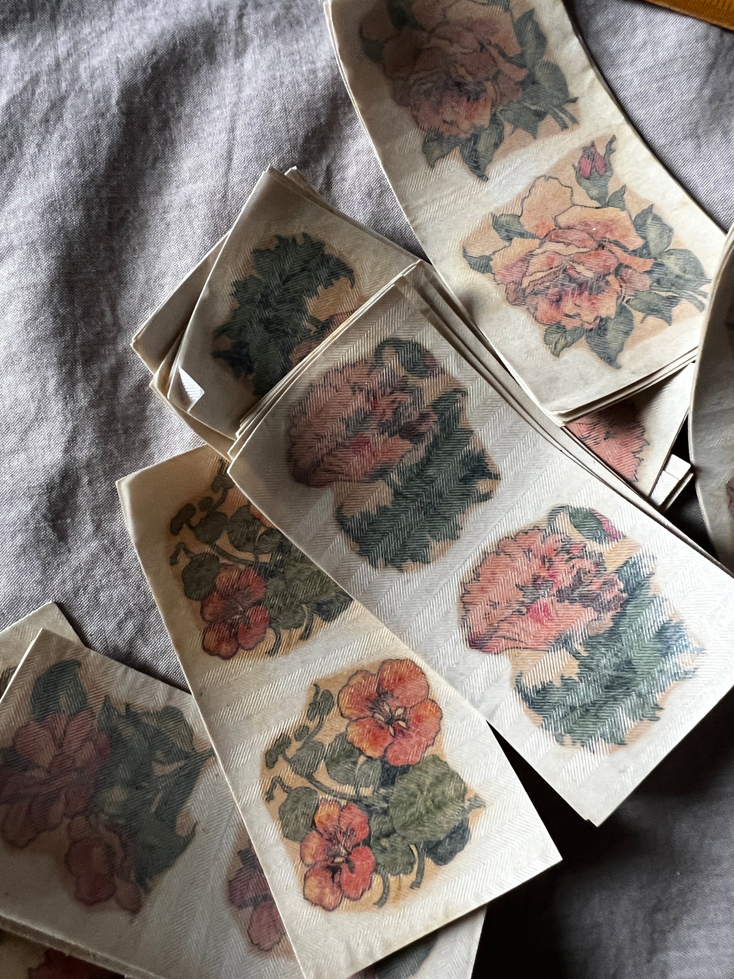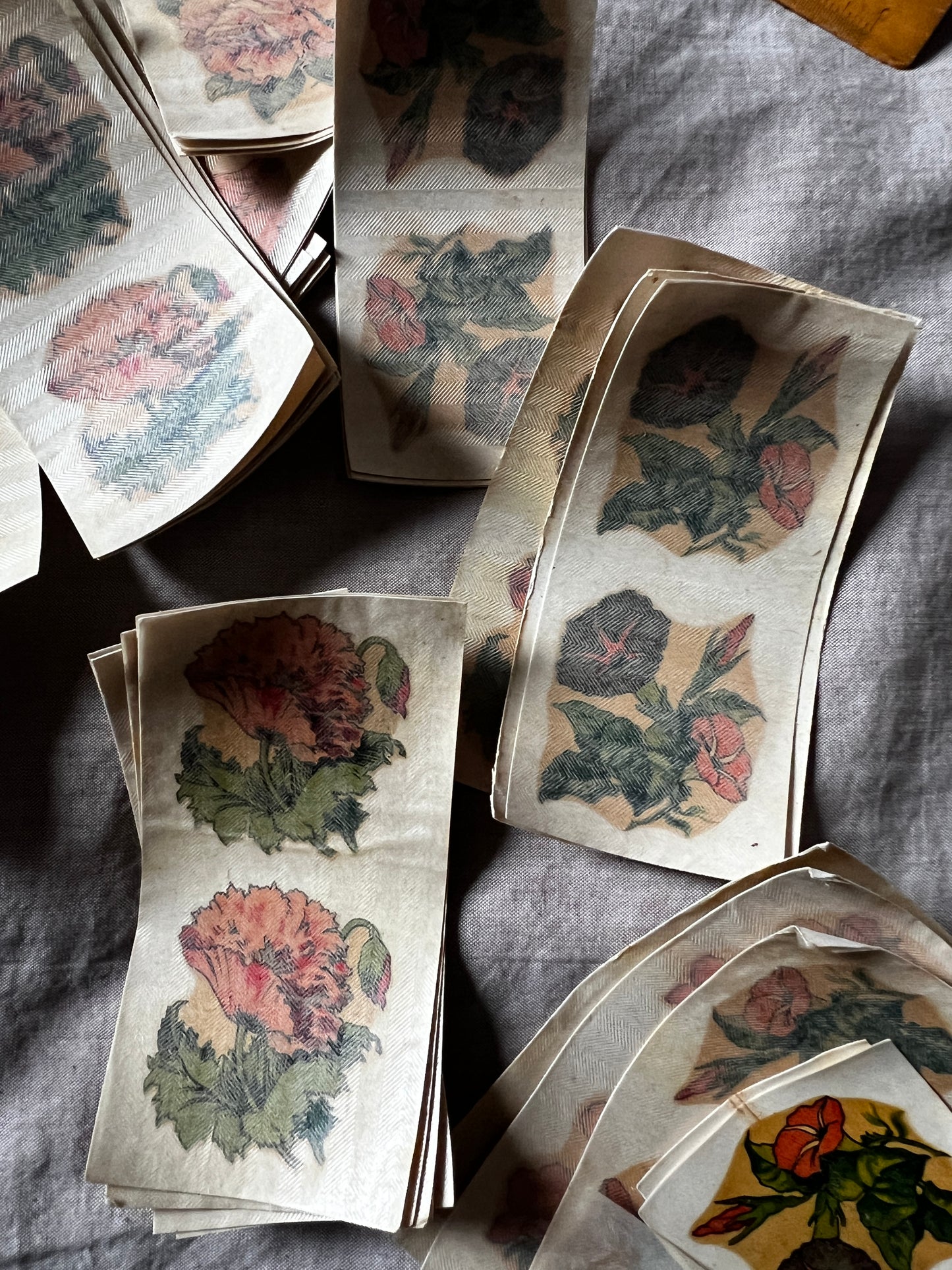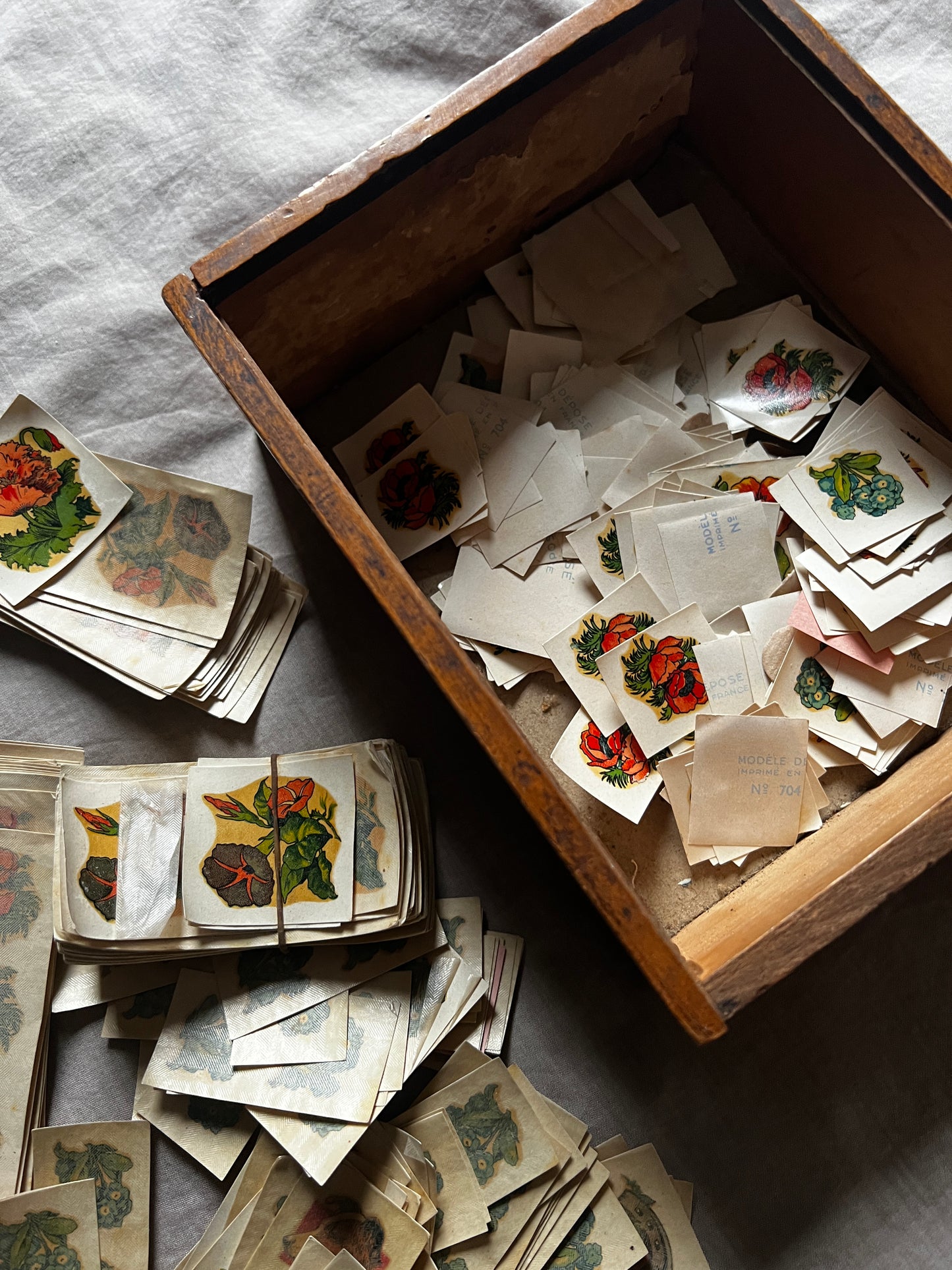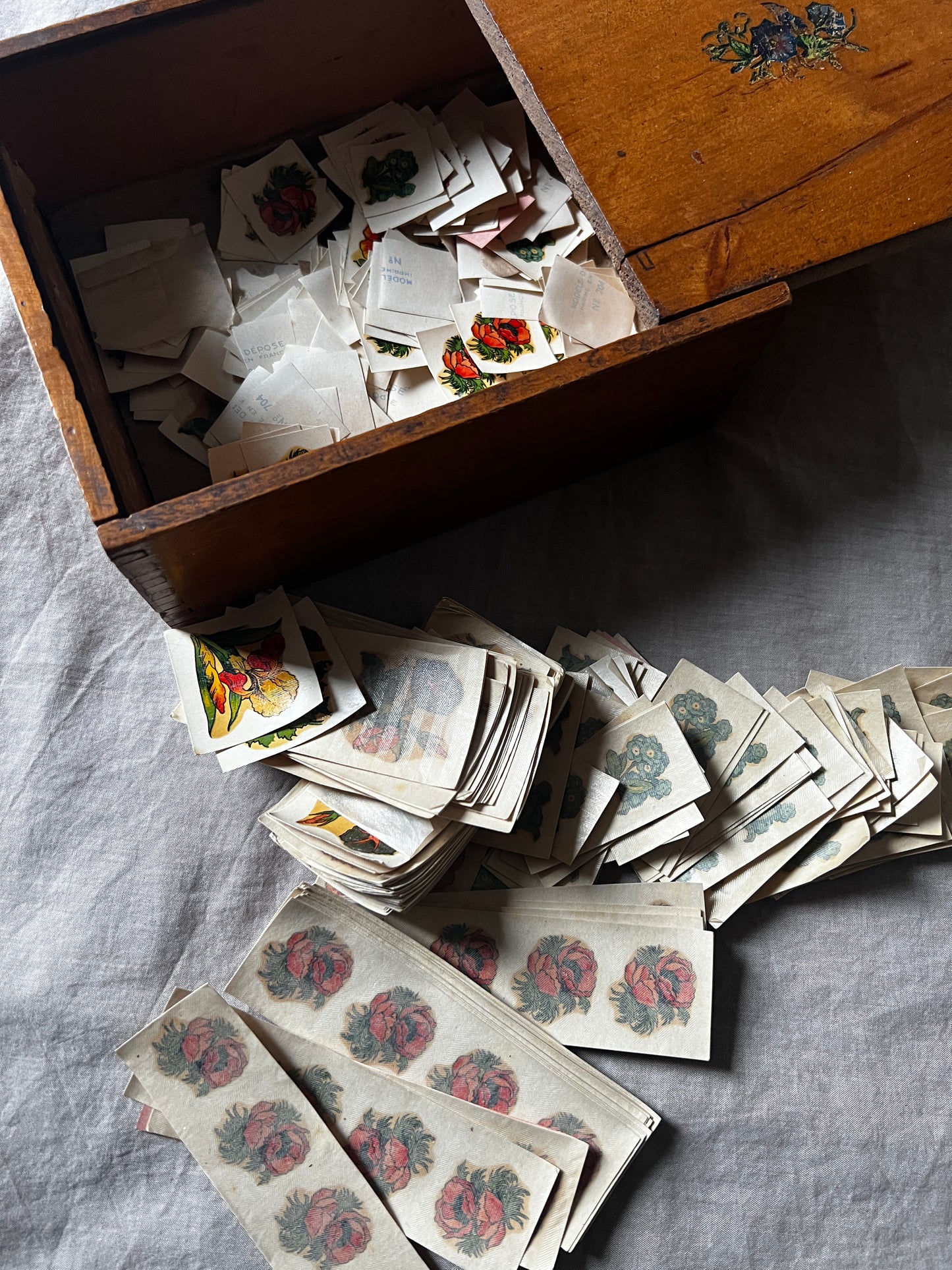 薄紙がついたもの以外に切り落とされたものが箱底にたくさんあります