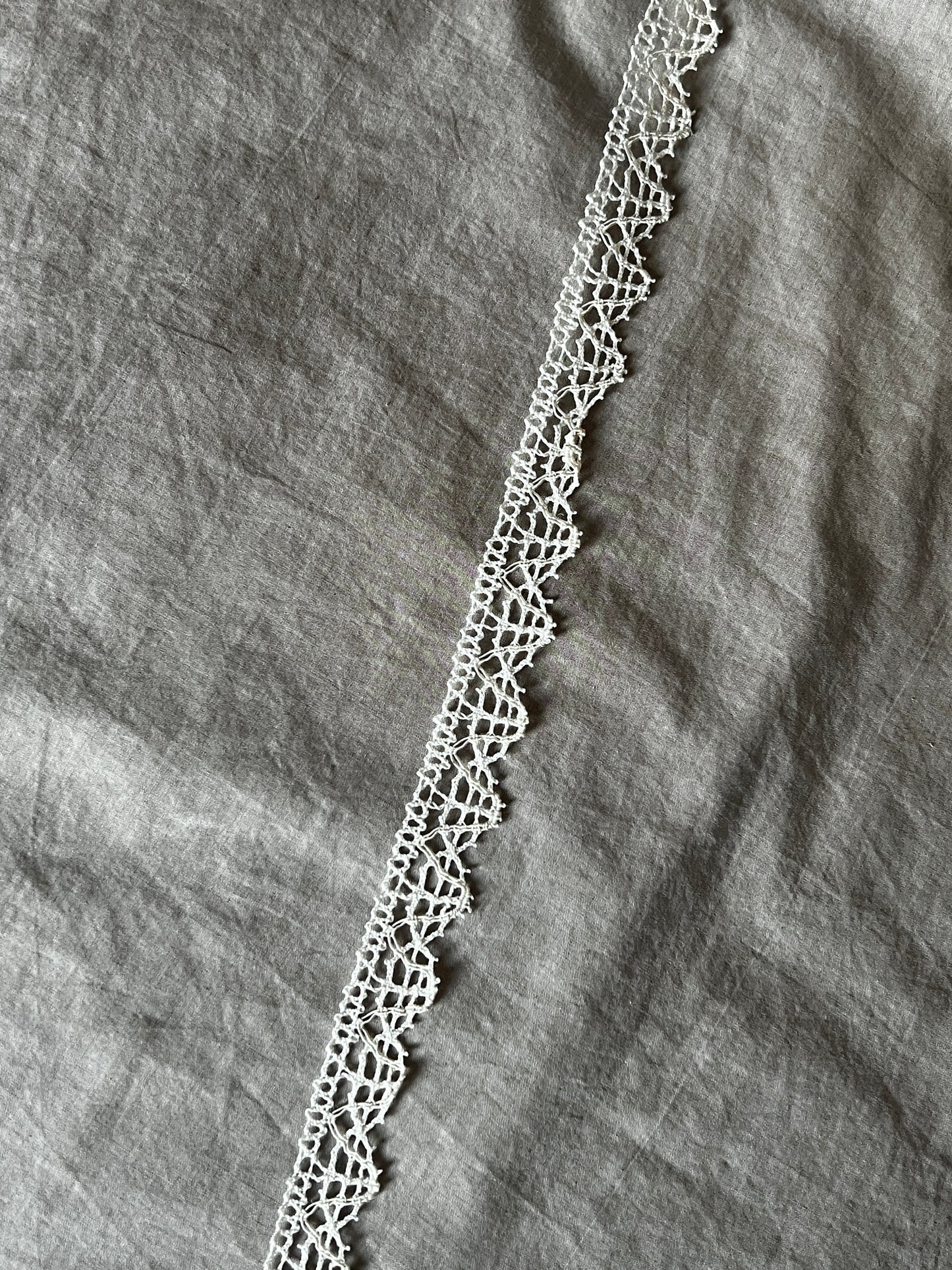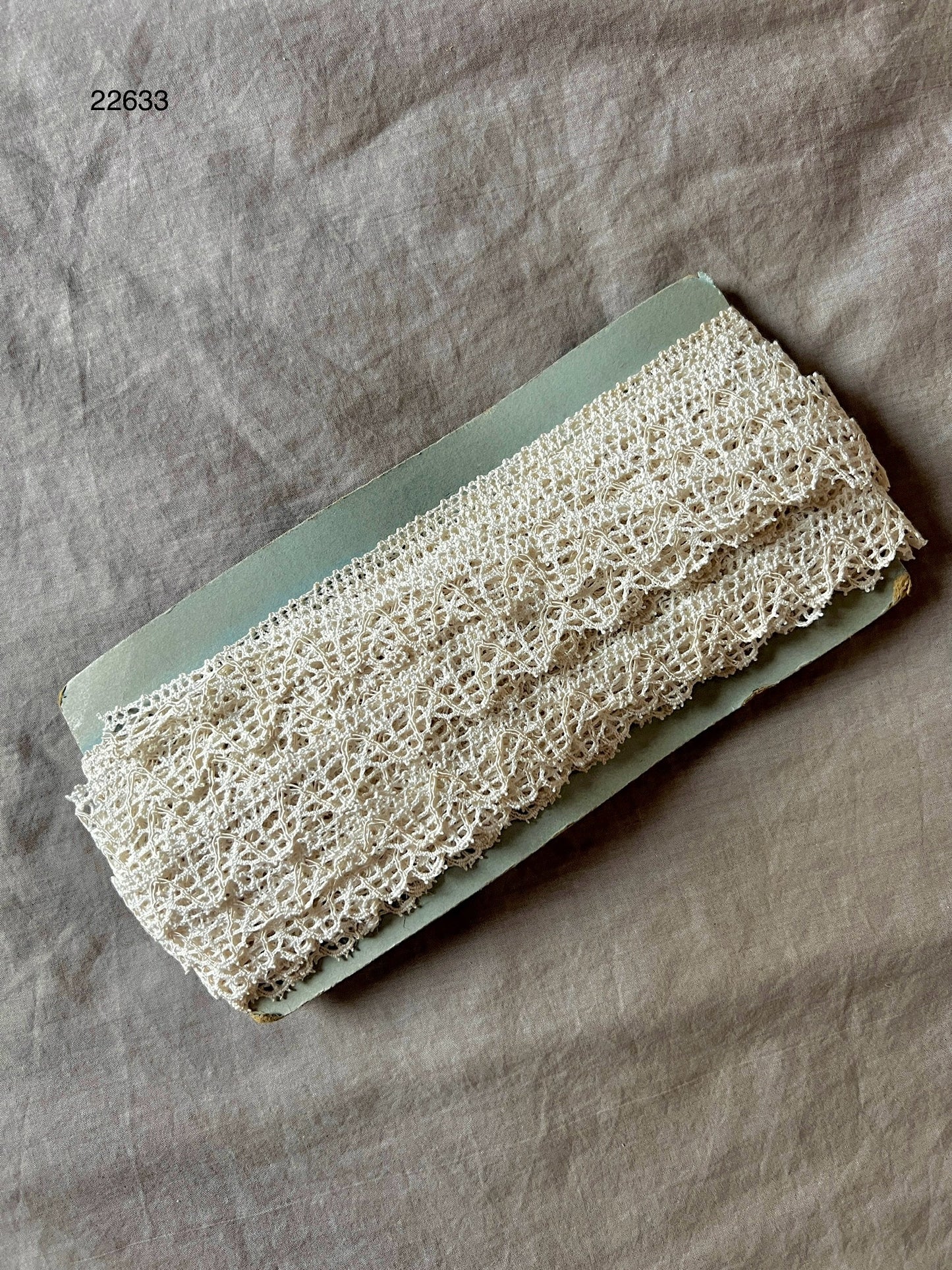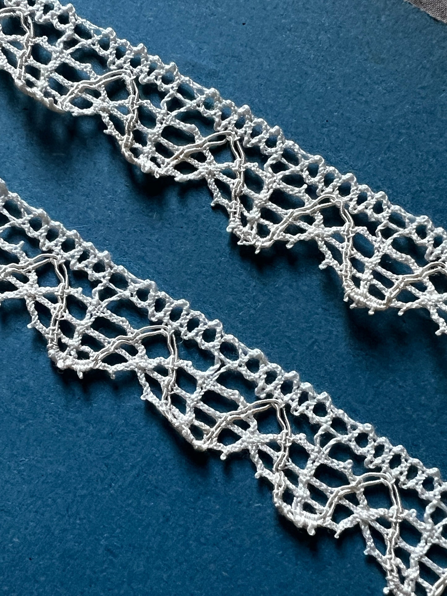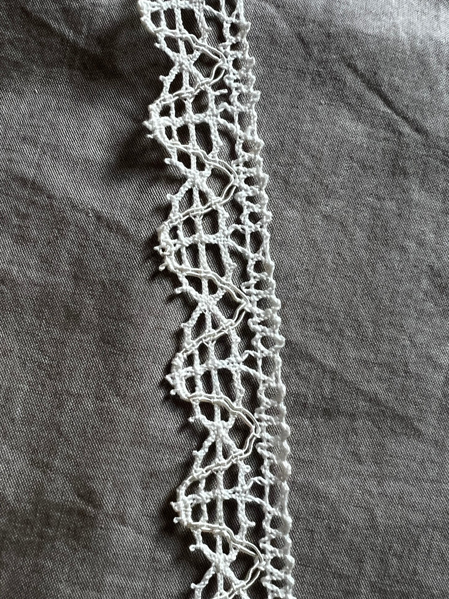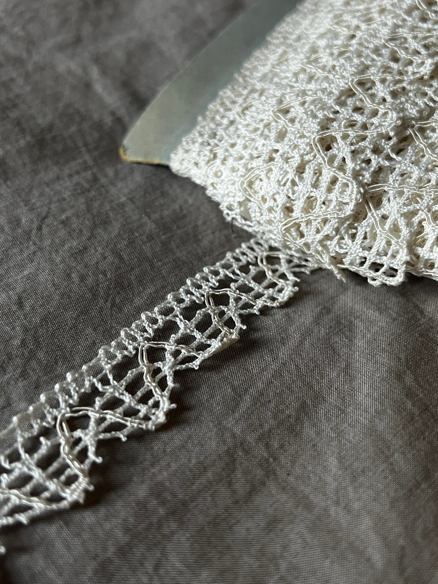 くすんだブルー台紙に巻いた状態のアンティークレースです