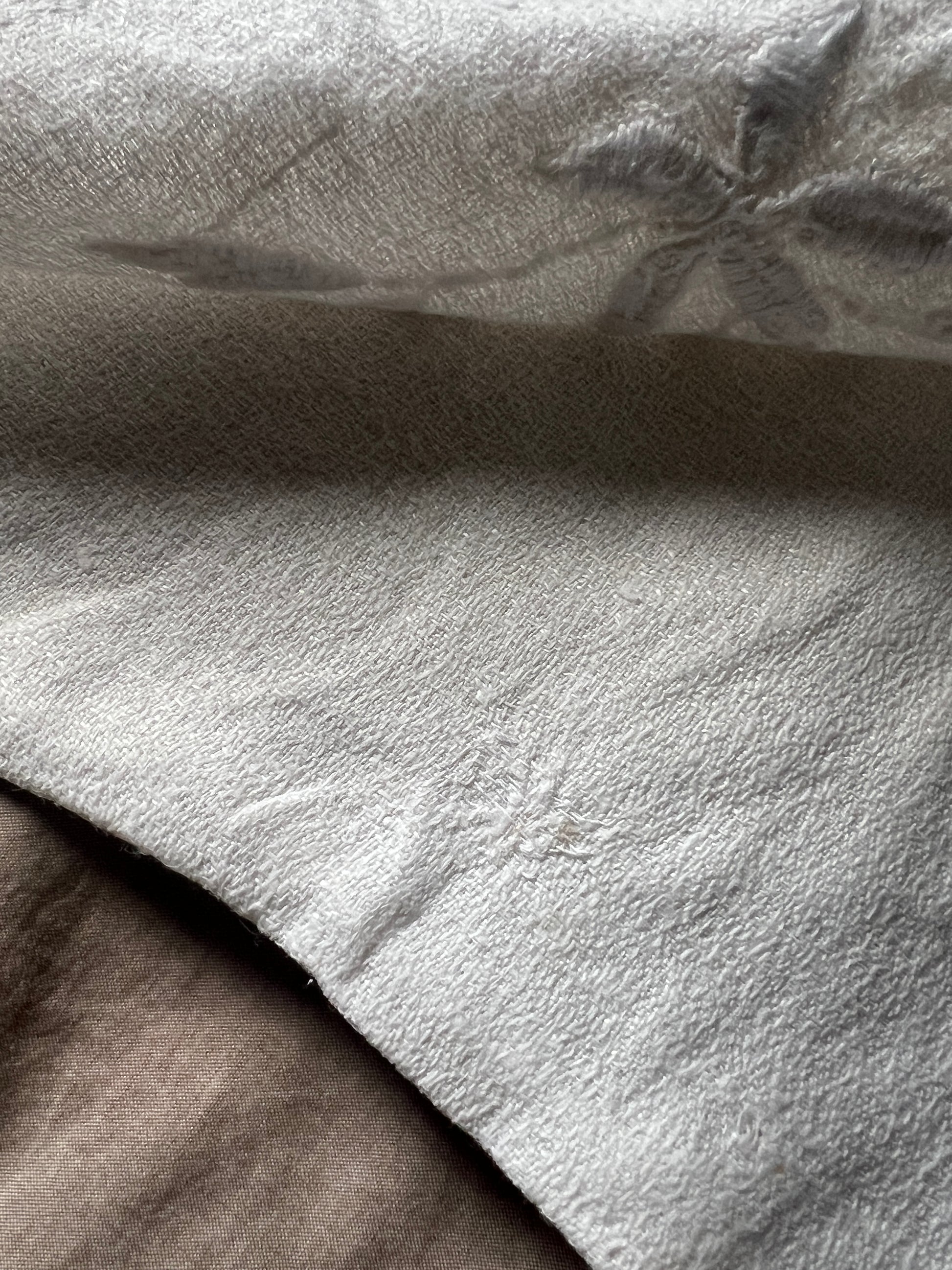 拡大して見ると織地が不揃いですので、手織り布かと思われます