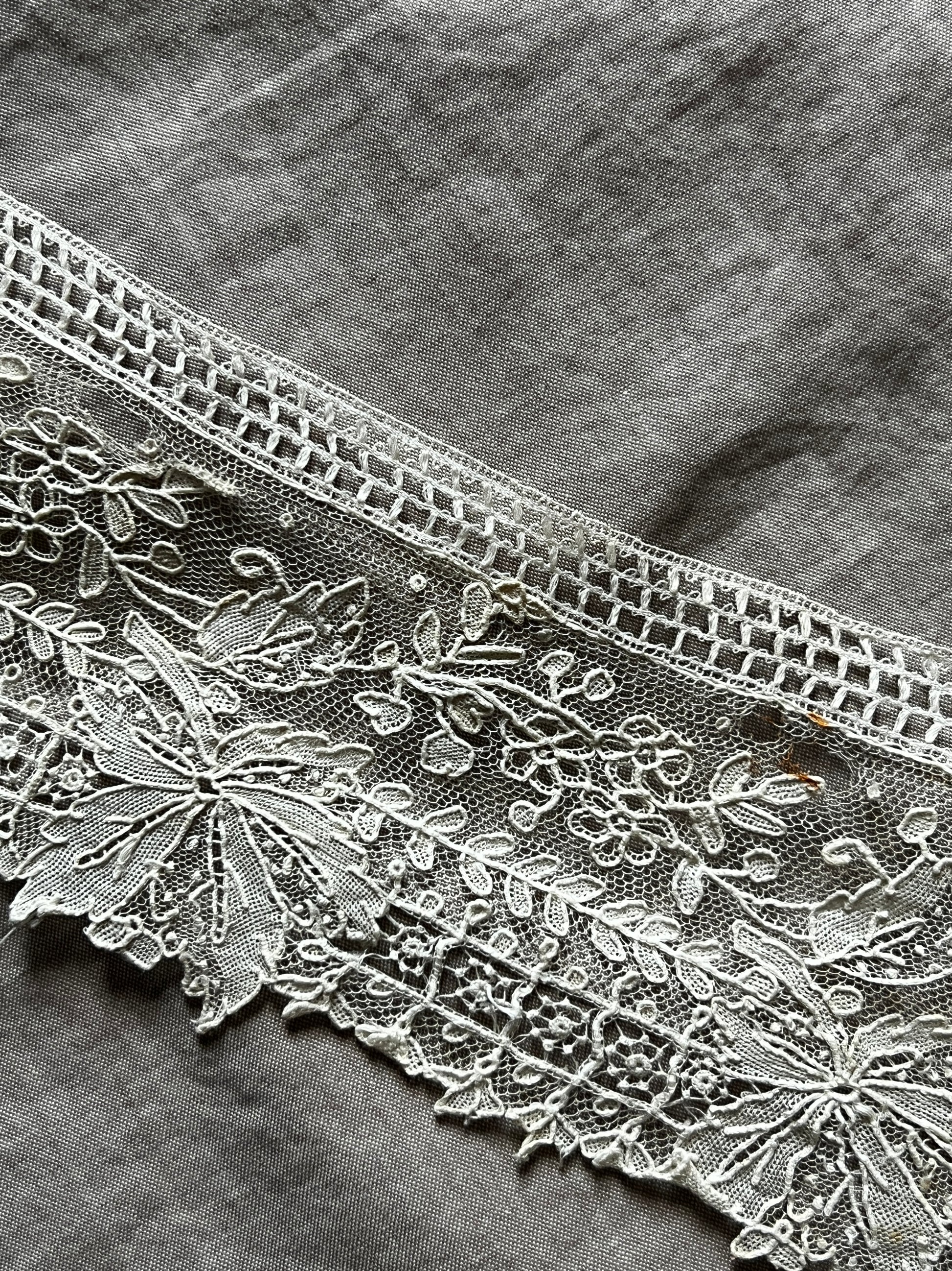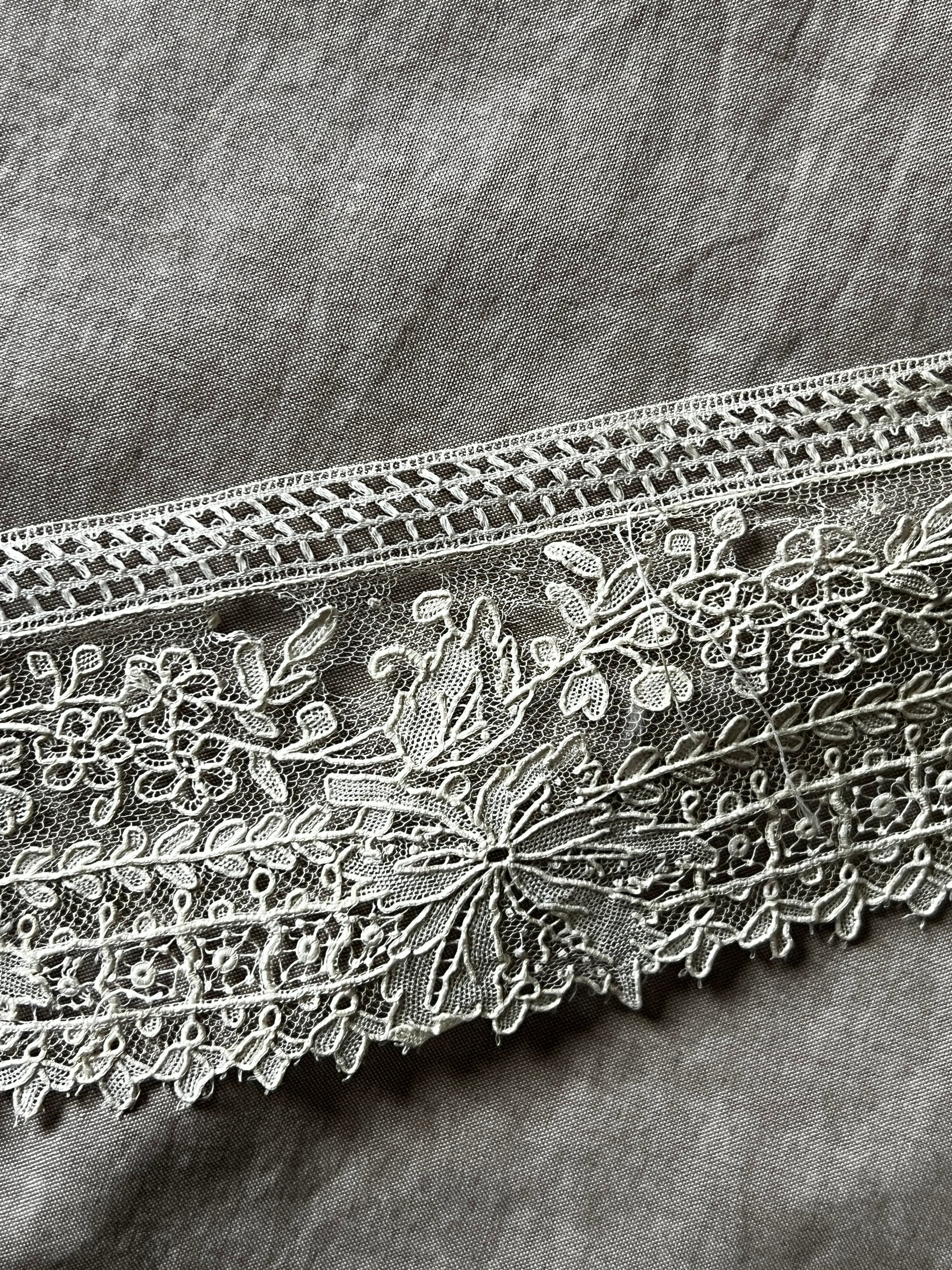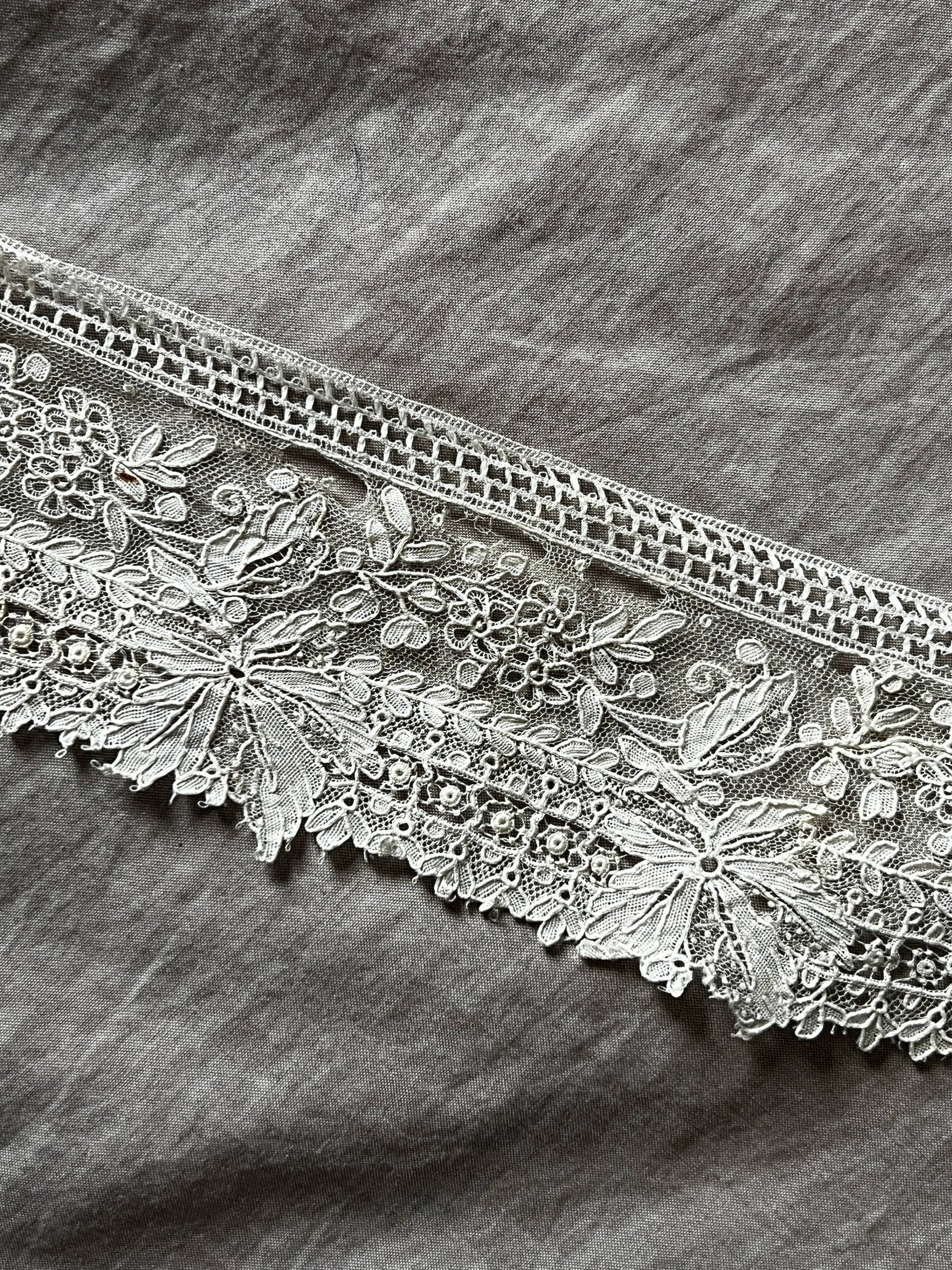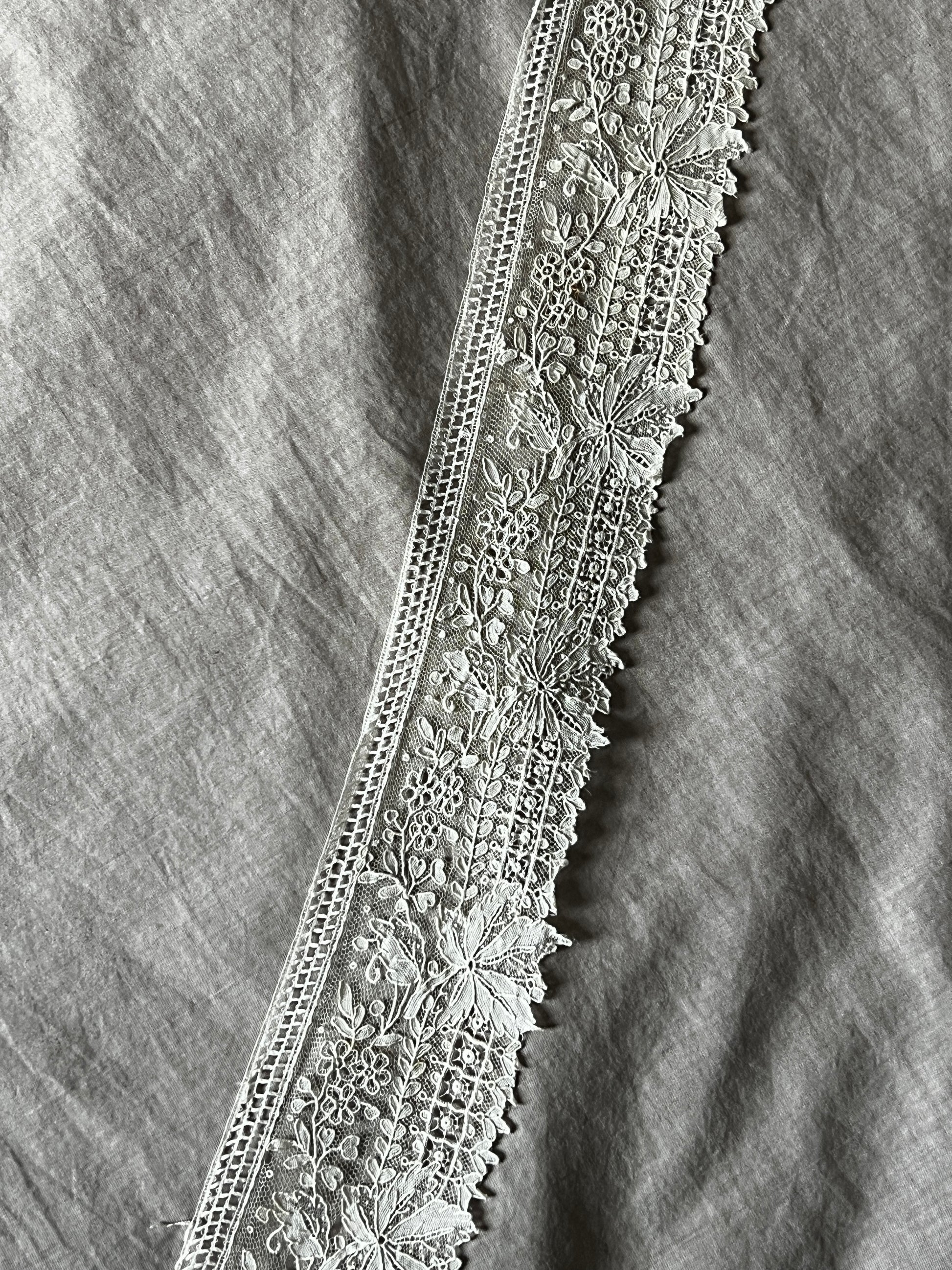 極細の糸で織られた柔らかな質感が特徴で、優雅で希少価値の高いアンティークレースとして知られています