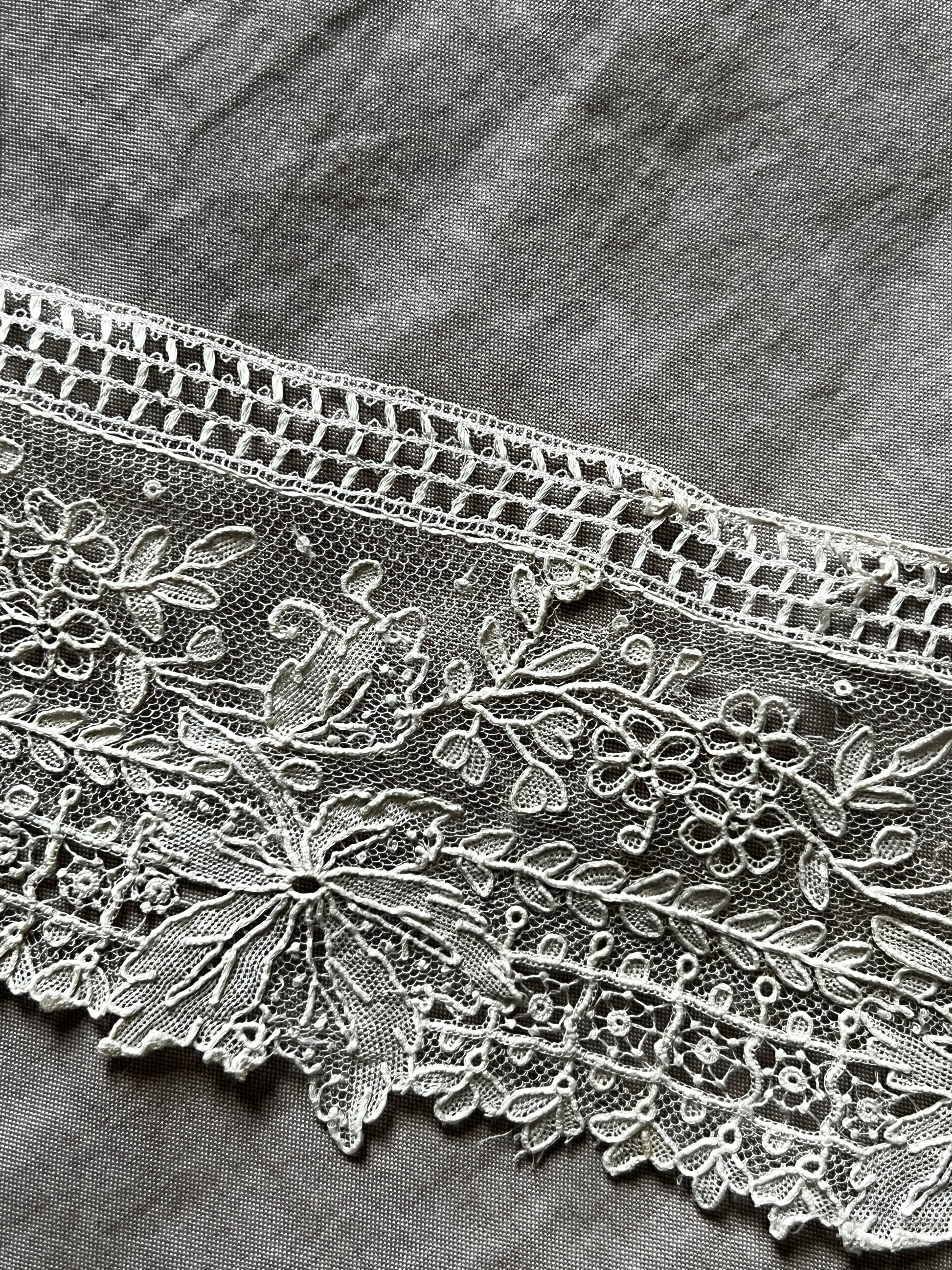 極細の糸を用い、慎重に織られたそのレースには、当時の技術と美意識が反映されています