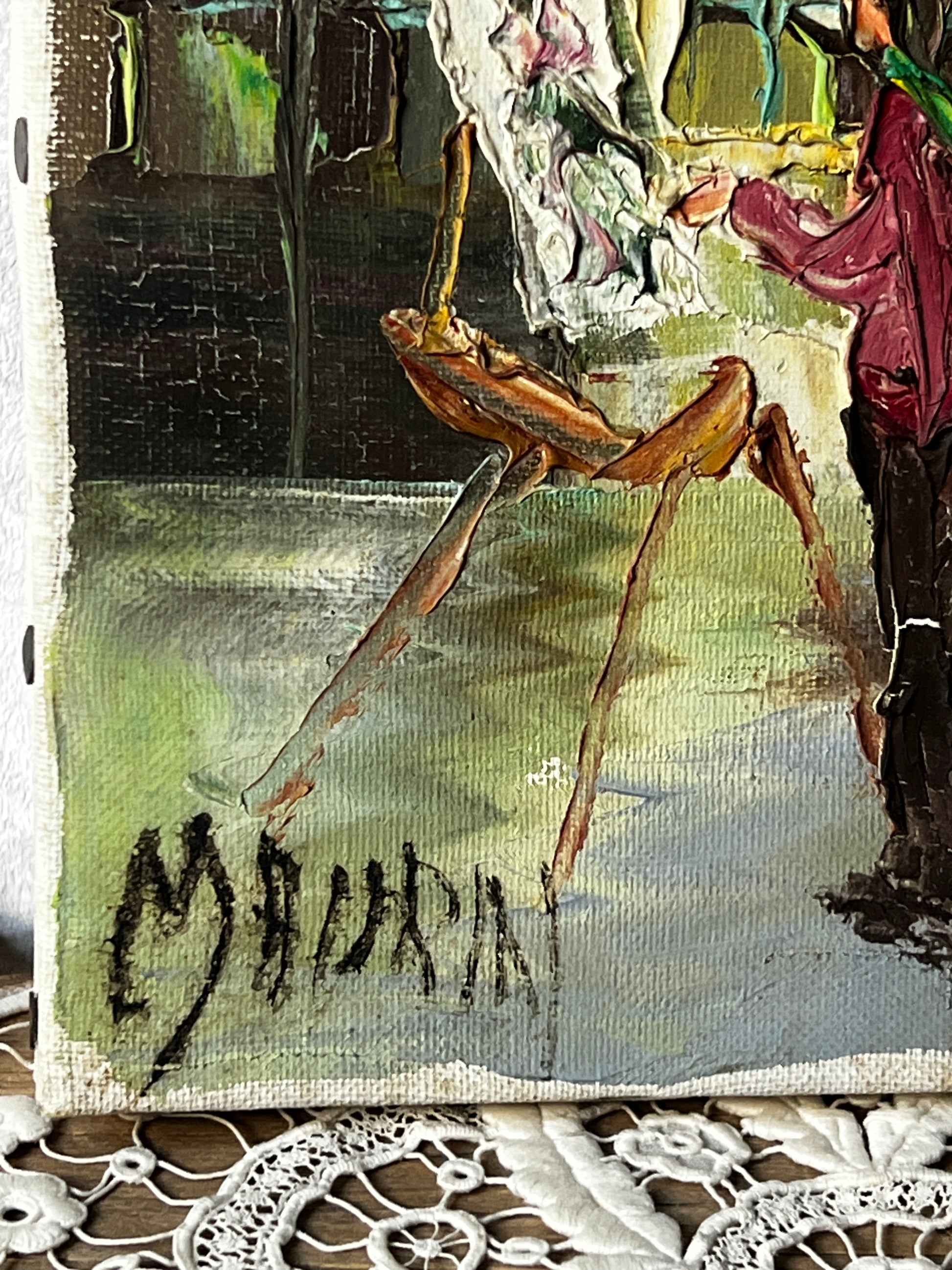 パレットナイフで重ねられた絵の具が生み出す立体的な筆致は、まるで現地の空気をそのまま閉じ込めたよう
