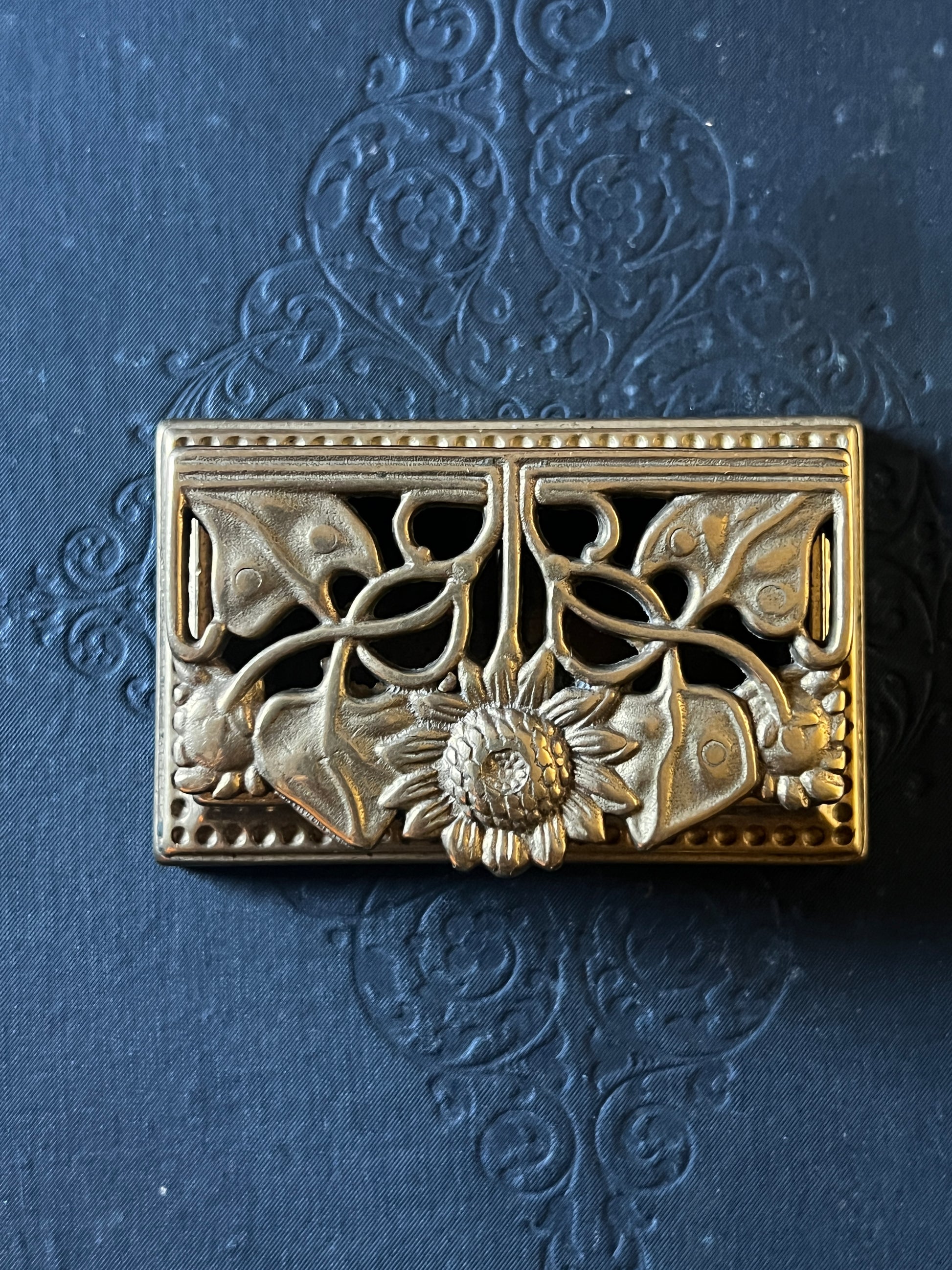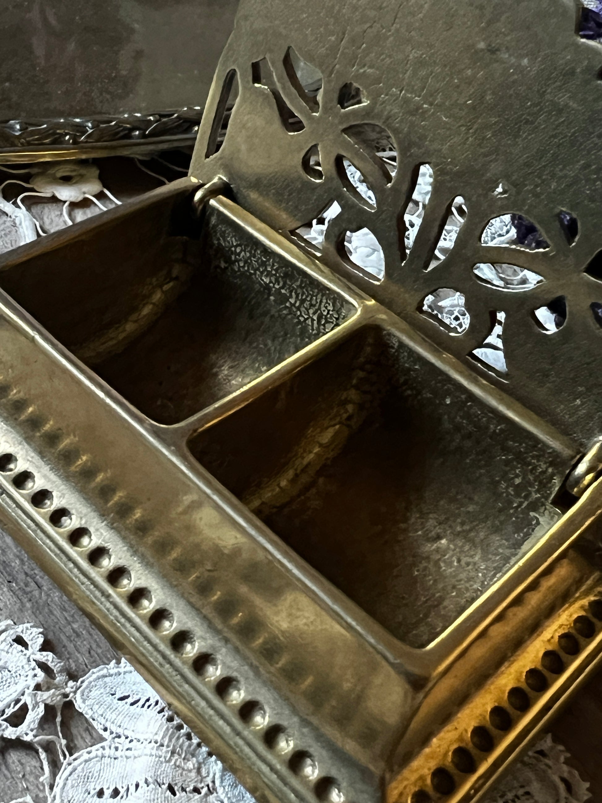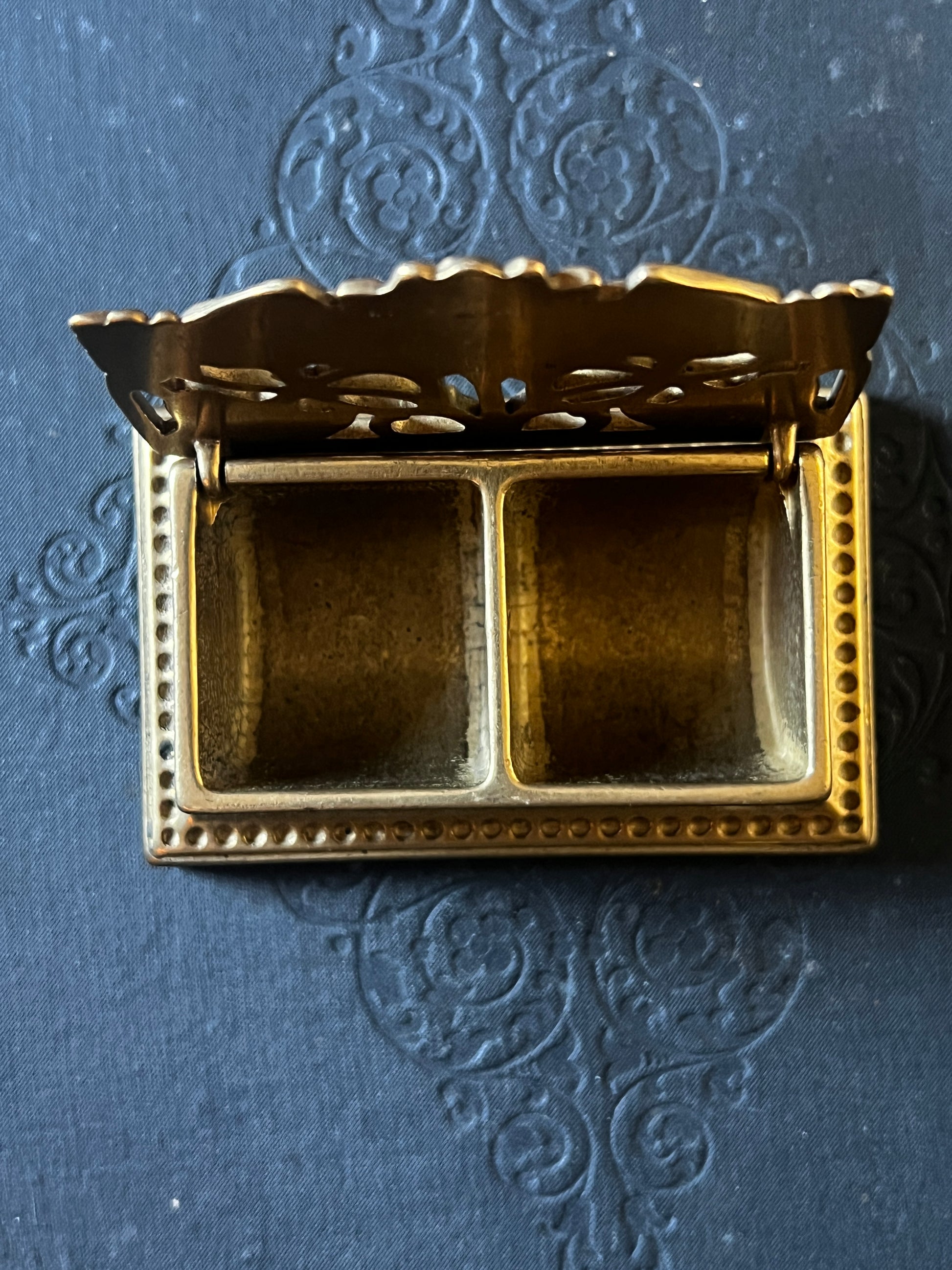 上部蓋が開閉し、内部は切手サイズに仕切りがあります