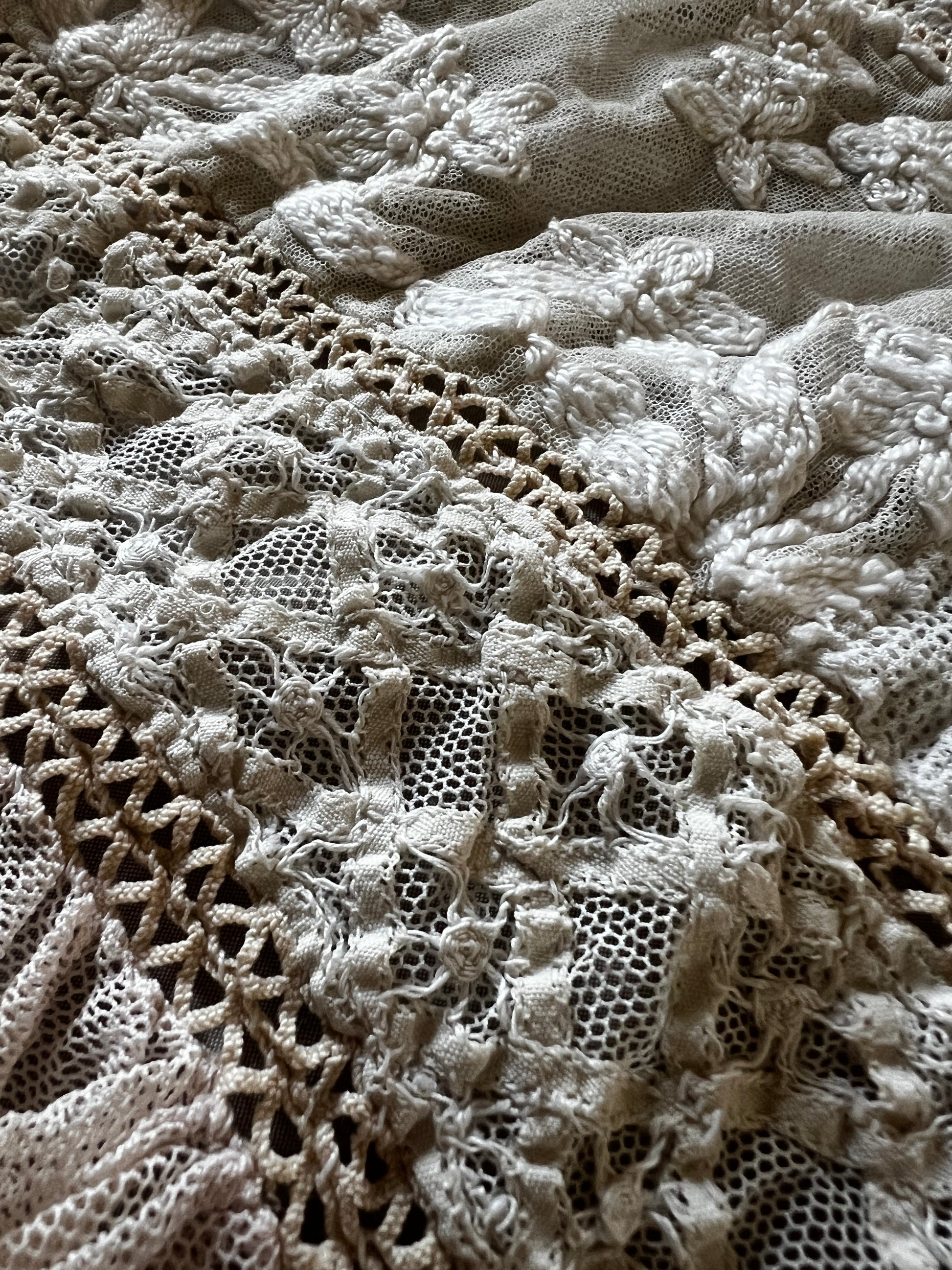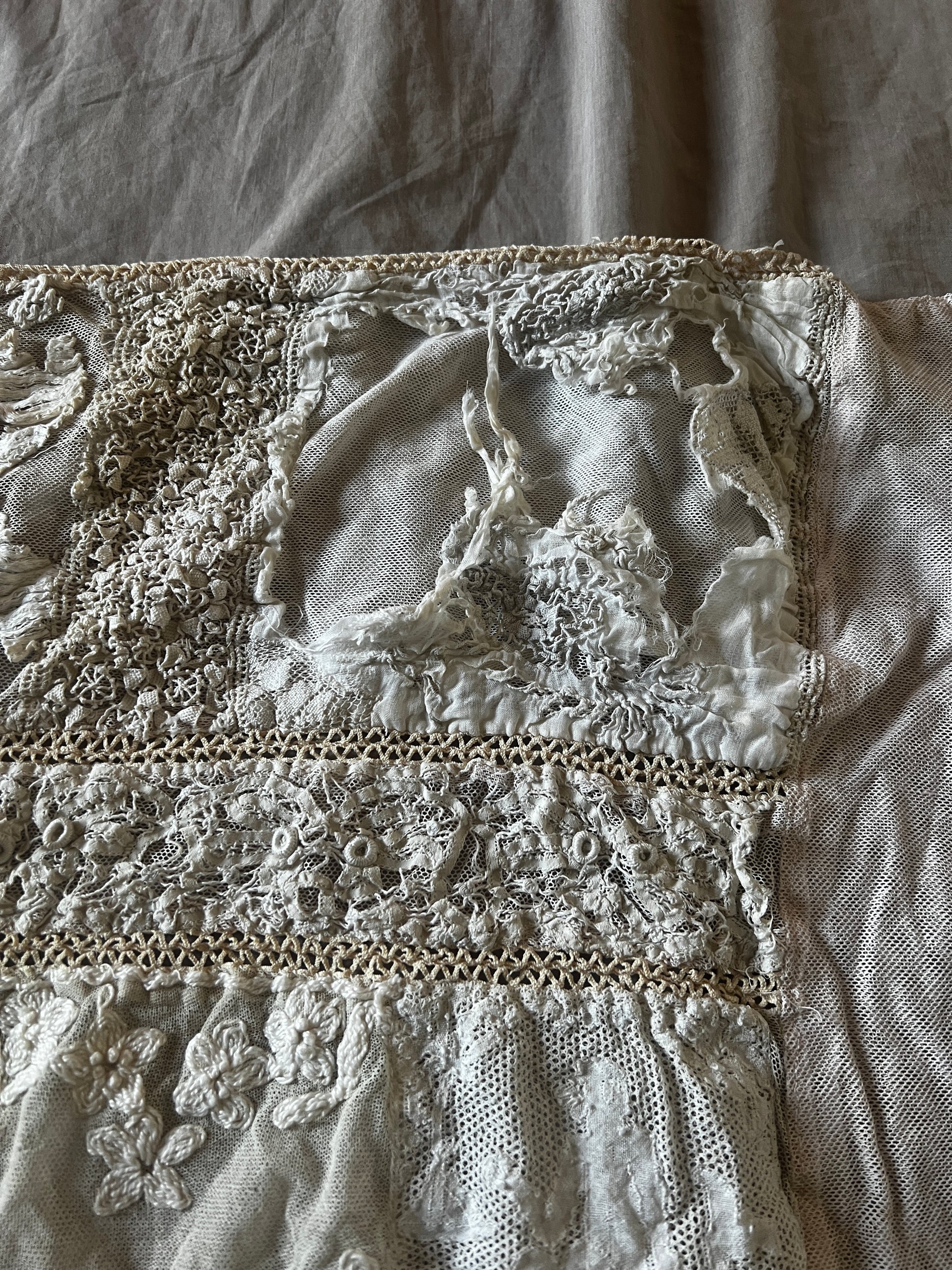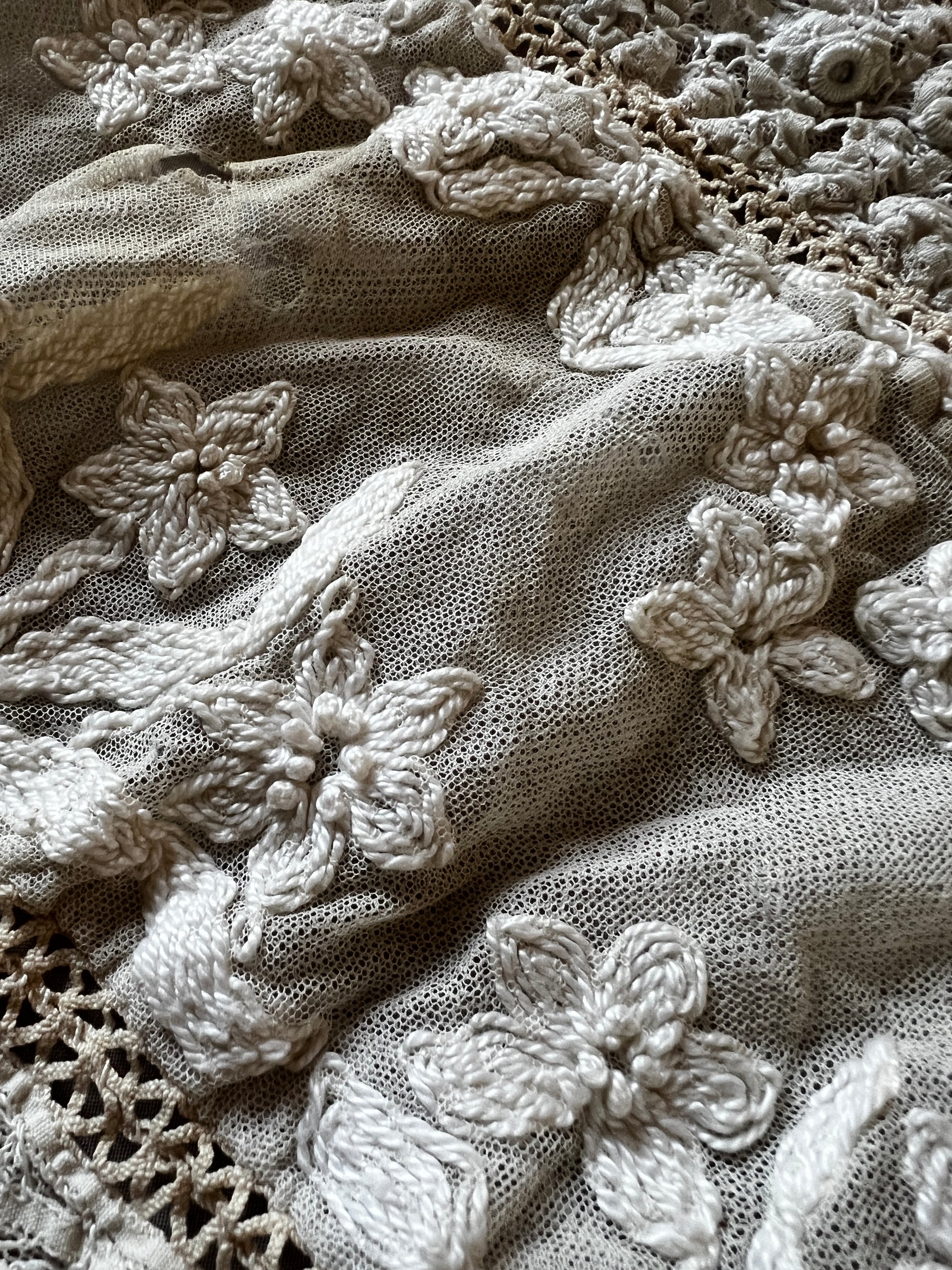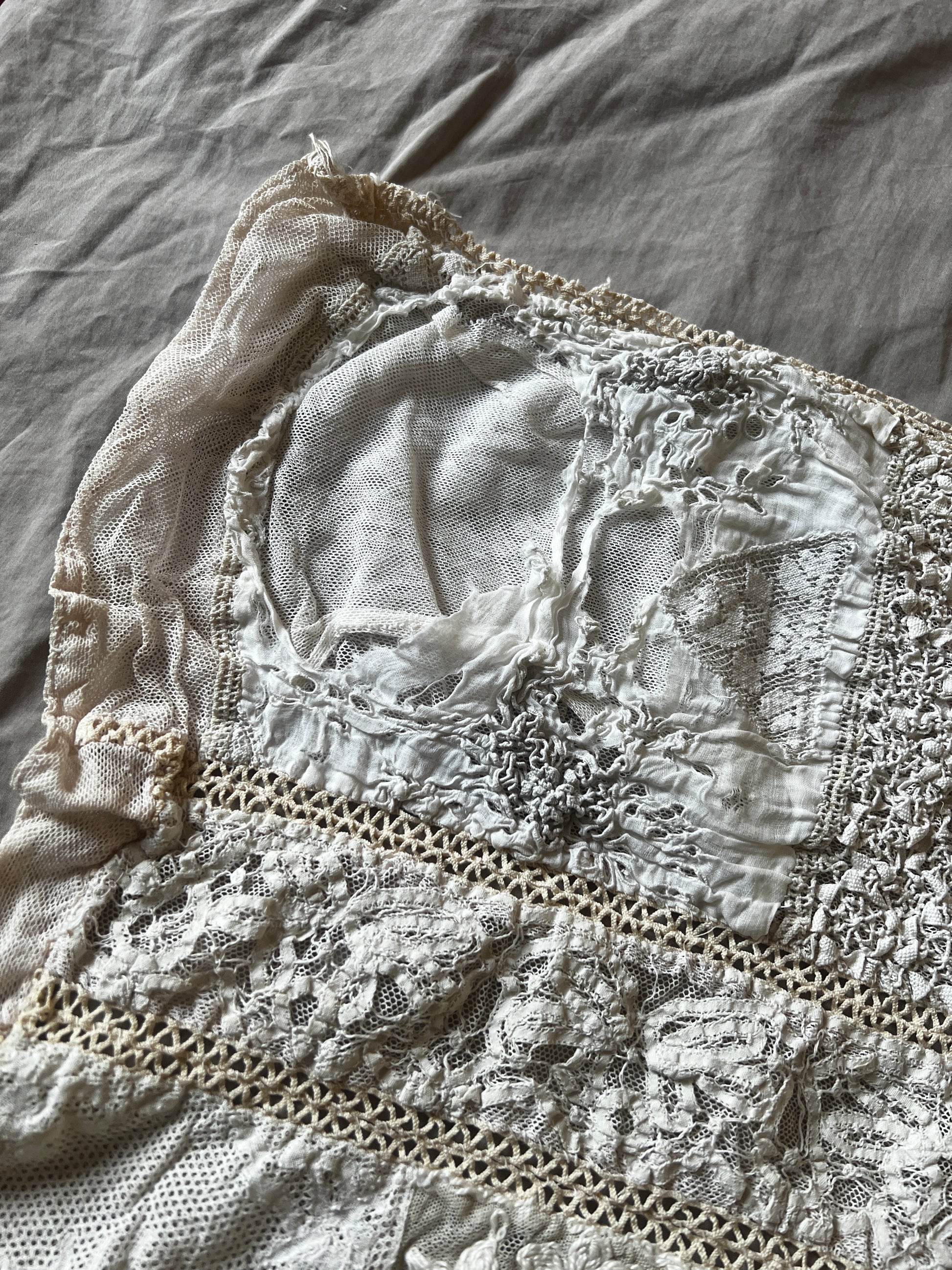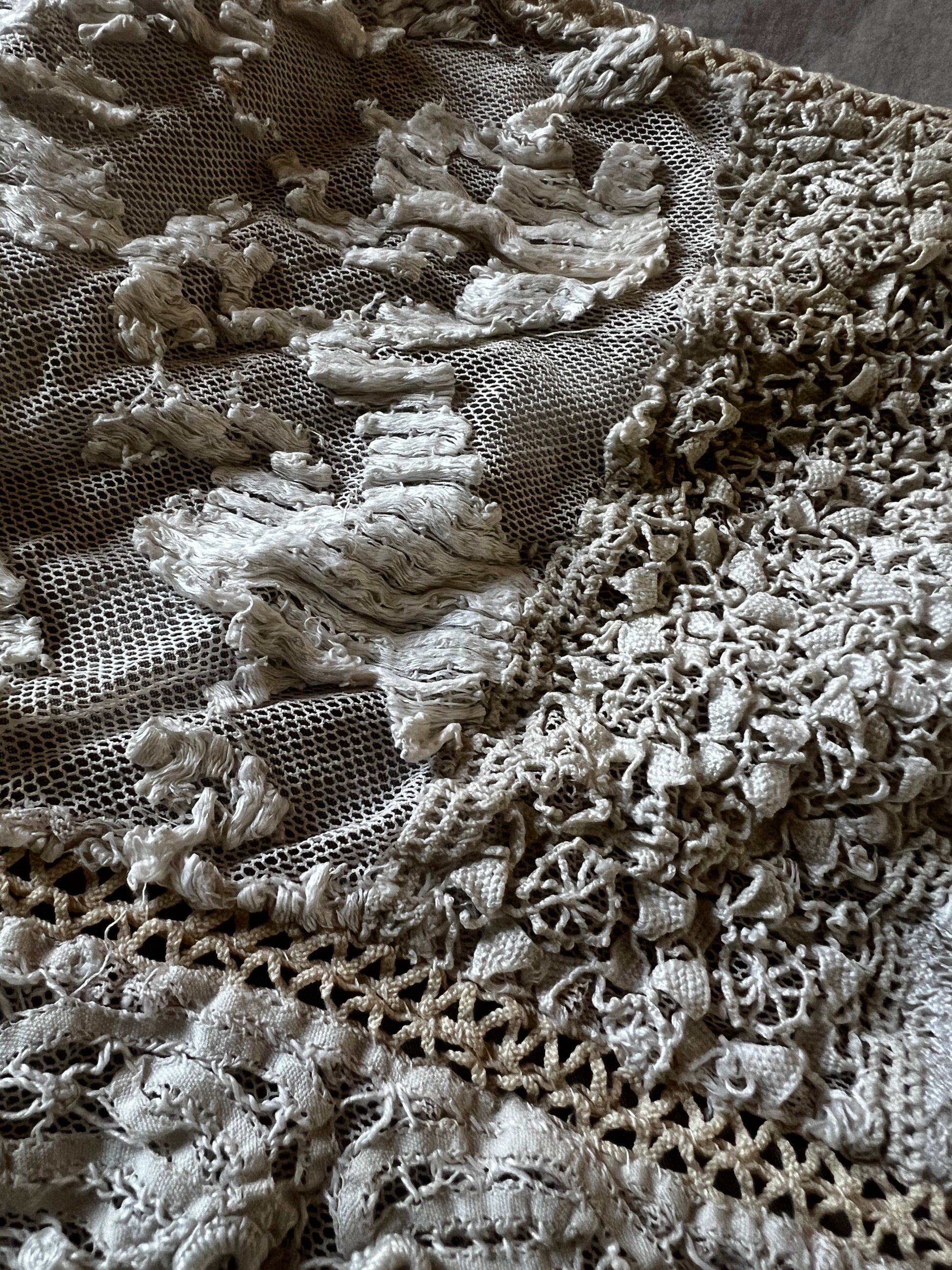 チュールレースをベースに、さまざまな技法のレースを巧みに組み合わせた飾り端布です