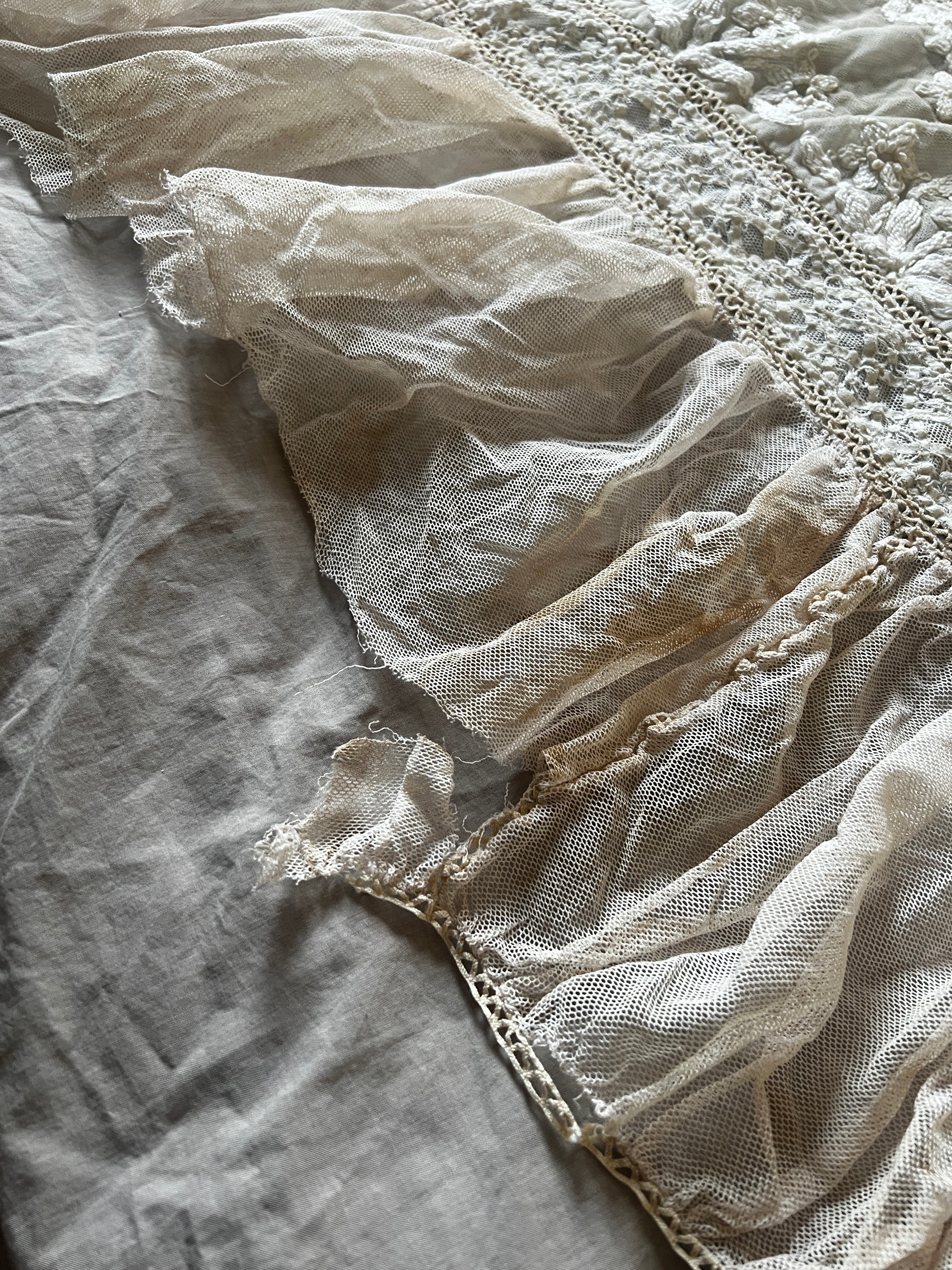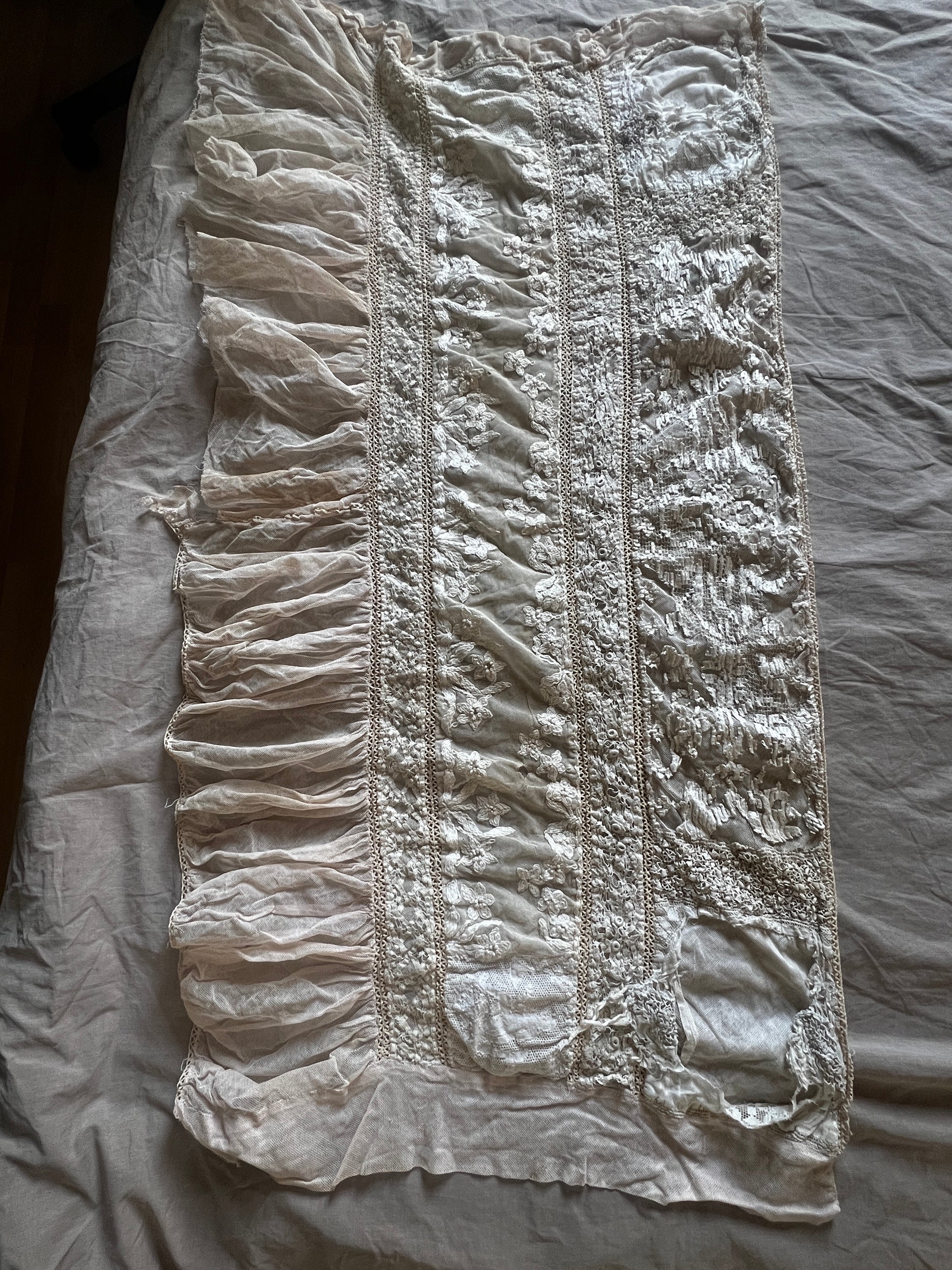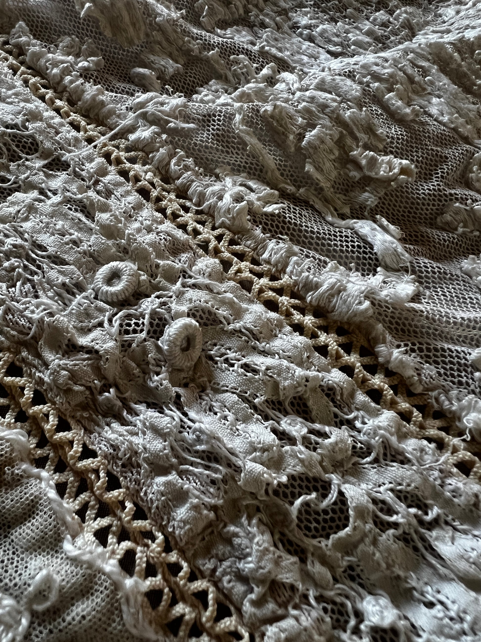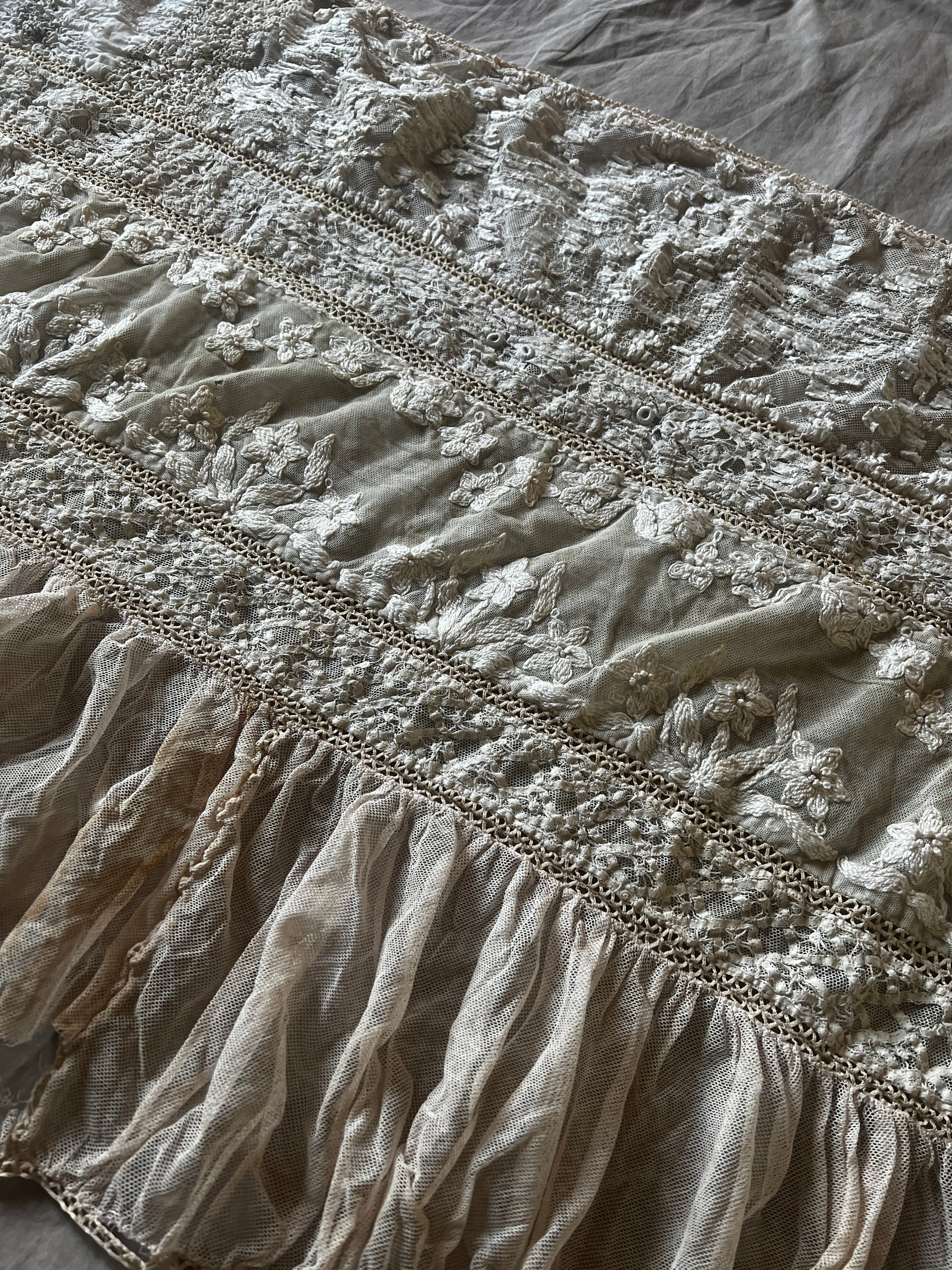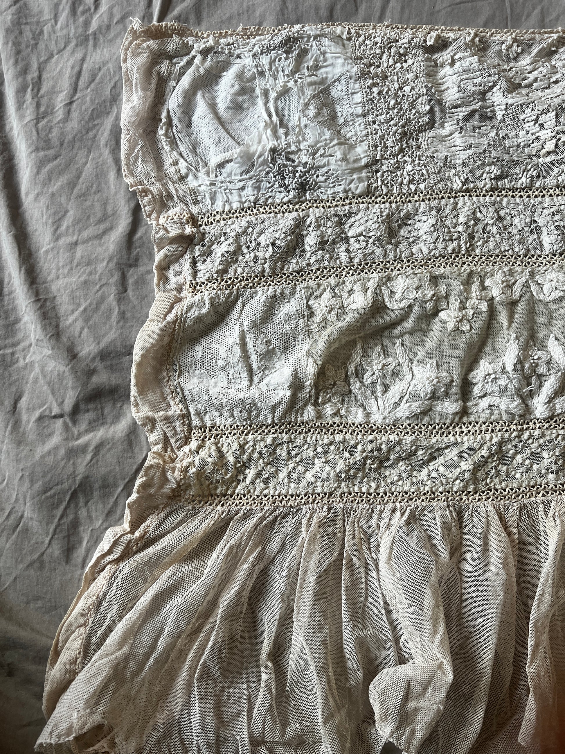 チュールレースをベースに、さまざまな技法のレースを巧みに組み合わせた飾り端布です
