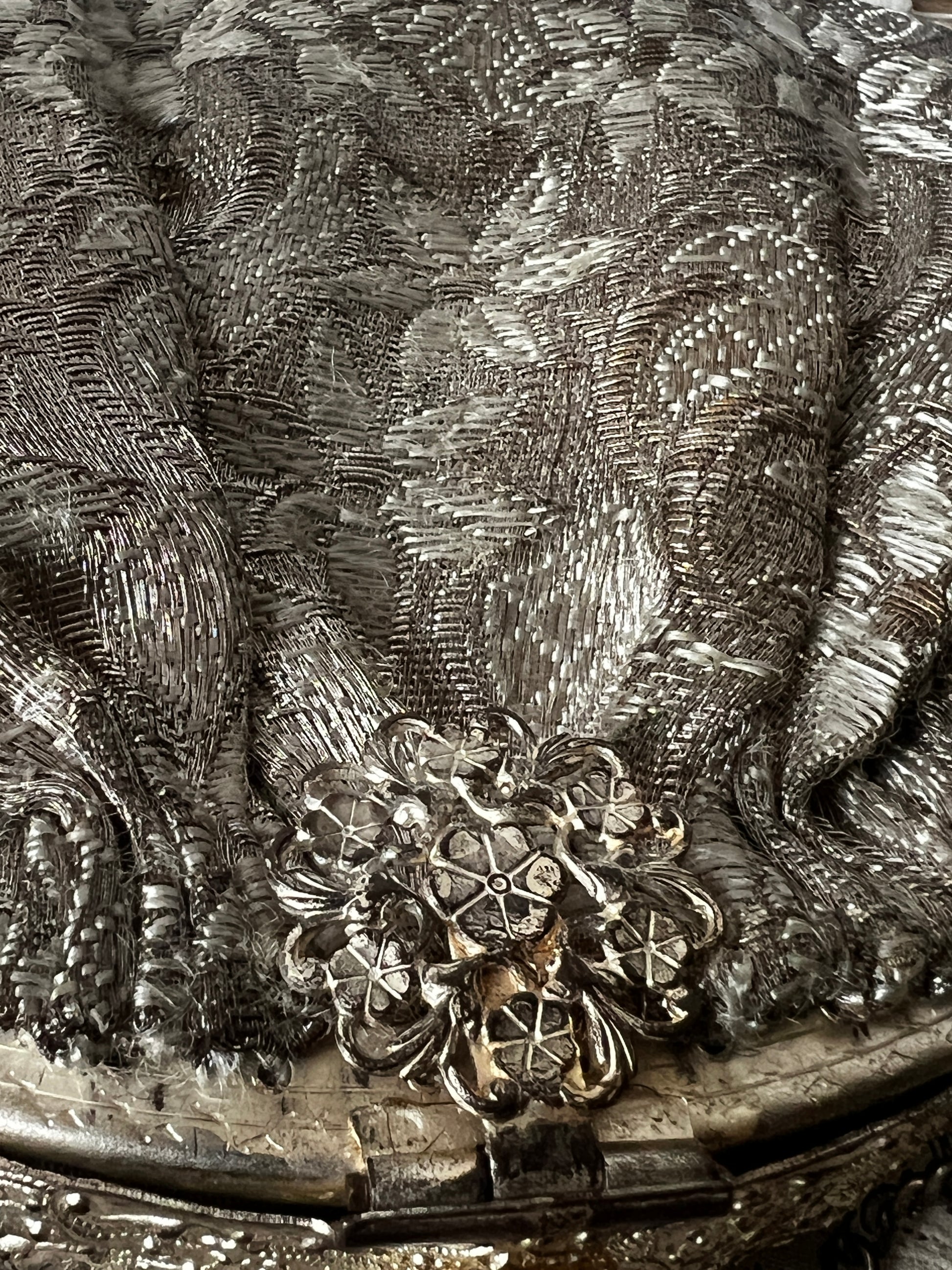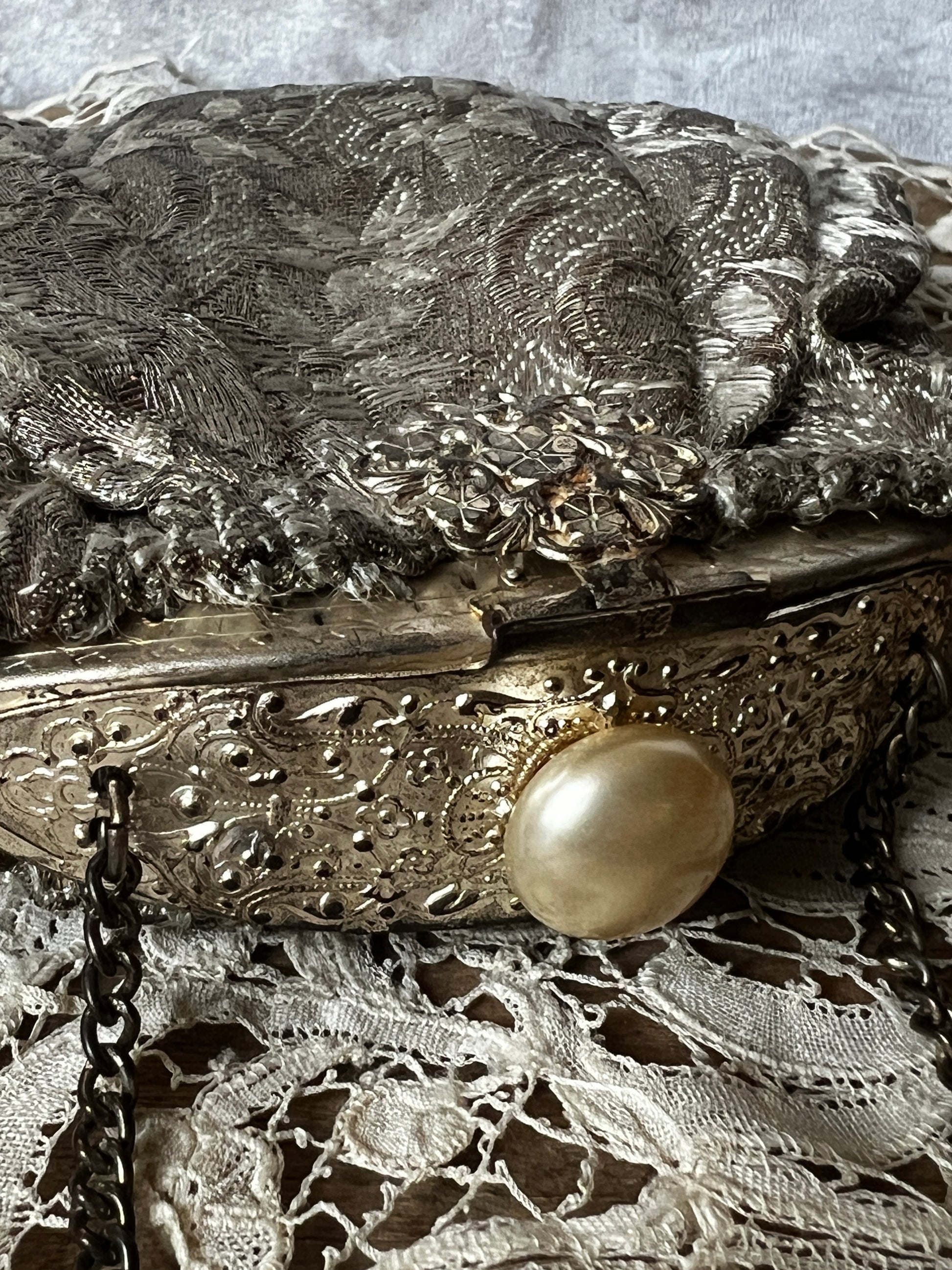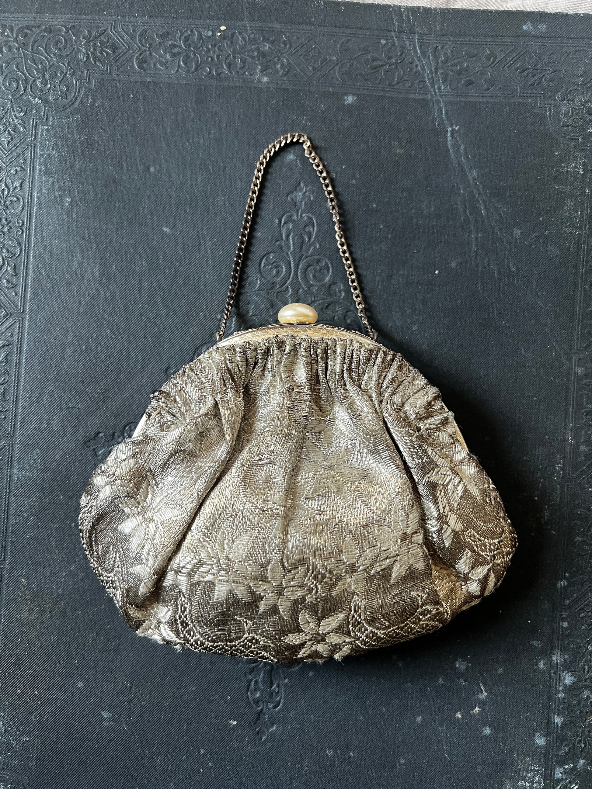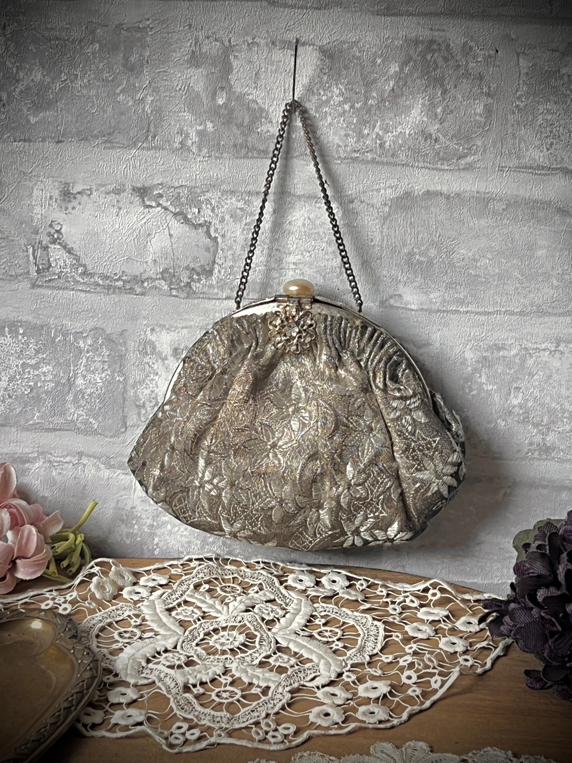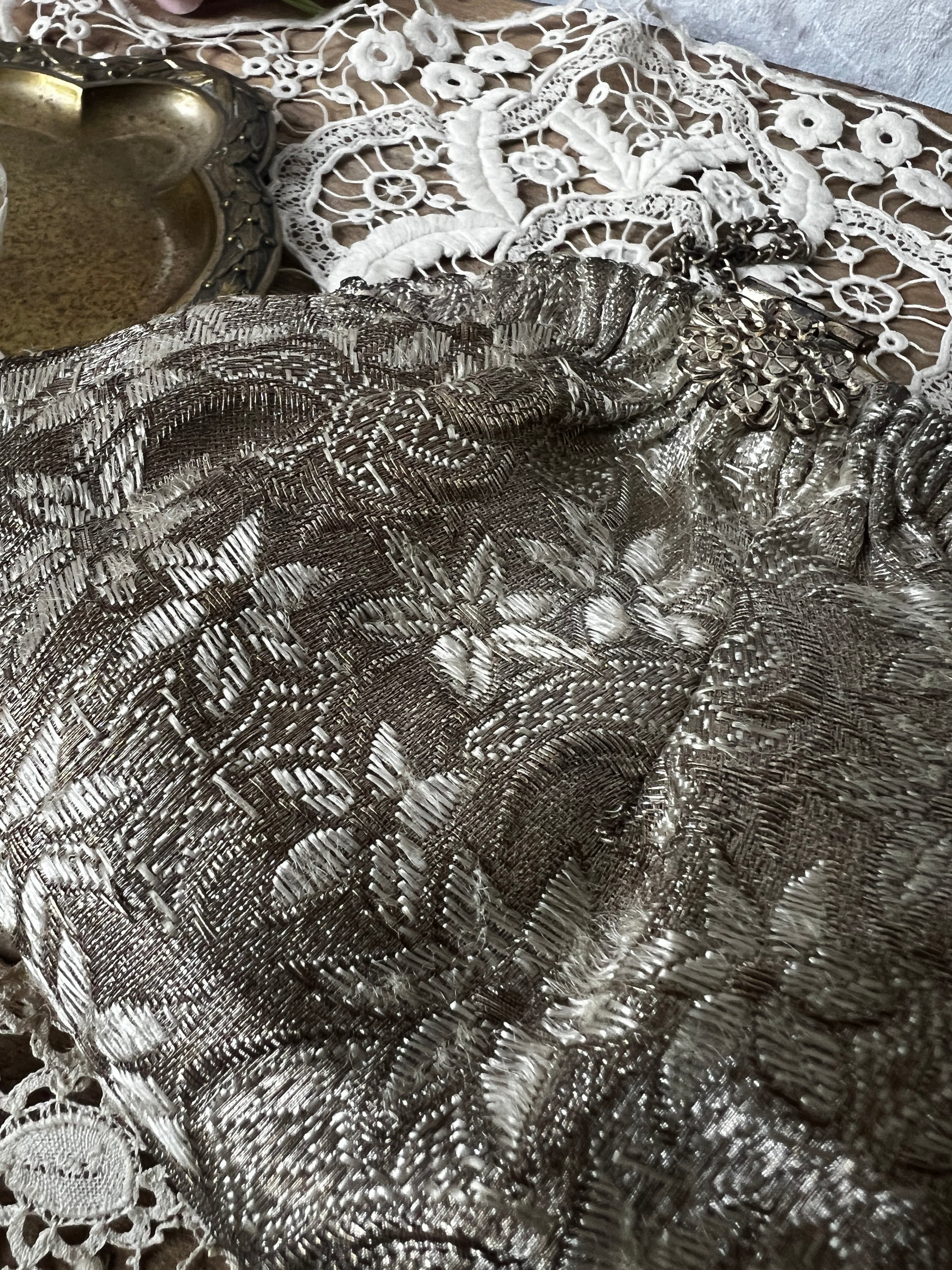 メタルヤーンで模様織りされた錦布を使用した、エレガントながま口サックです