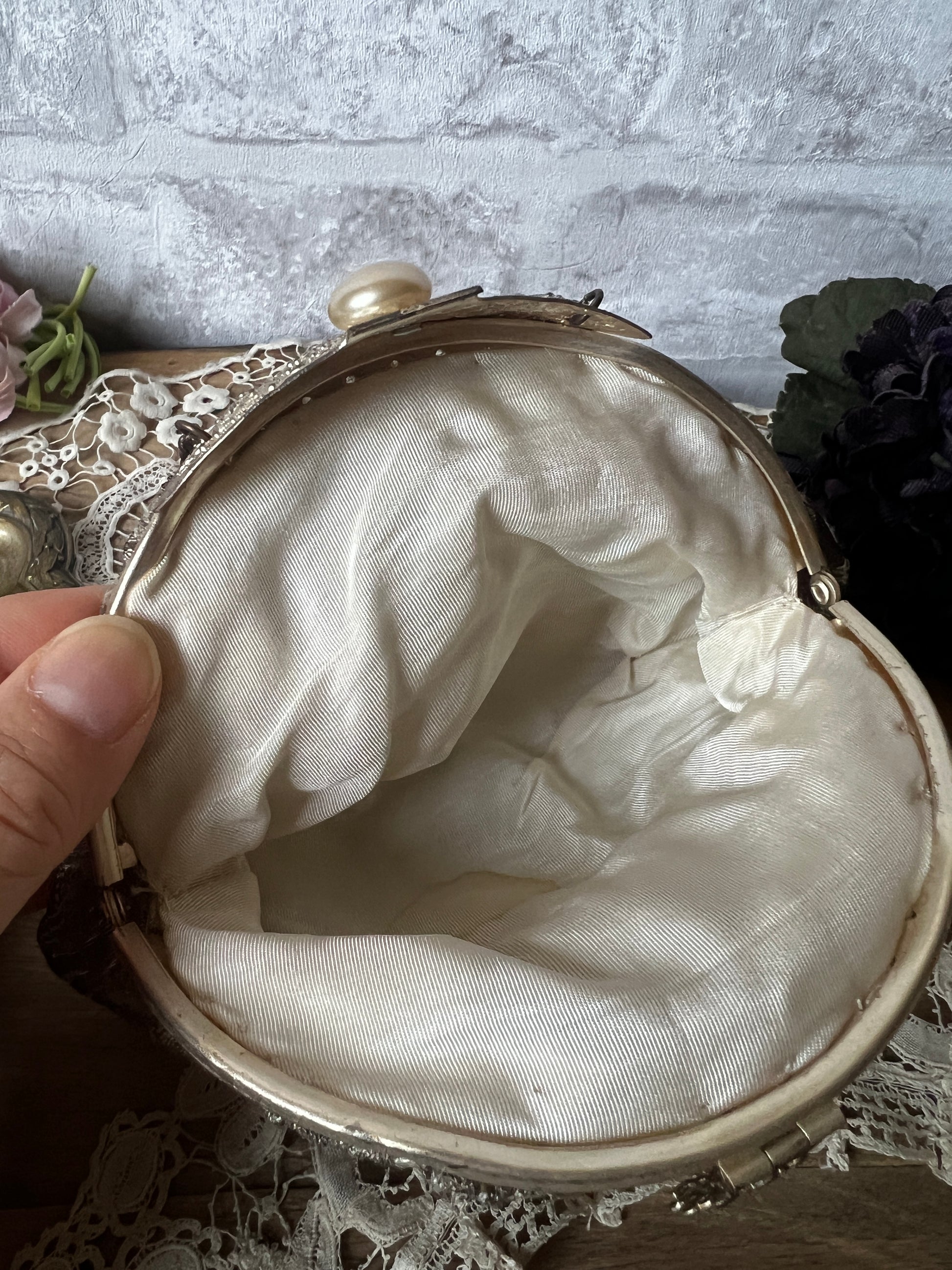 上前部の飾りパーツを持ち上げると、パチンと開くがま口仕様で、使い勝手も魅力的な一品