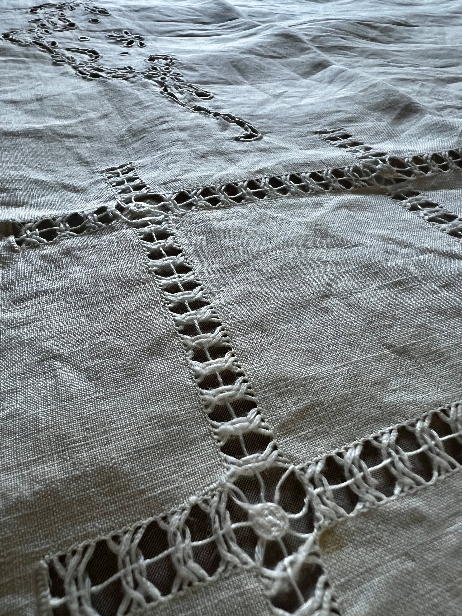 繊細な刺繍とレースが優しい雰囲気を演出し、インテリアにも上品なアクセントを添えてくれます