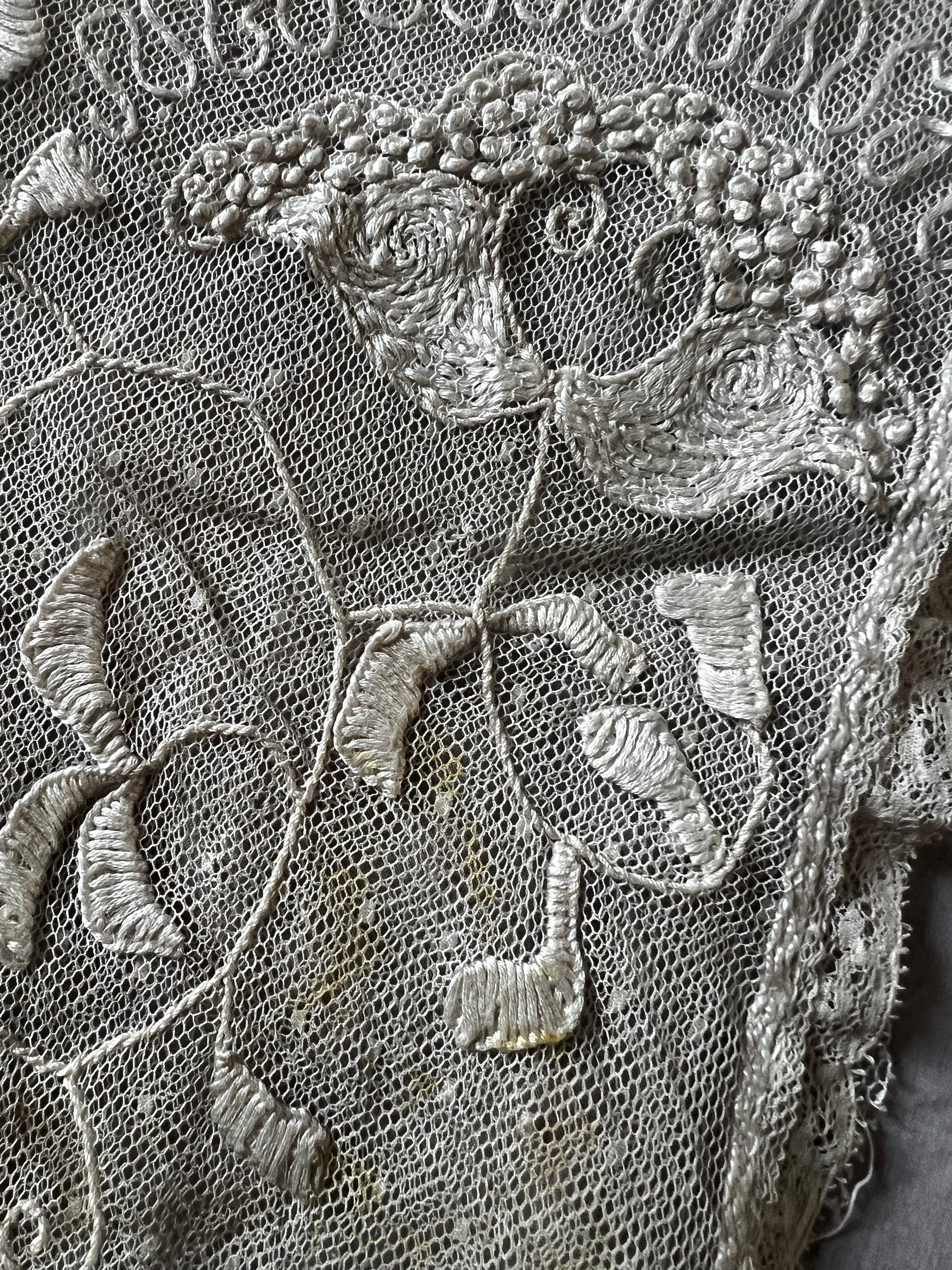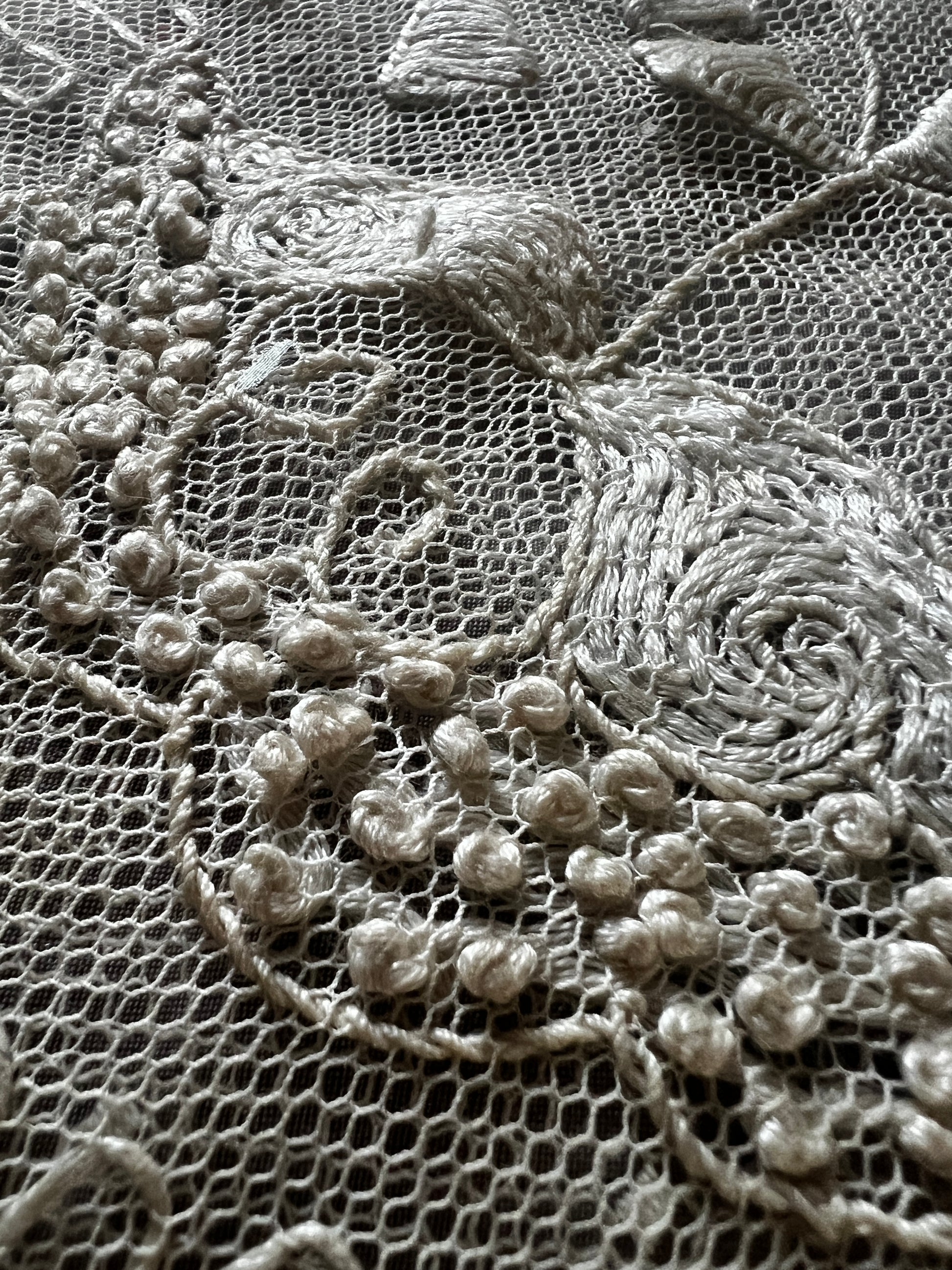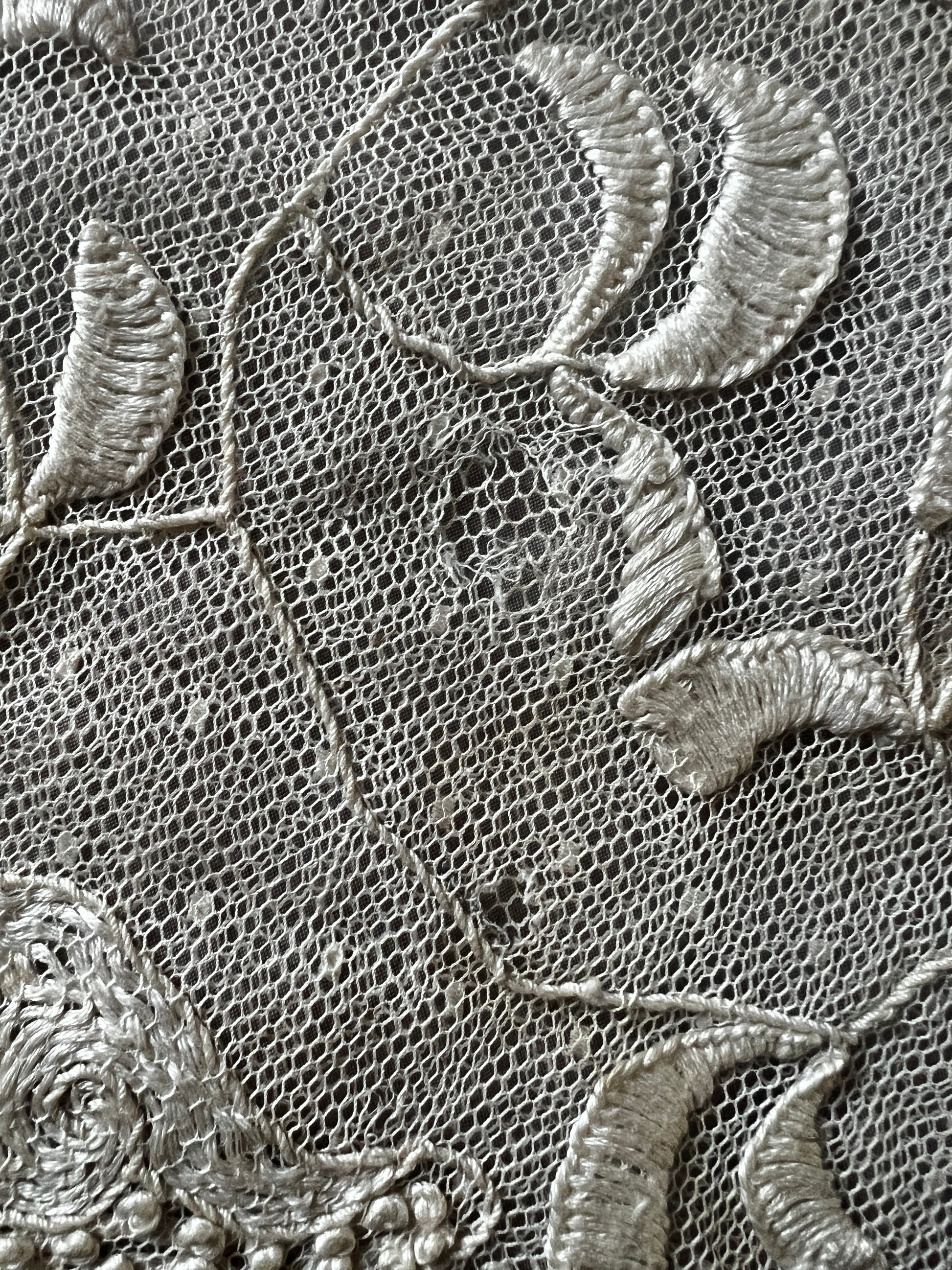 カフェオレのようなシックな色合いが魅力の、チュール刺繍のクッションカバーです