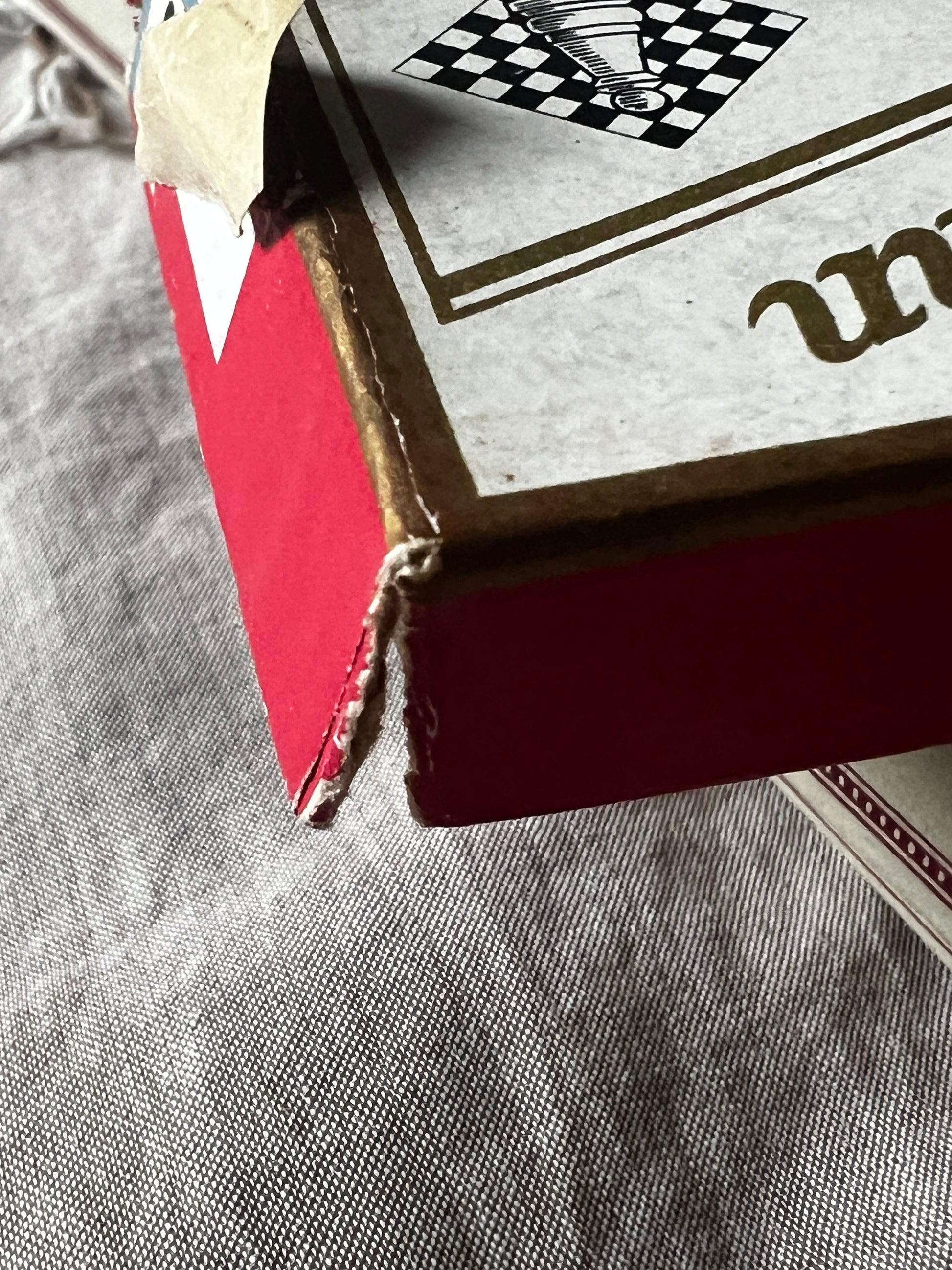 紙箱は古く、角や表面に経年による消耗や小さなダメージがありますが、それも含めてヴィンテージならではの風合いとして楽しめるお品です