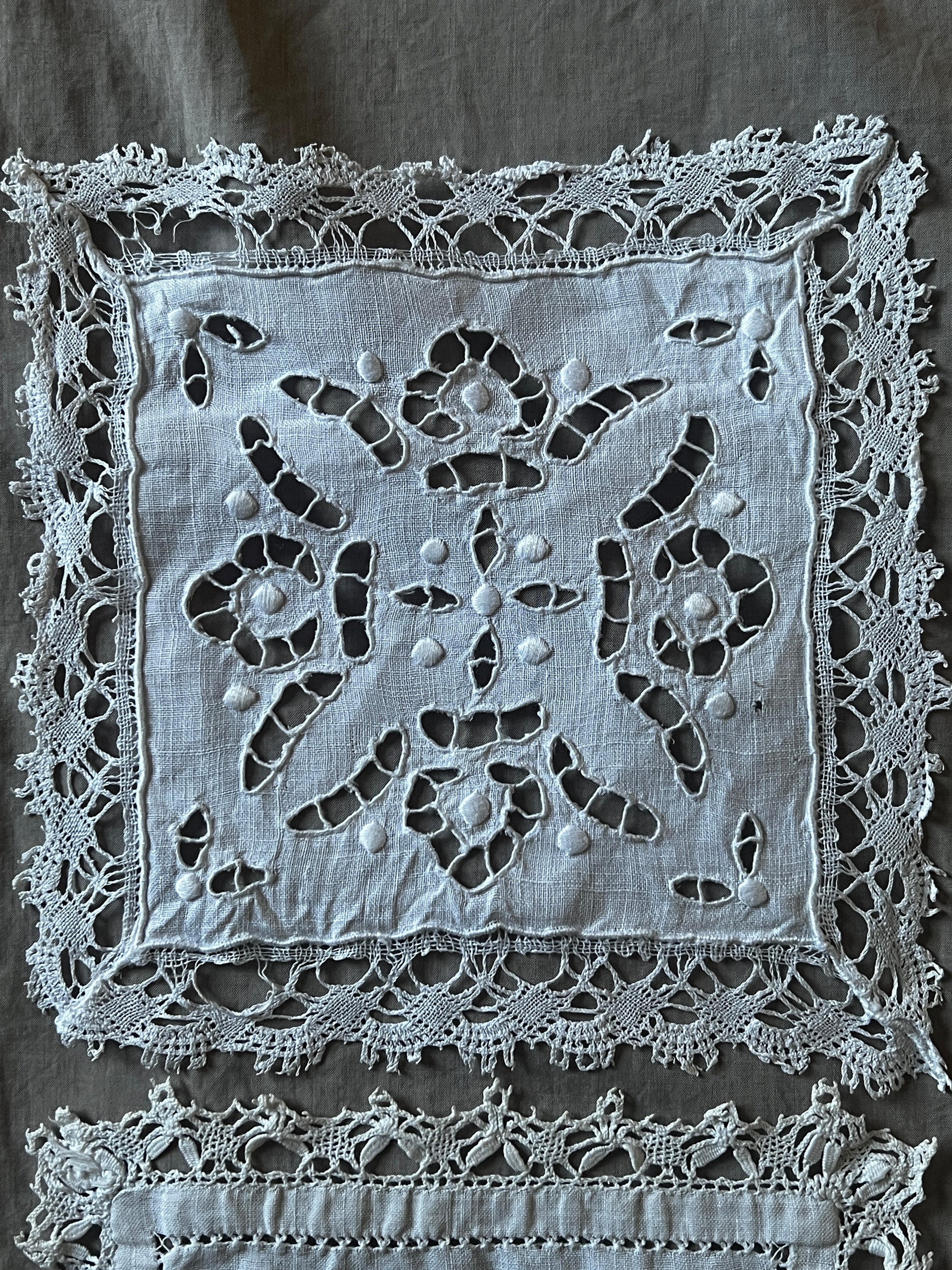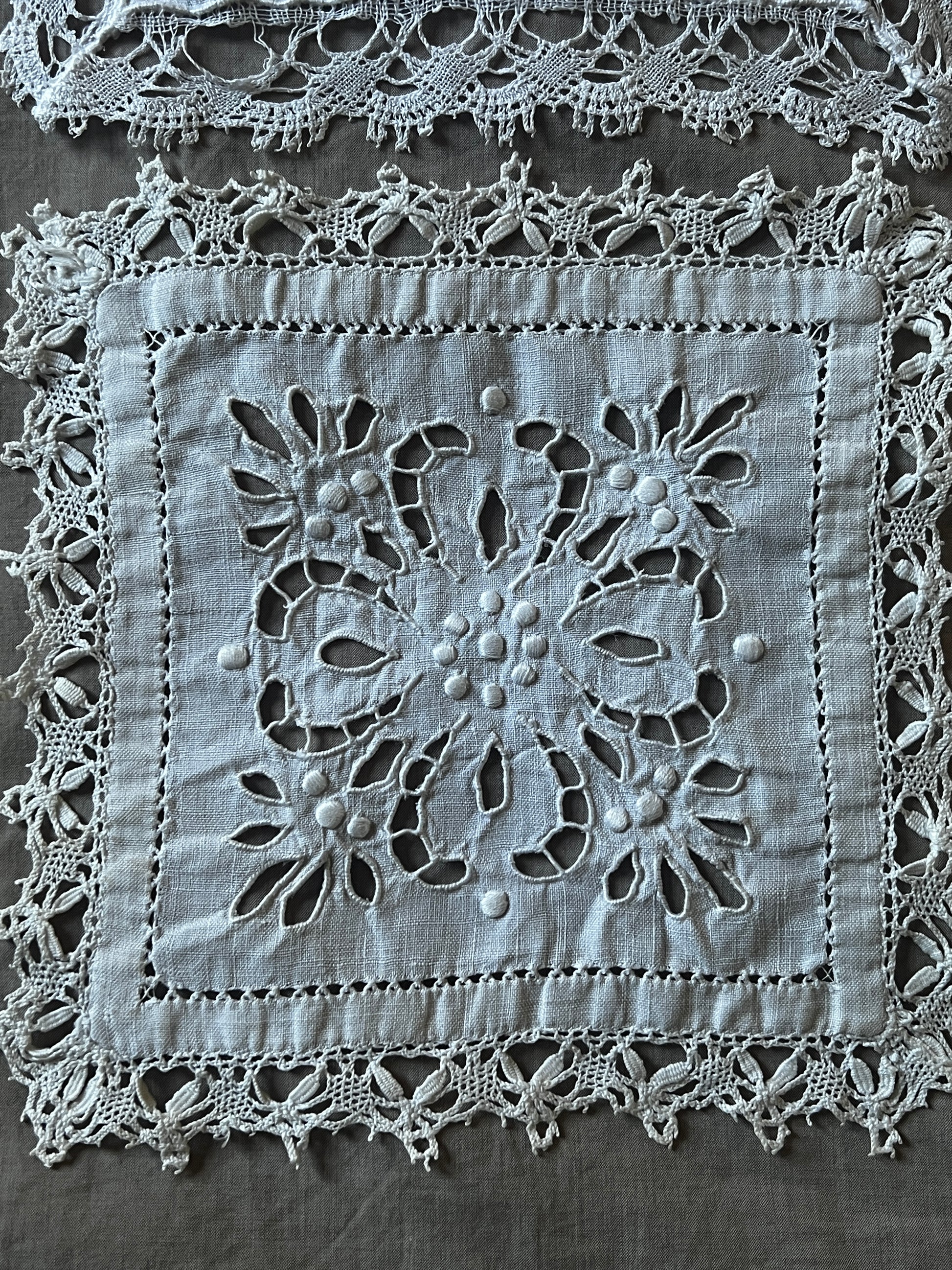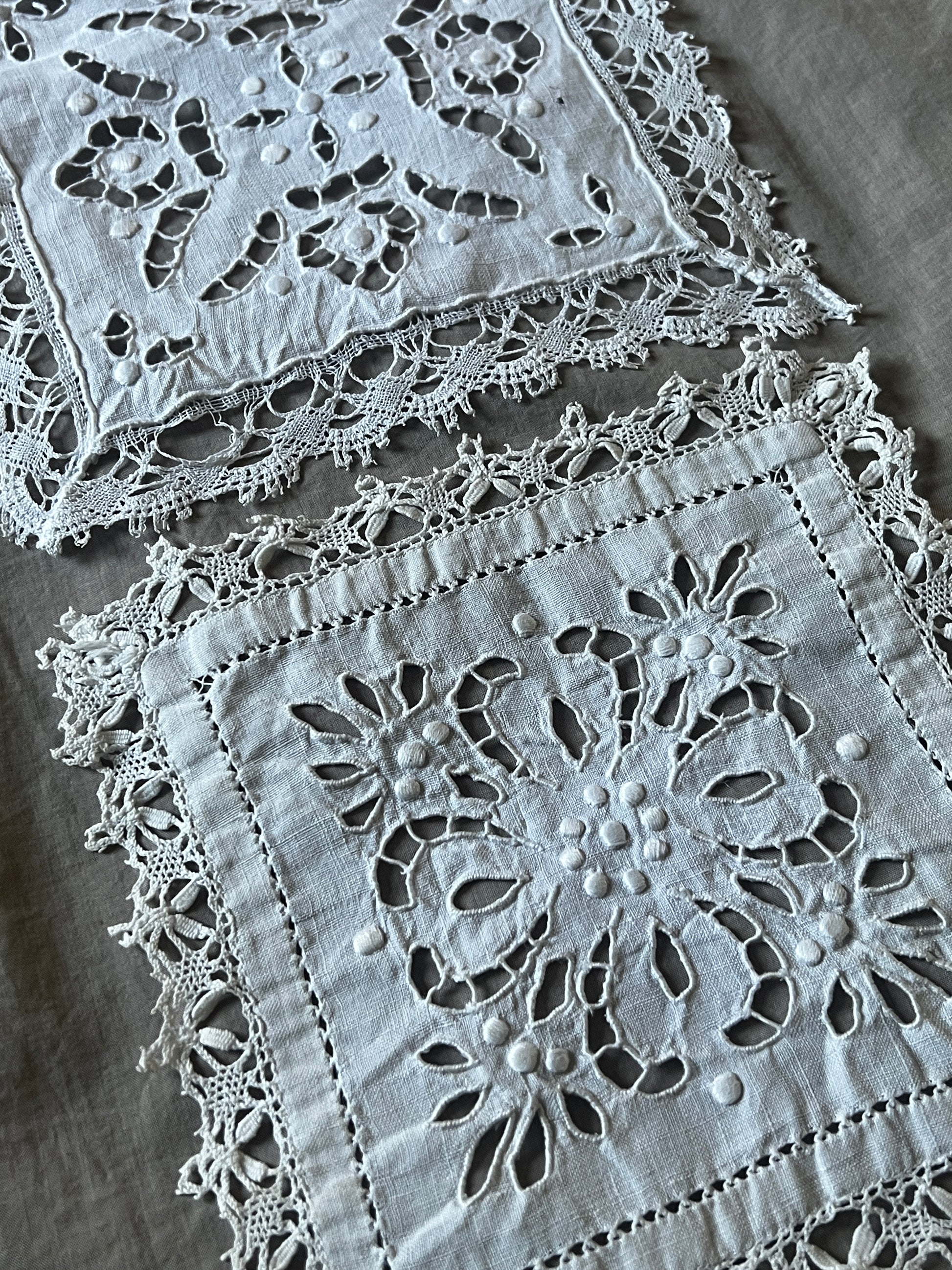 正方形のカットワーク白刺繍クロスの2枚セットです