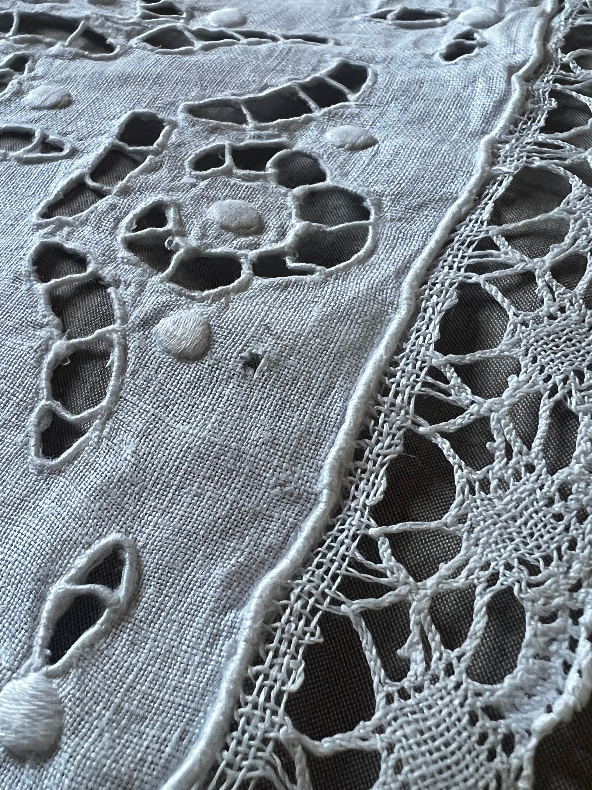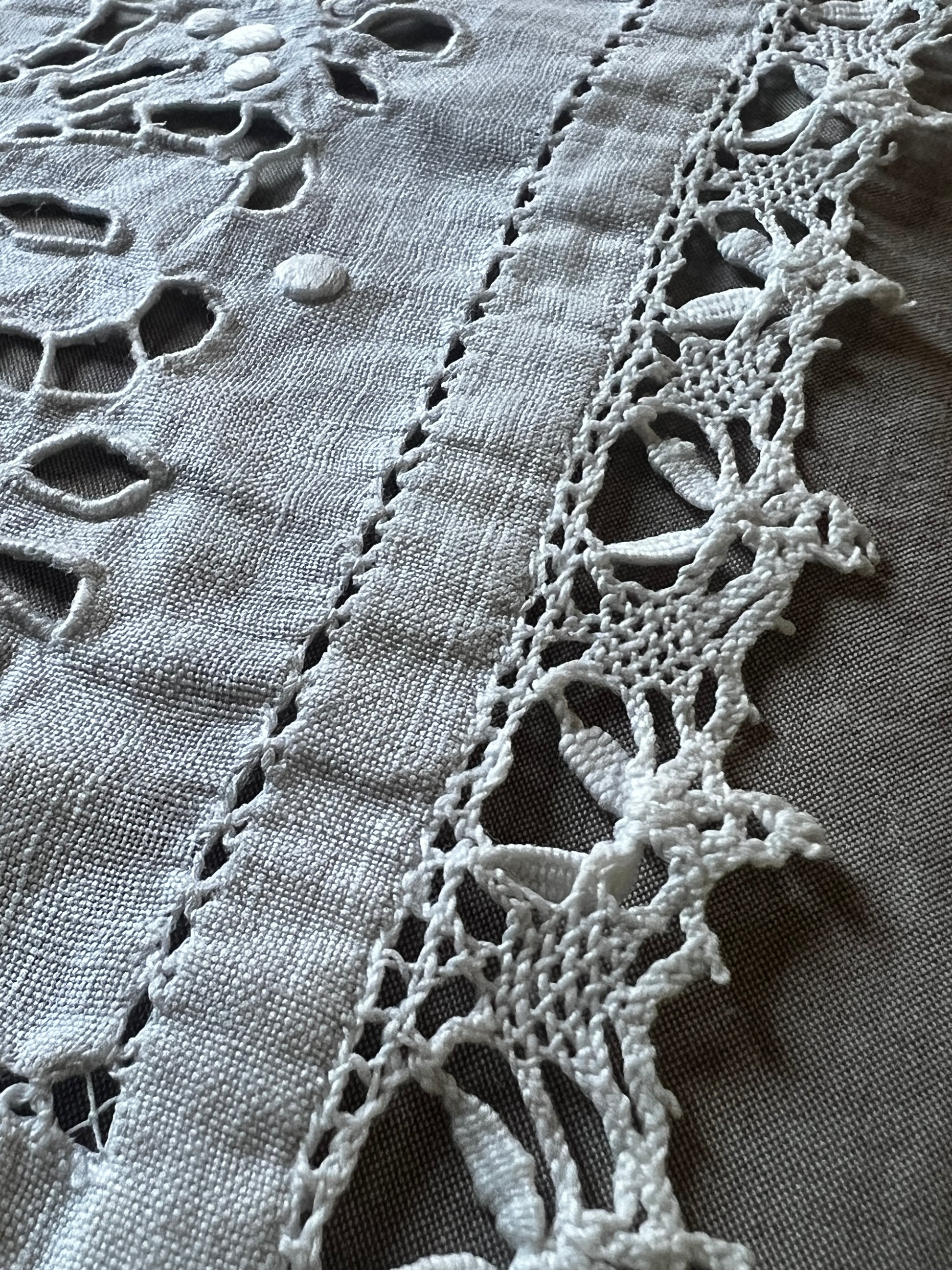縁はボビンレースで飾られており、上品でやさしい雰囲気