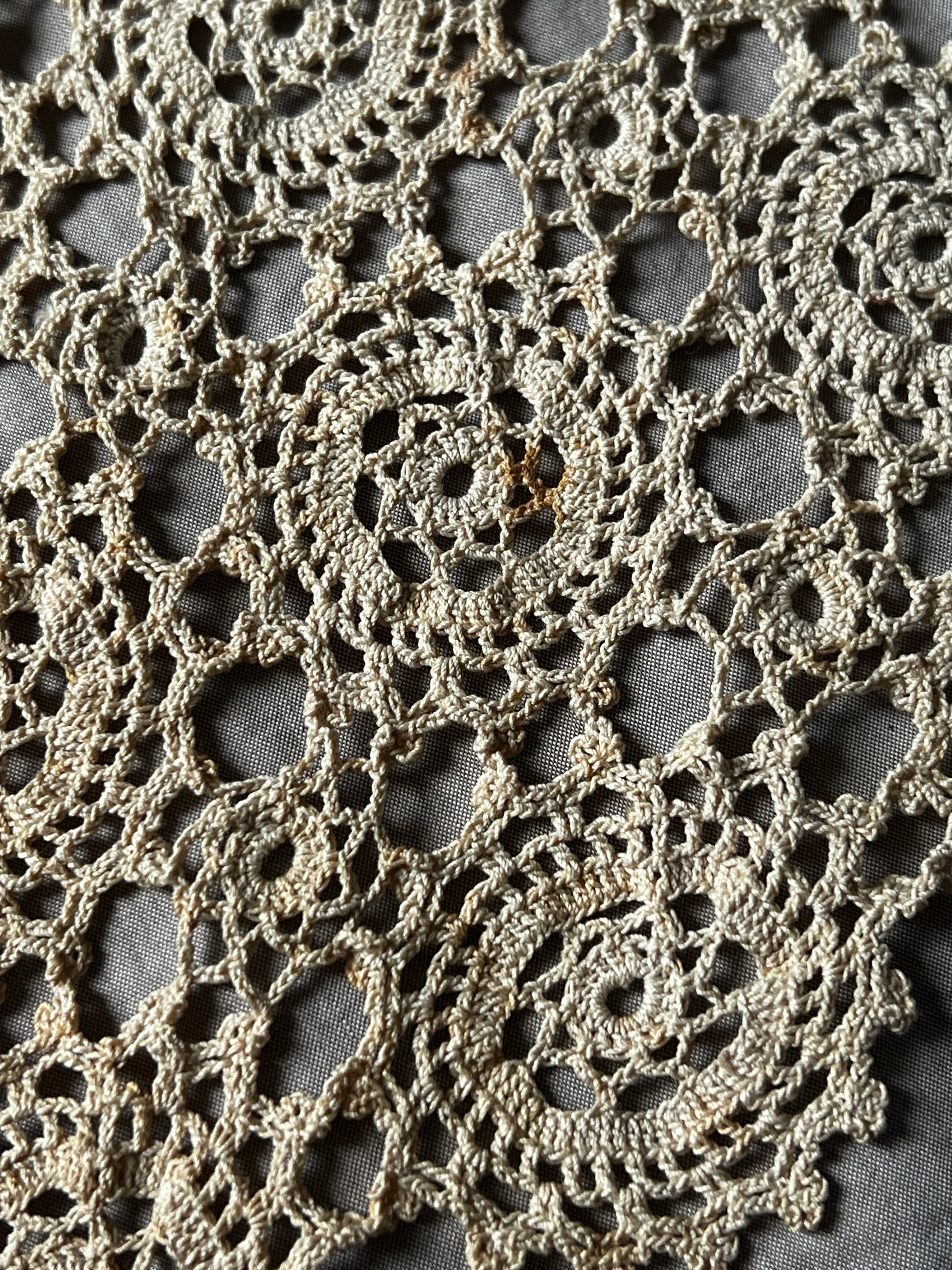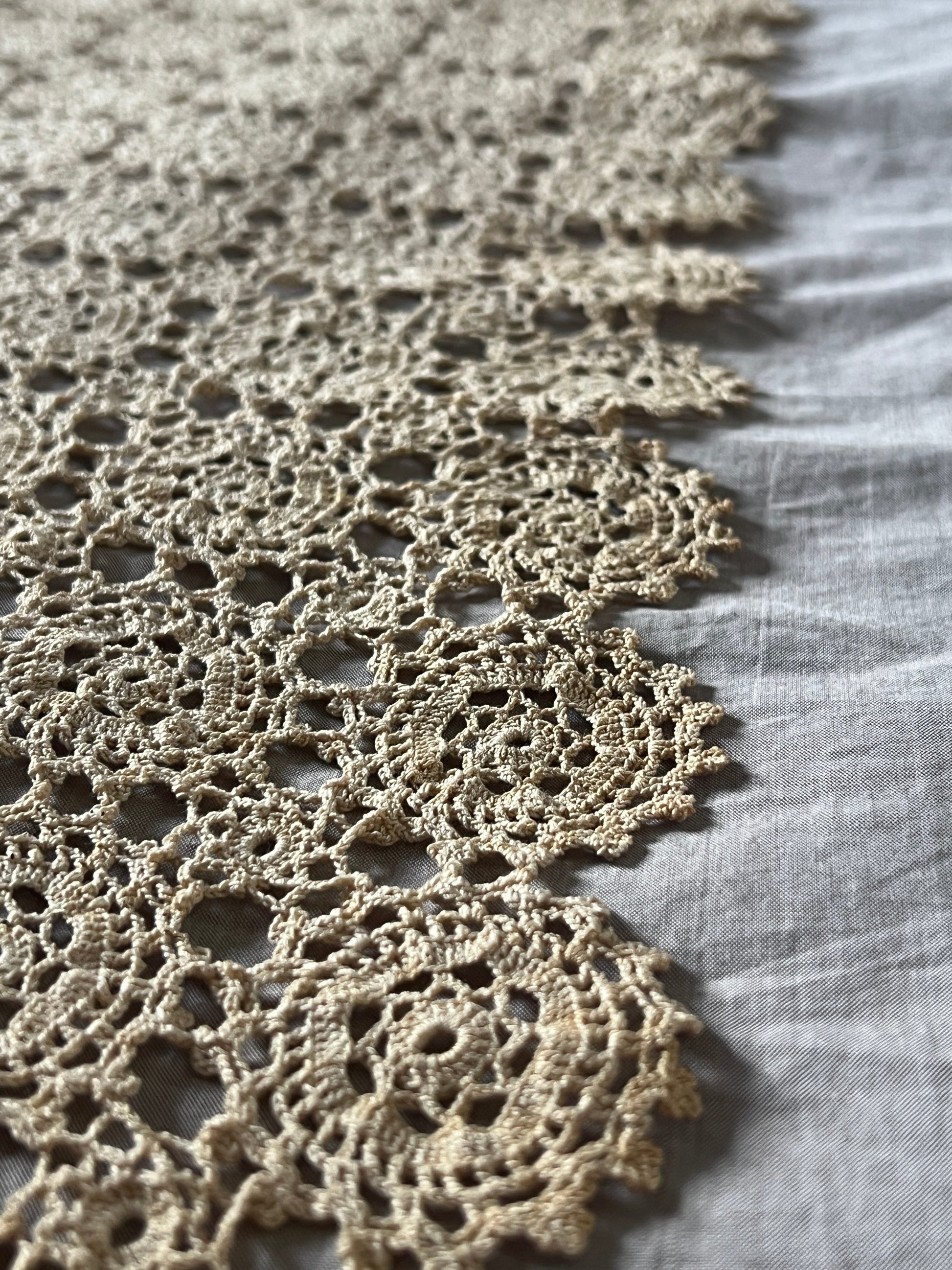 レースの編み目には熟練の技とやさしさが息づいており、落ち着いた色味が空間に温かさを添えてくれます