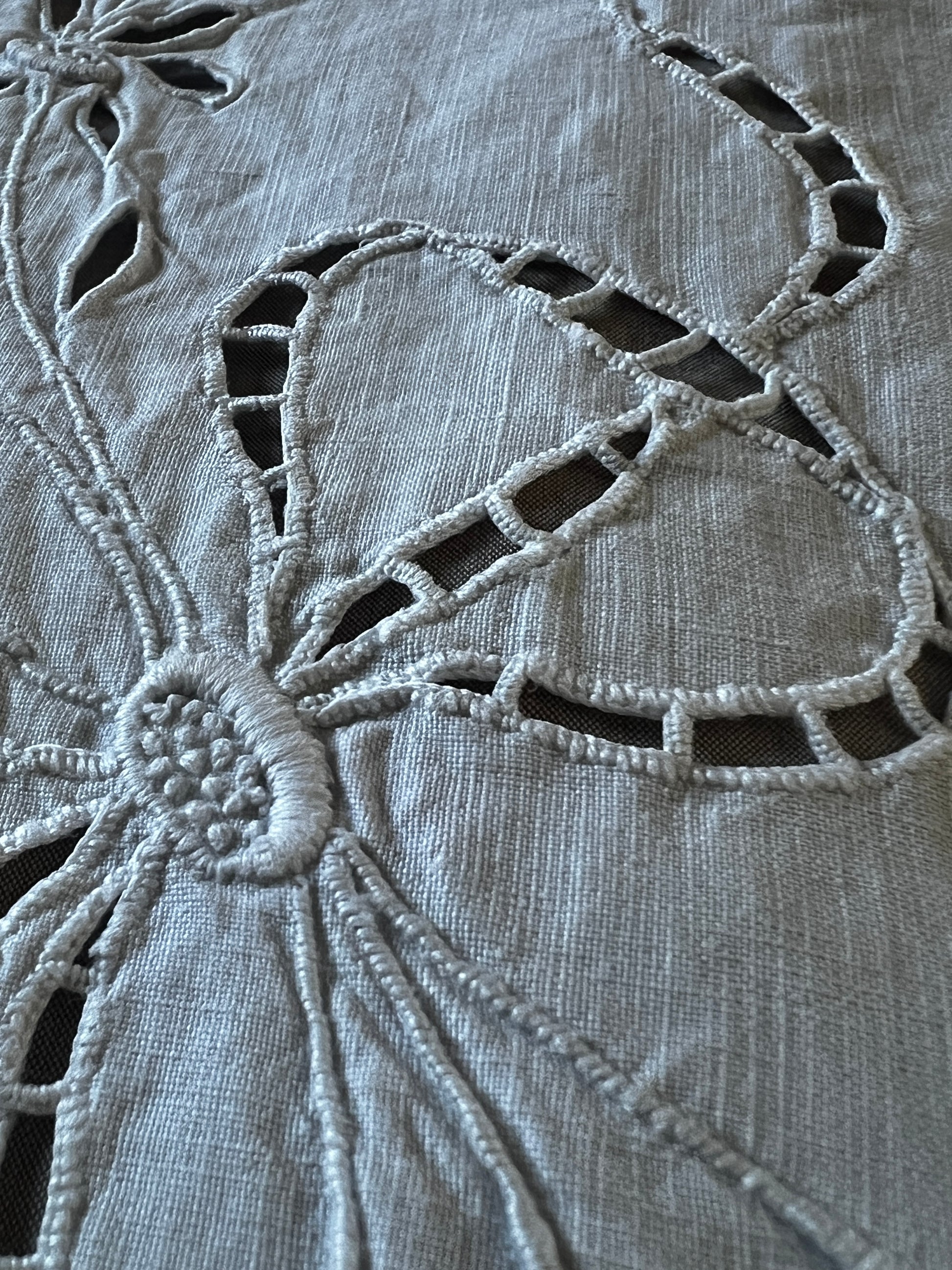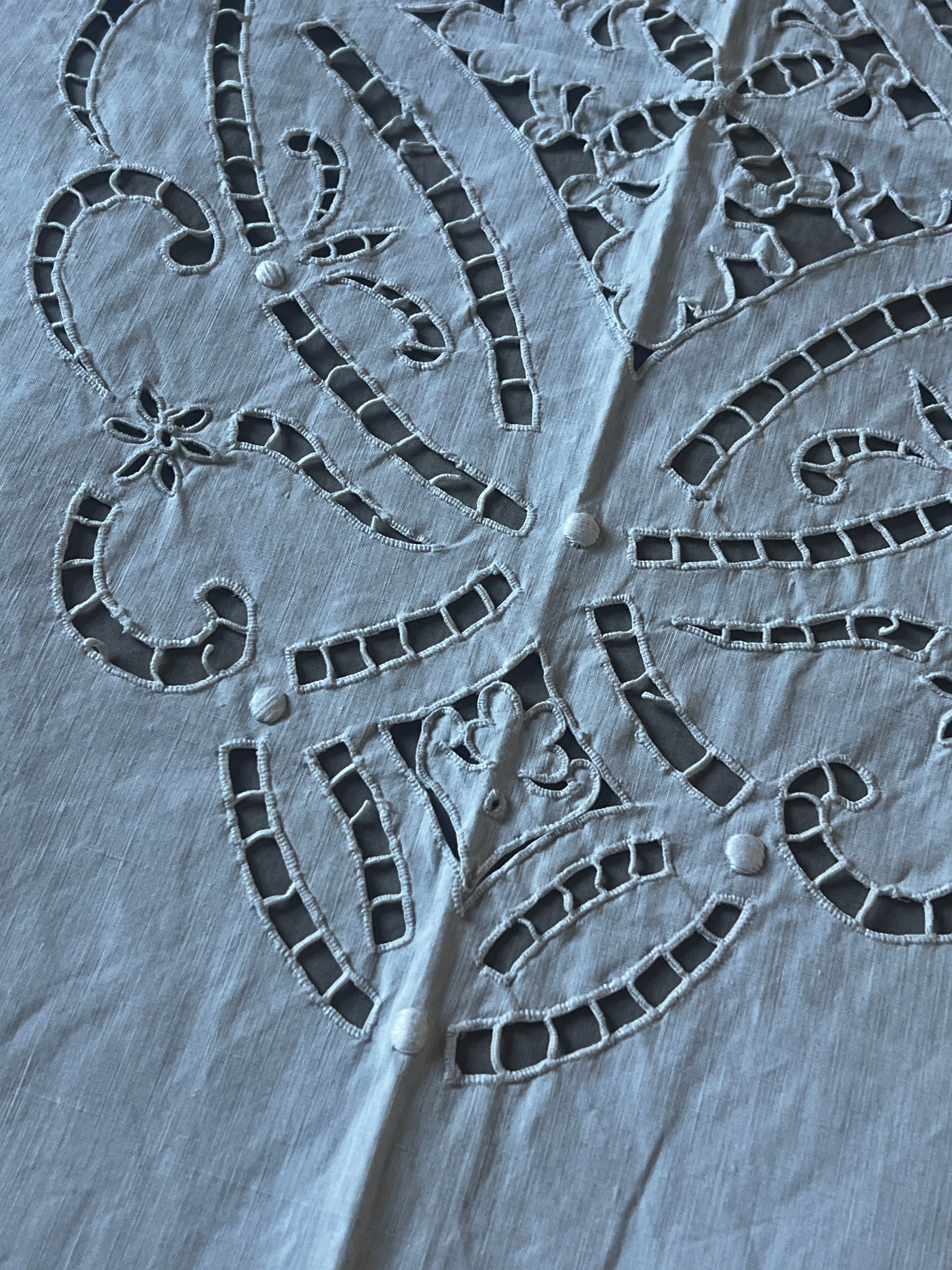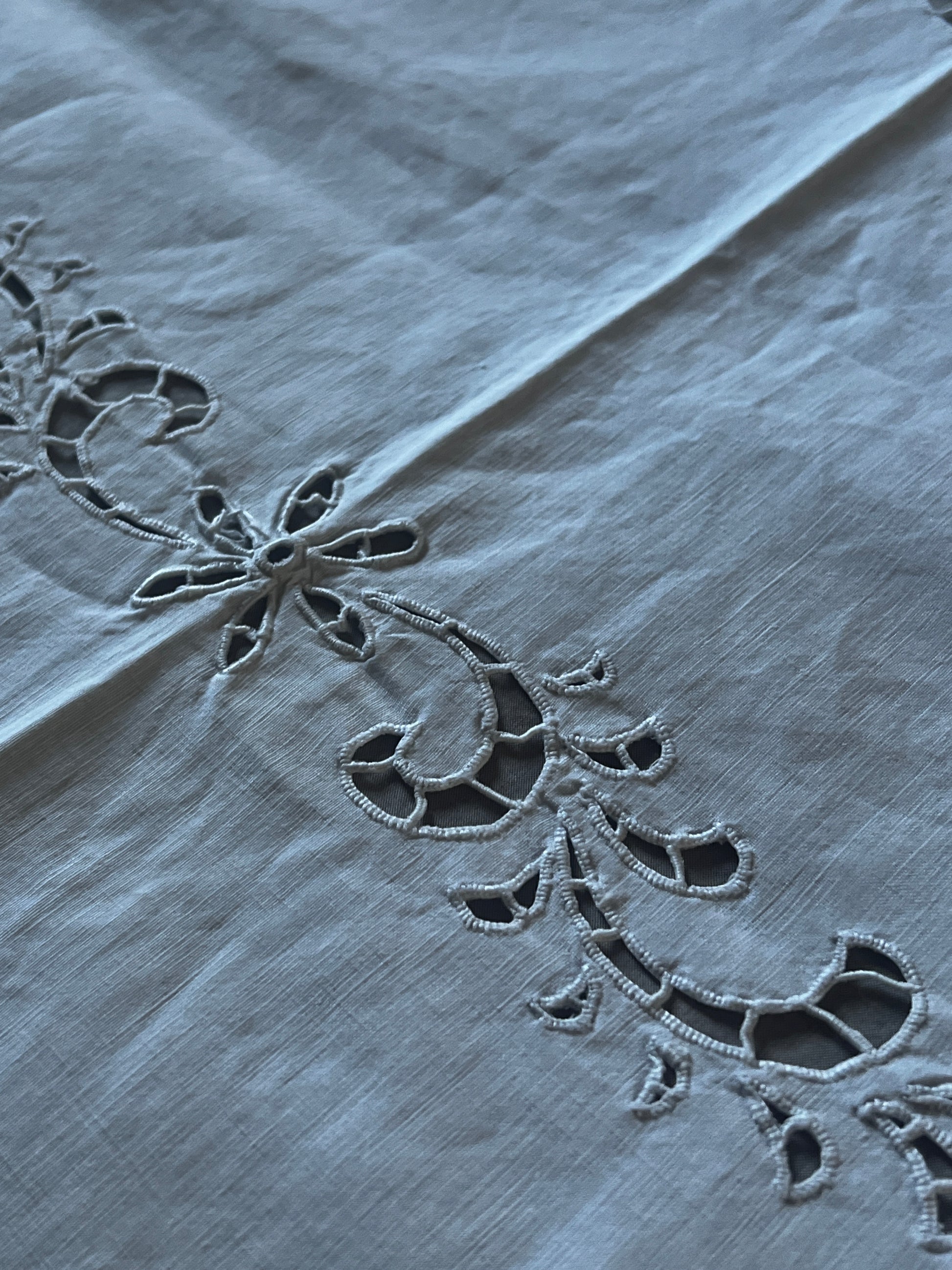 白刺繍とカットワークで丁寧にデザインされた大判のクロスです