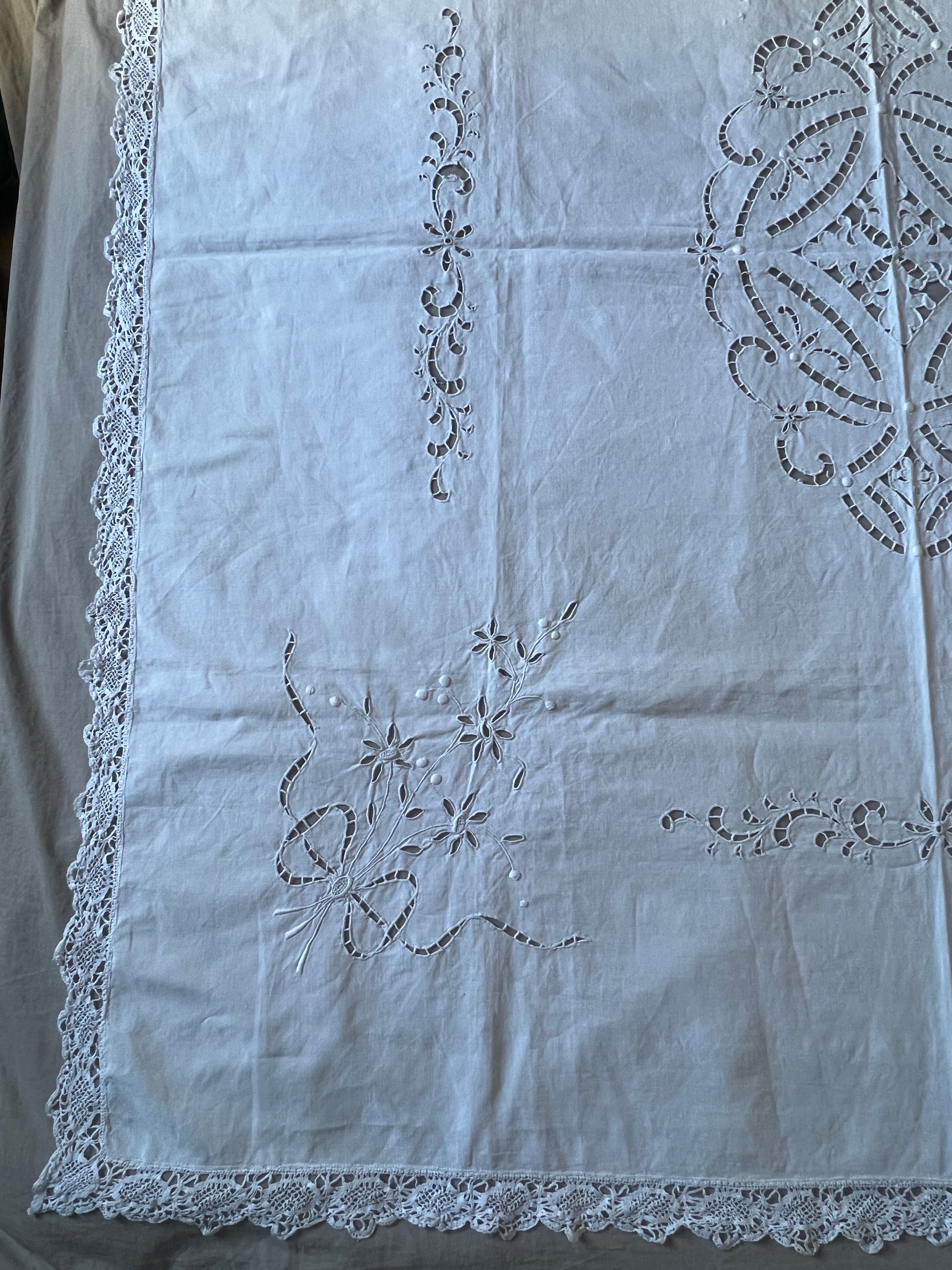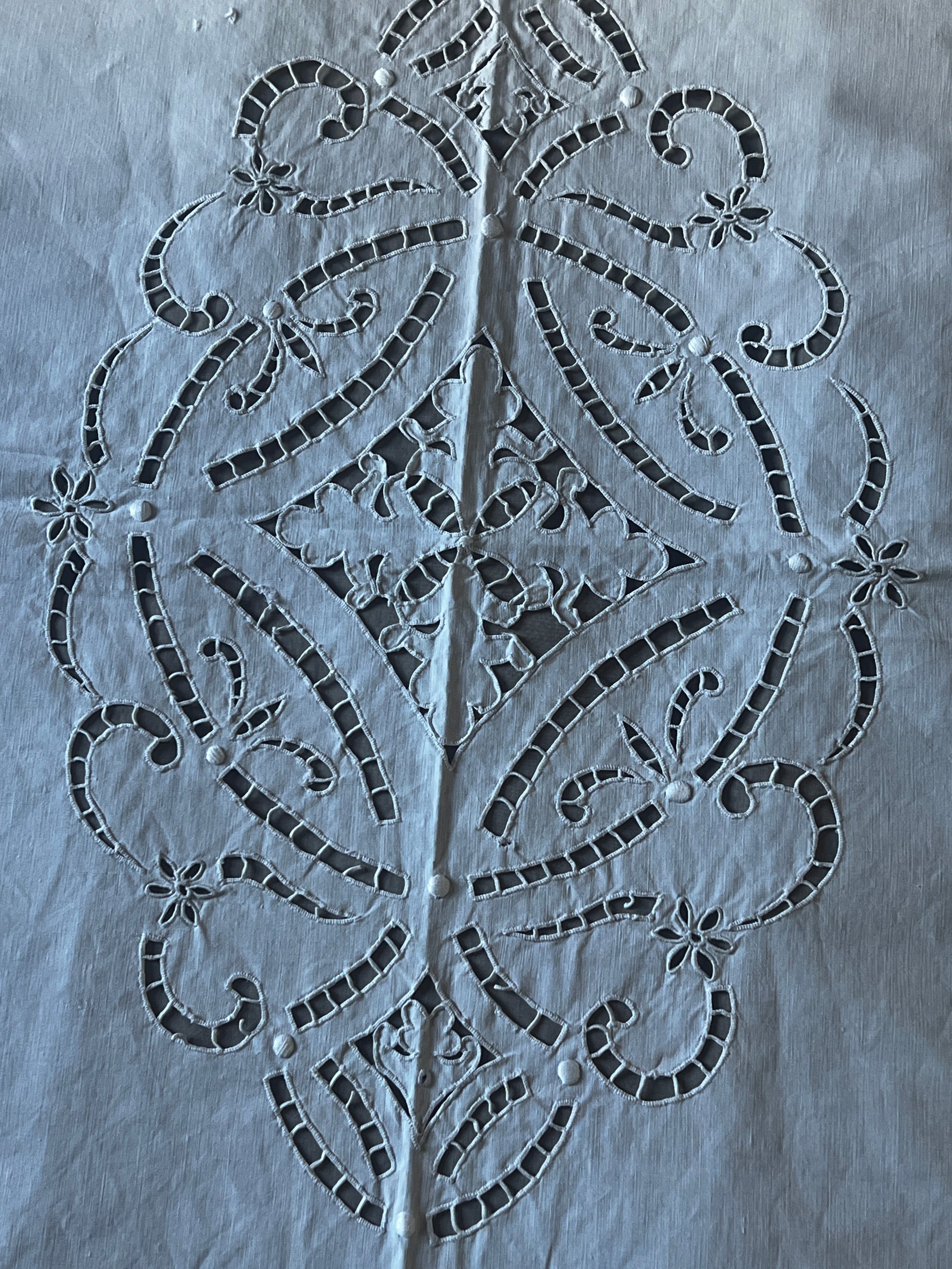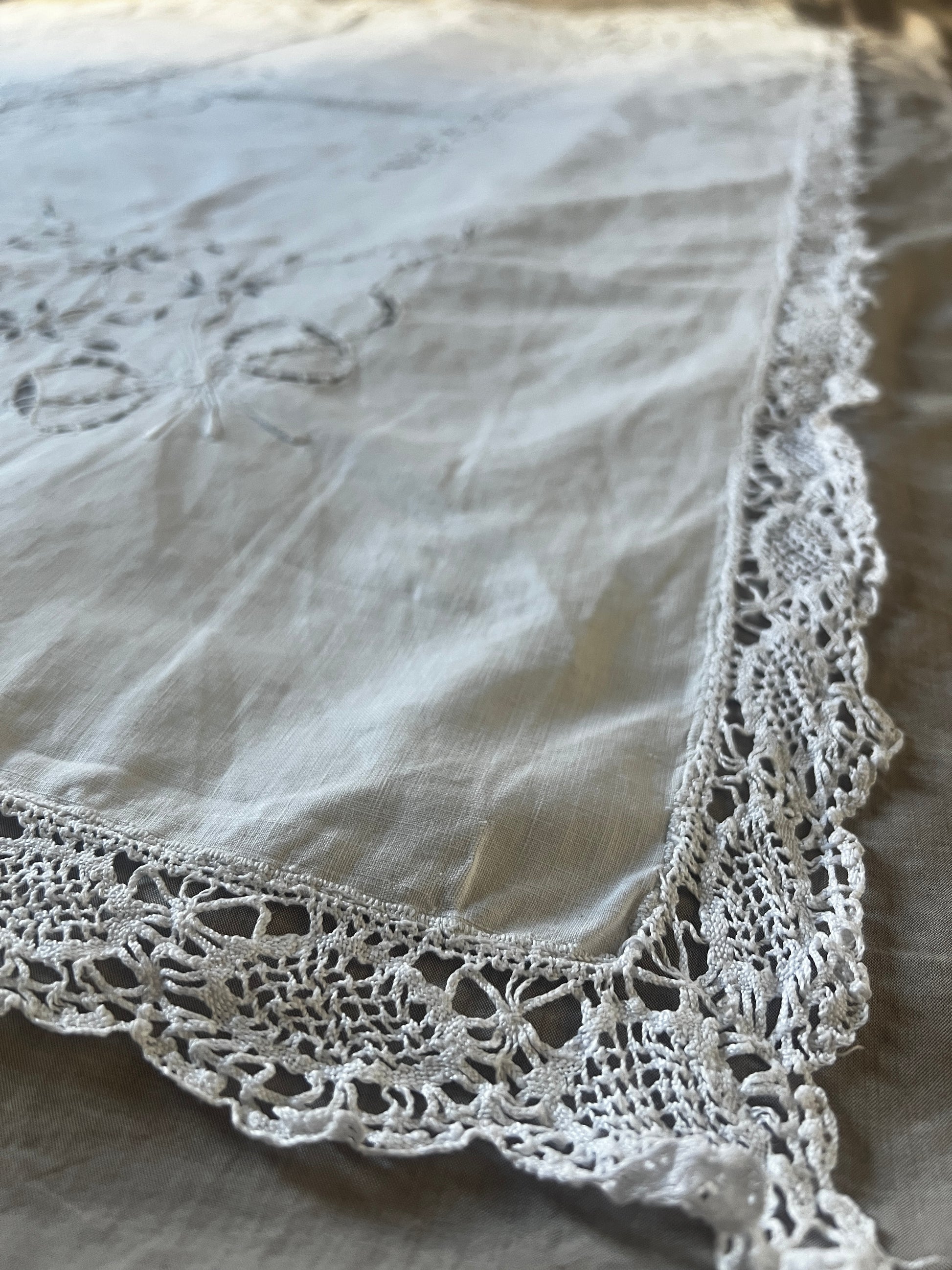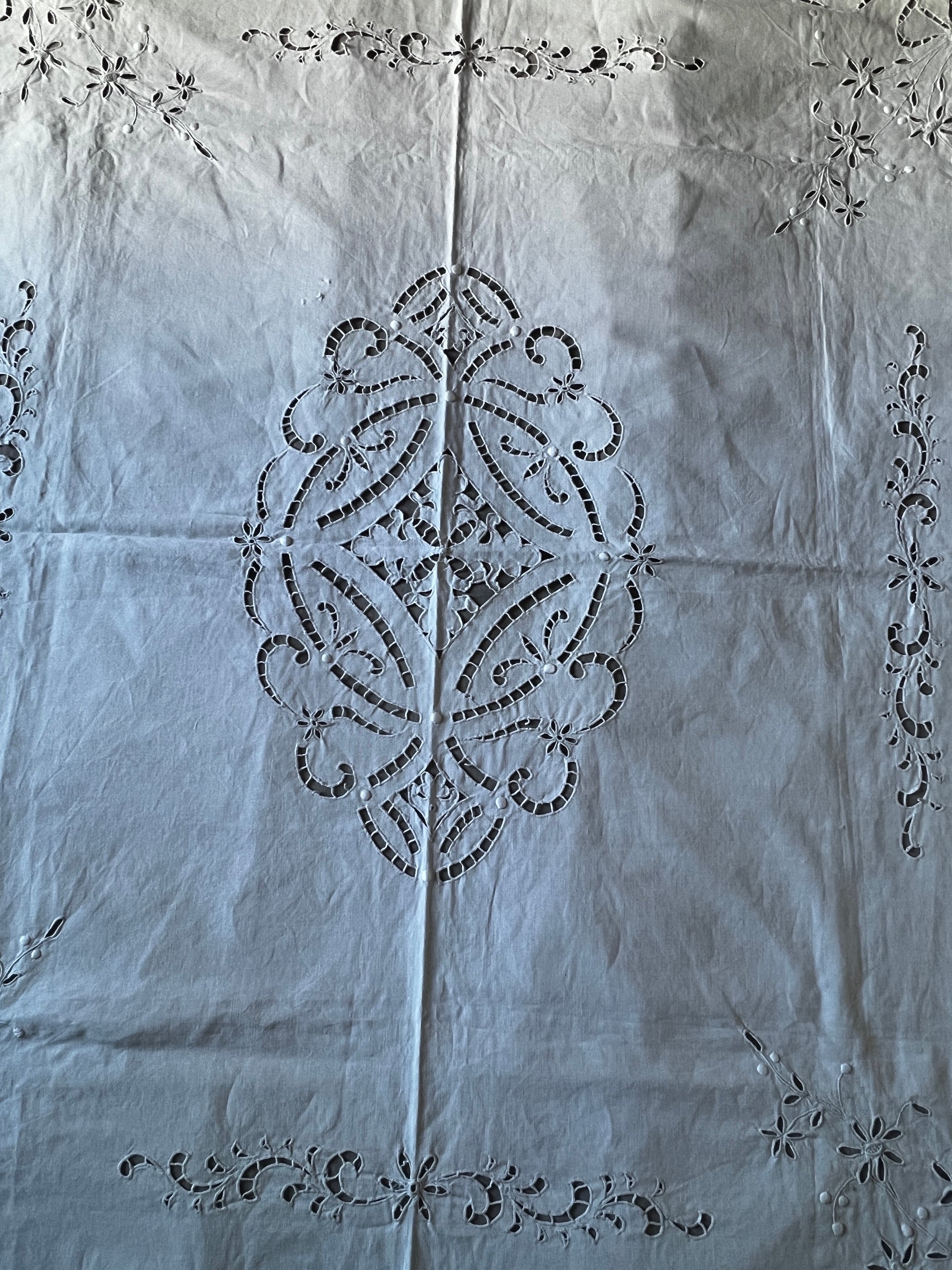 白刺繍とカットワークで丁寧にデザインされた大判のクロスです
