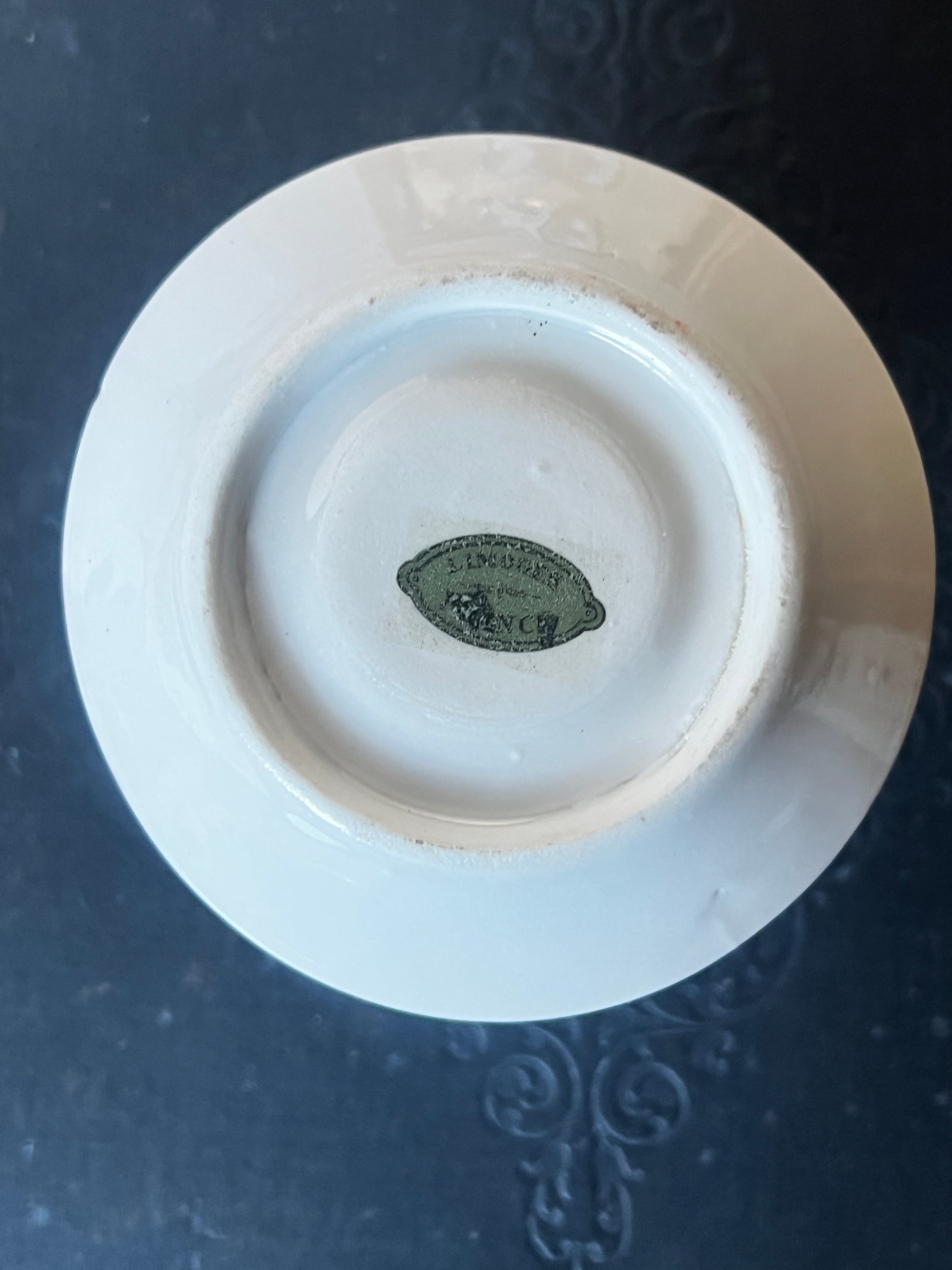 底裏には不鮮明ですが「LIMOGES(リモージュ)」の印が見られ、フランス製の伝統ある陶磁器であることを示しています