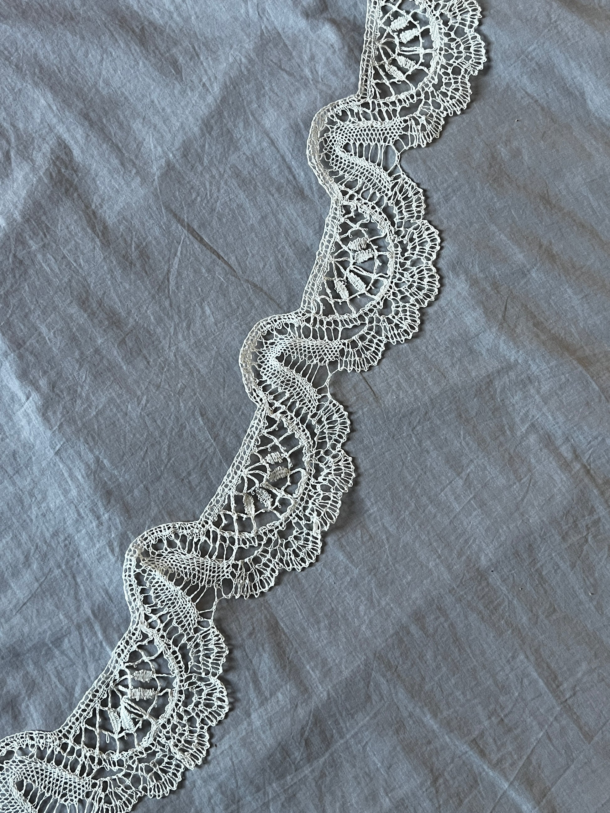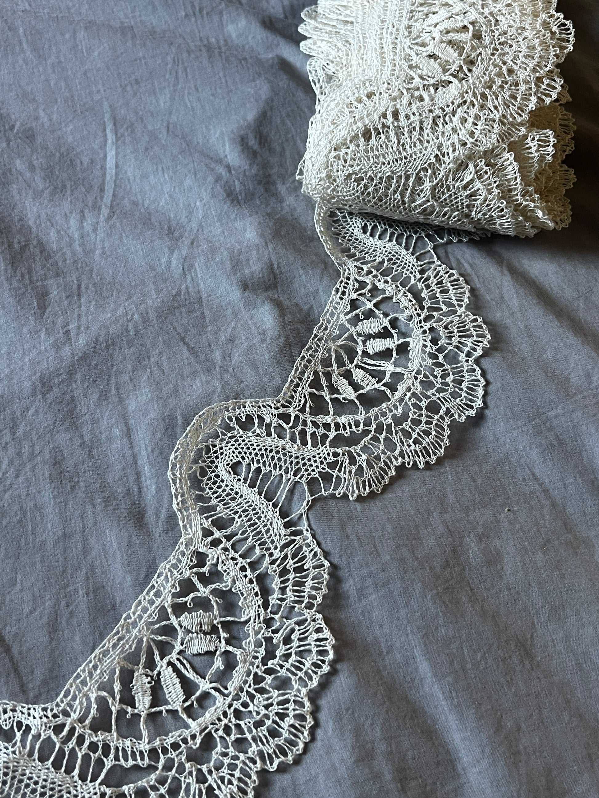 大きなウェーブ模様が目を引く、美しいボビンレースの大ロット巻きです