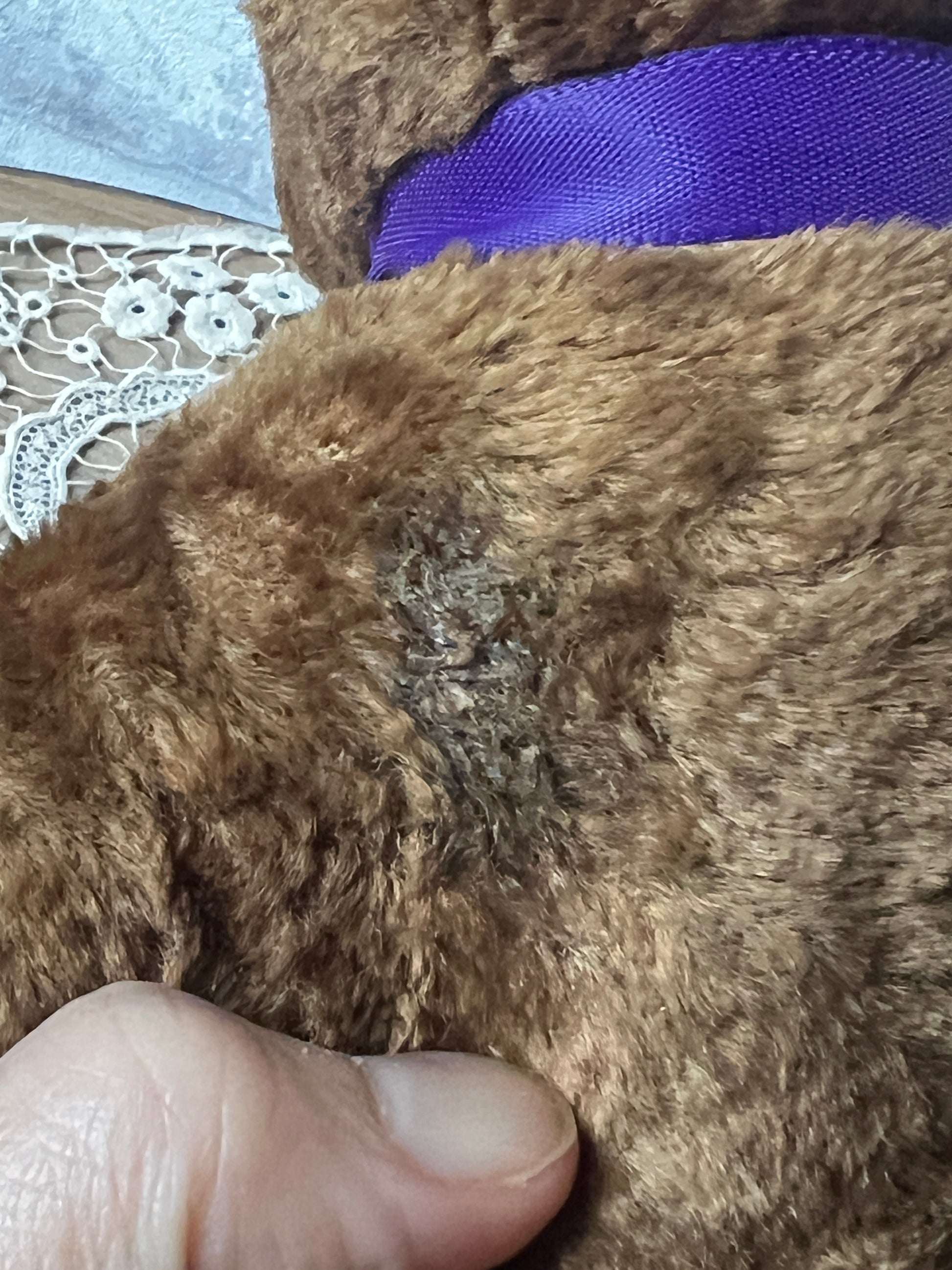 どちらもこのぬいぐるみが過ごしてきた時間の名残として、やさしく受け止めていただければと思います