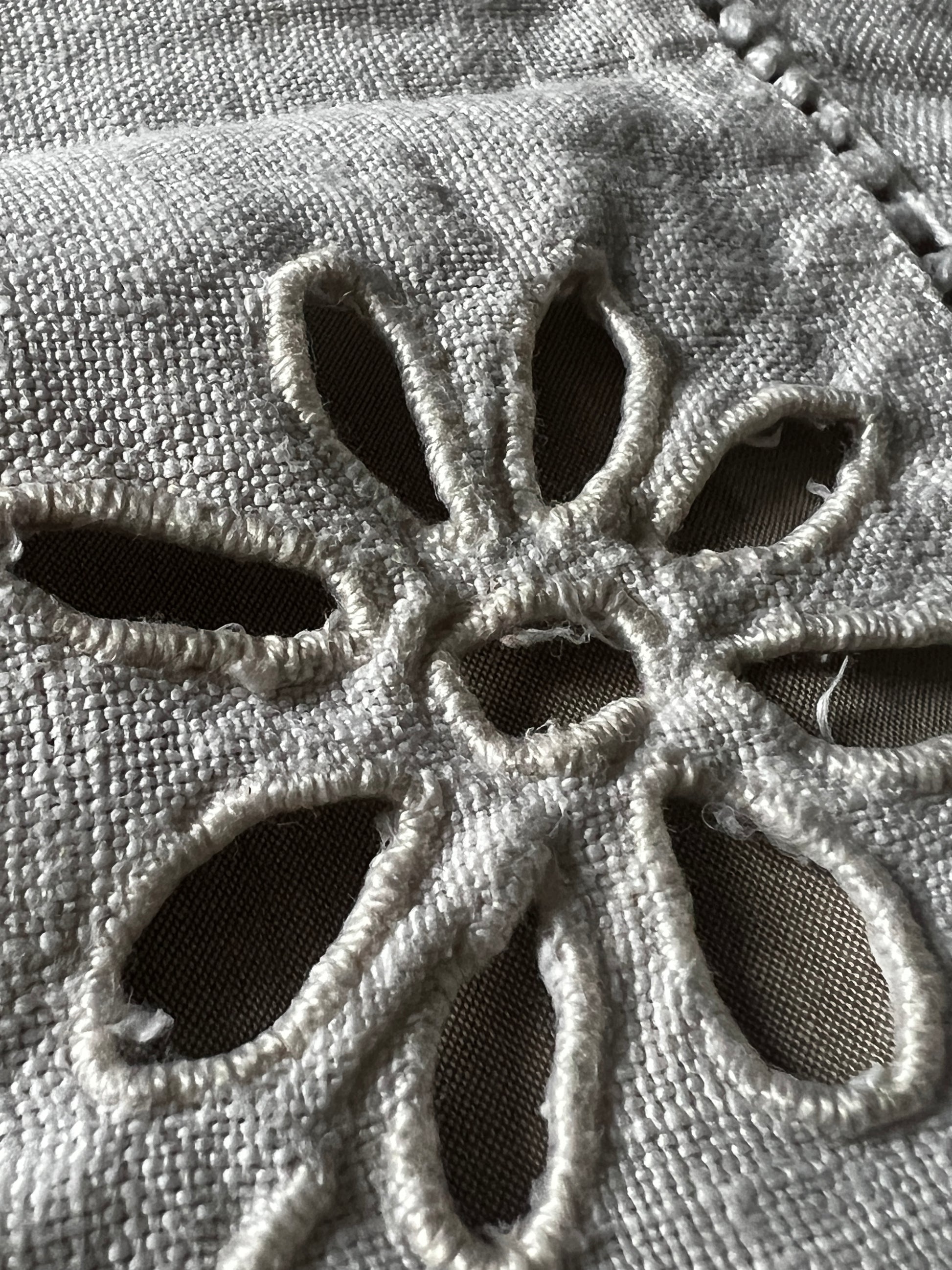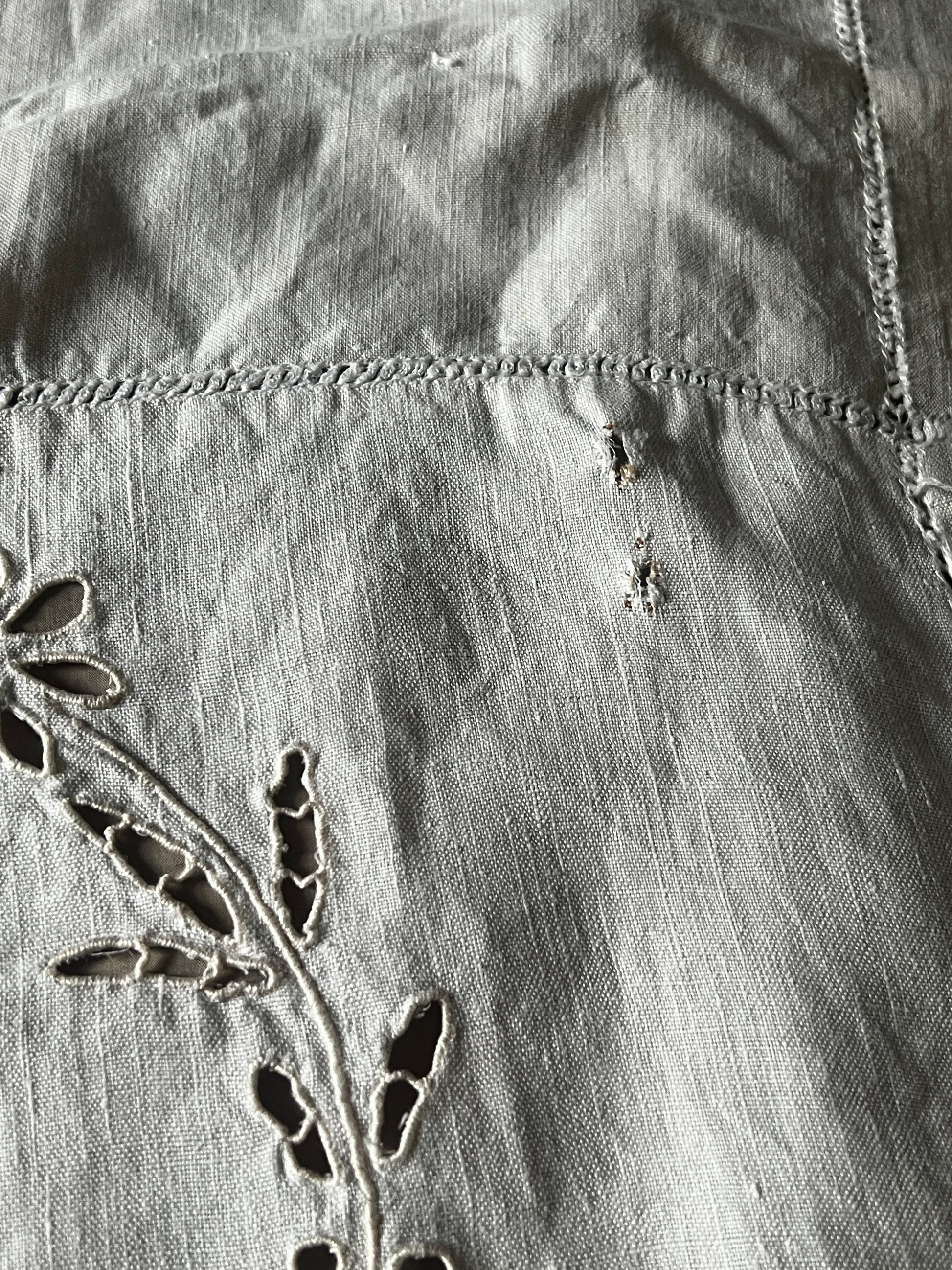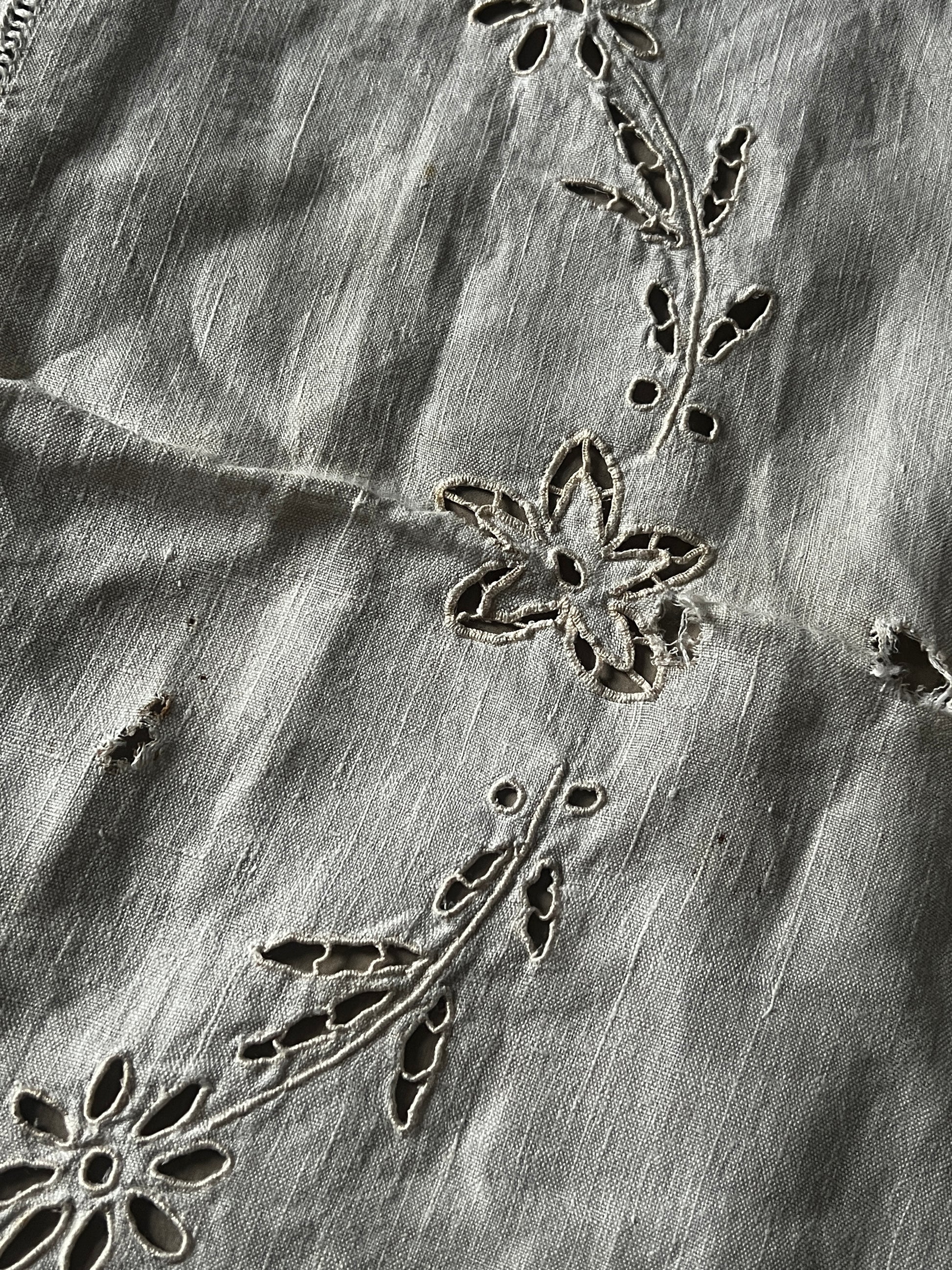 カットワーク刺繍リネンクロス(ダメージ)