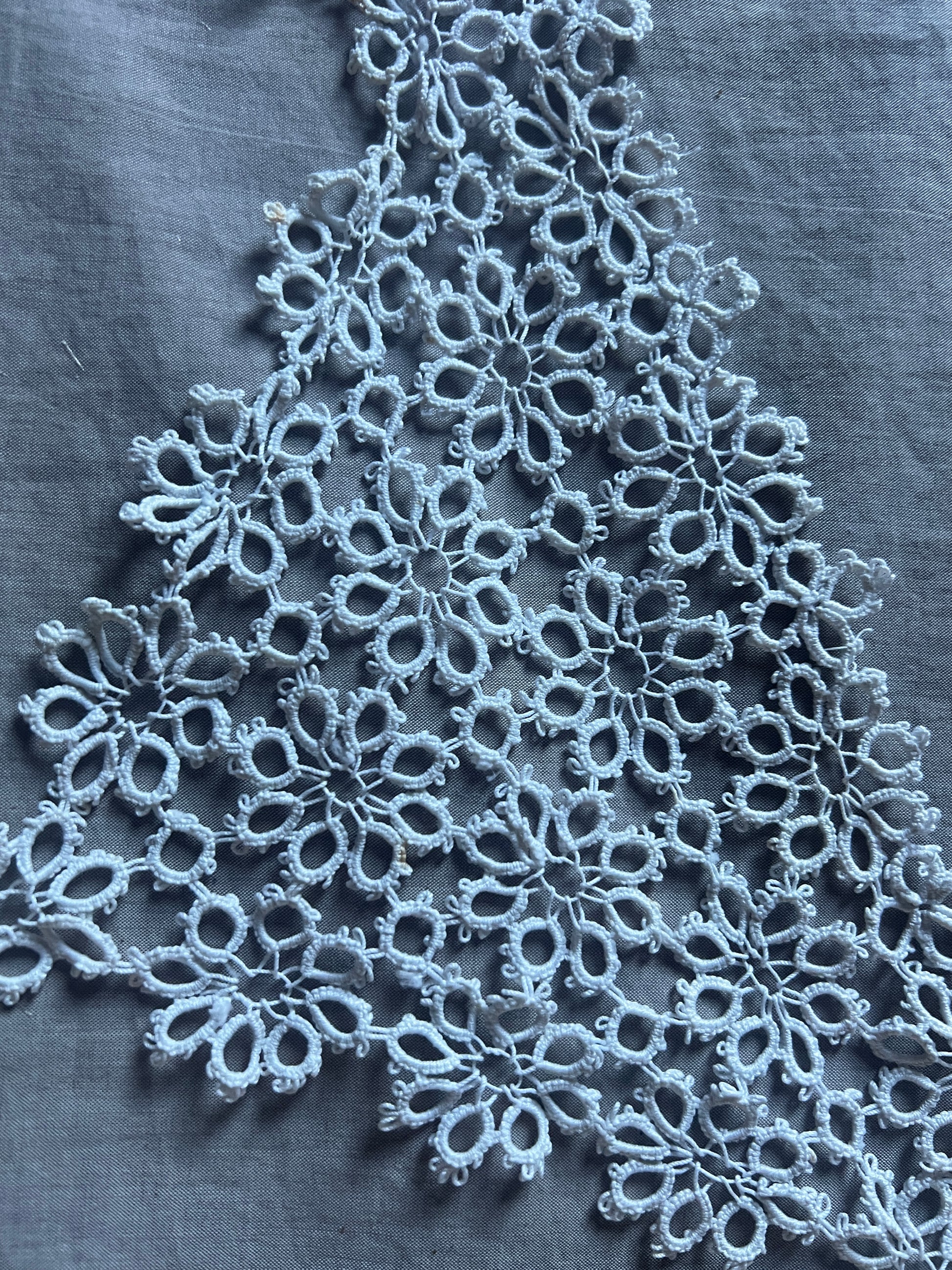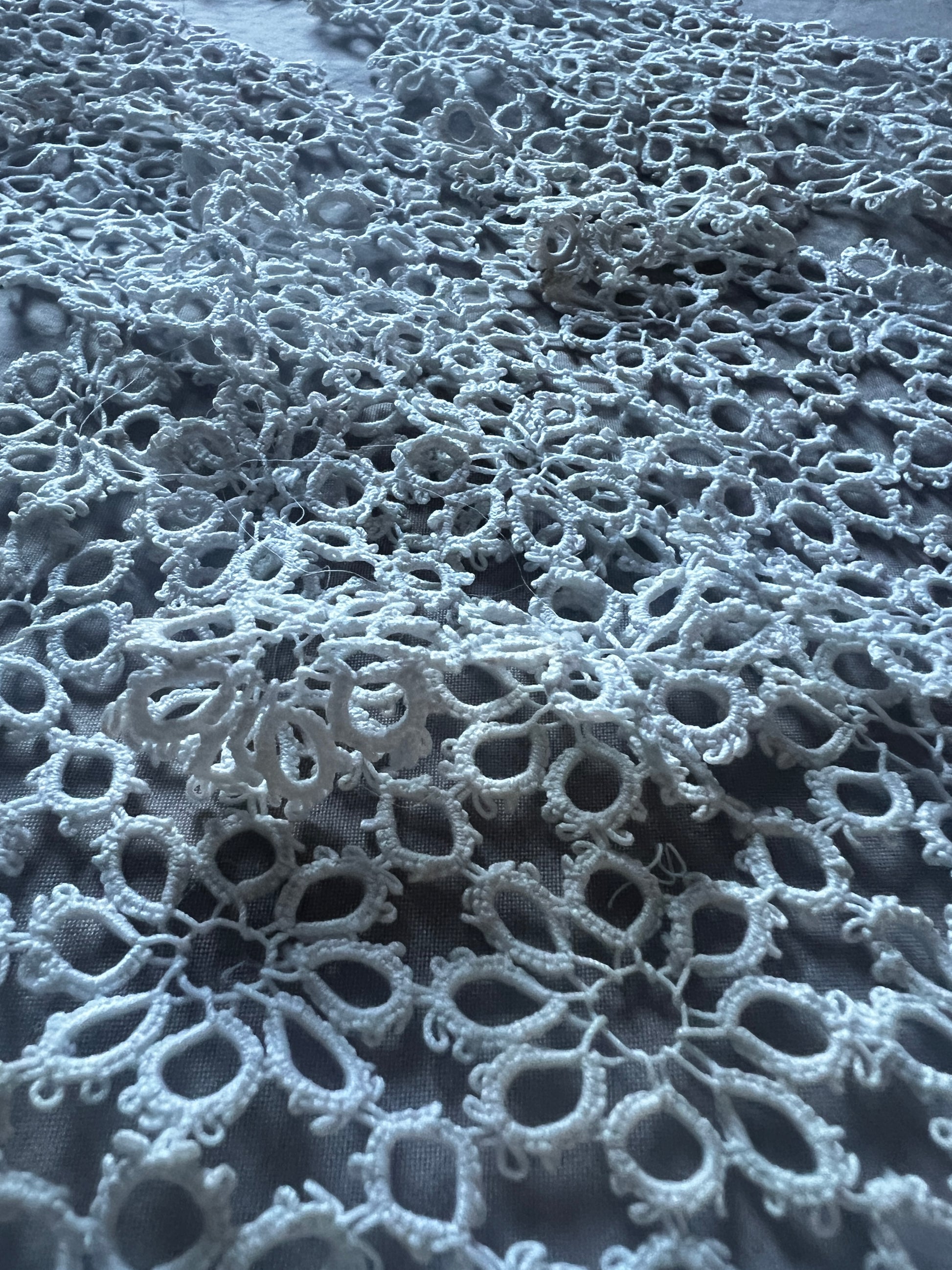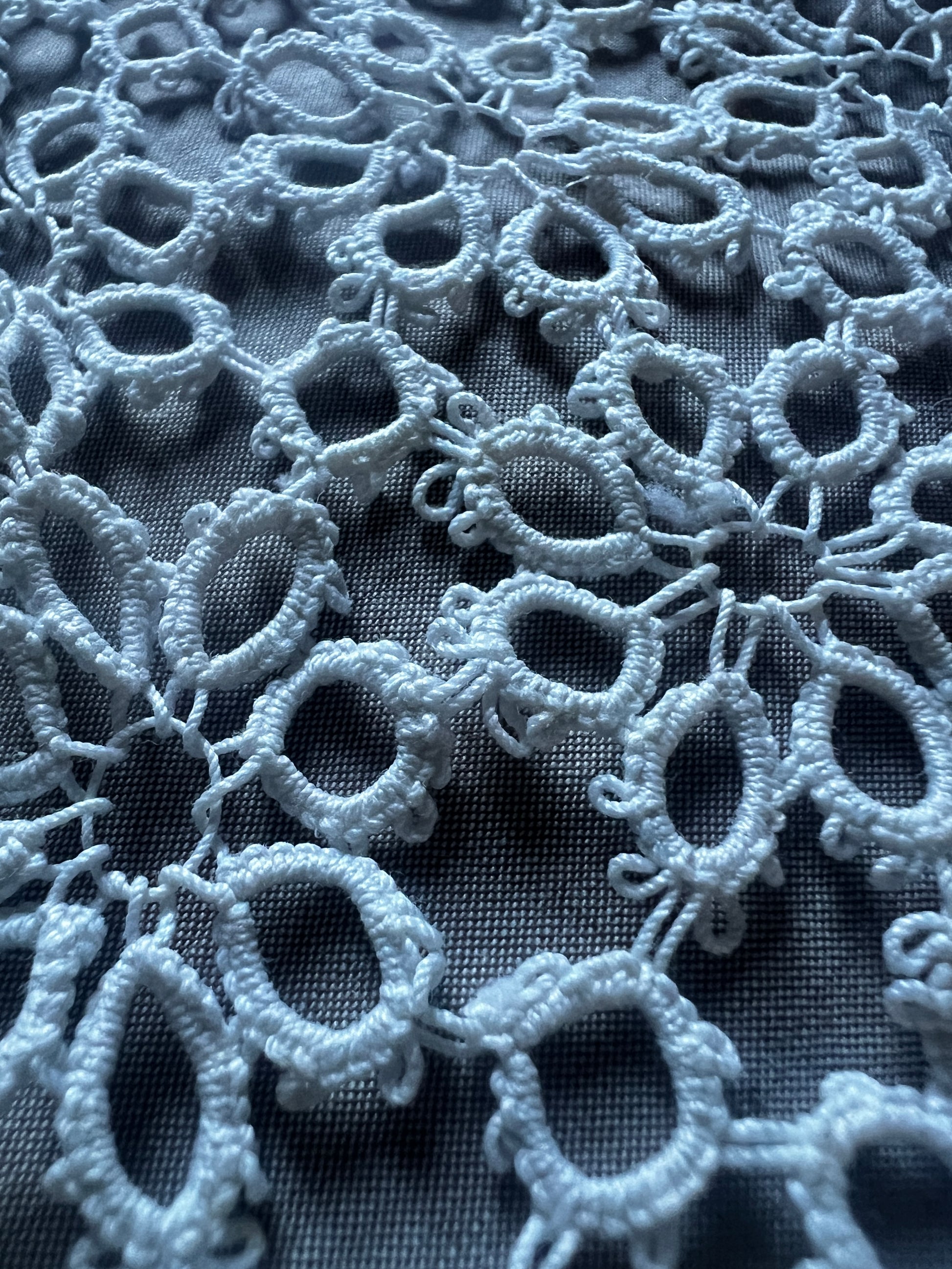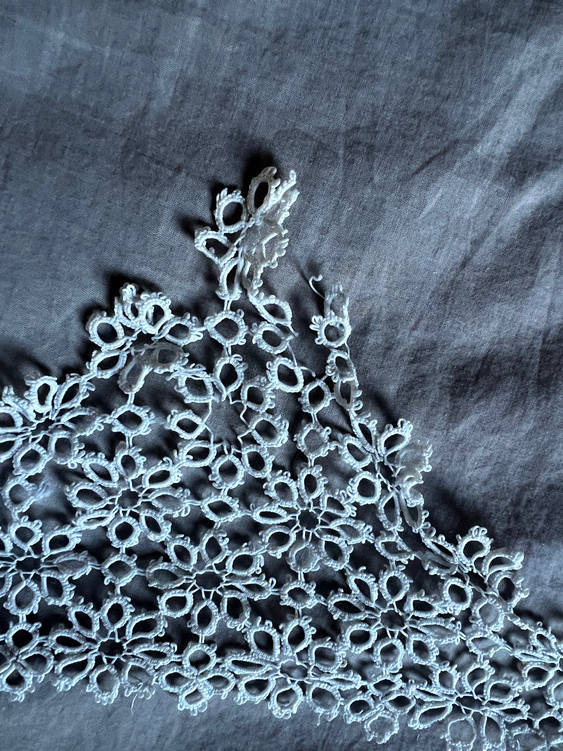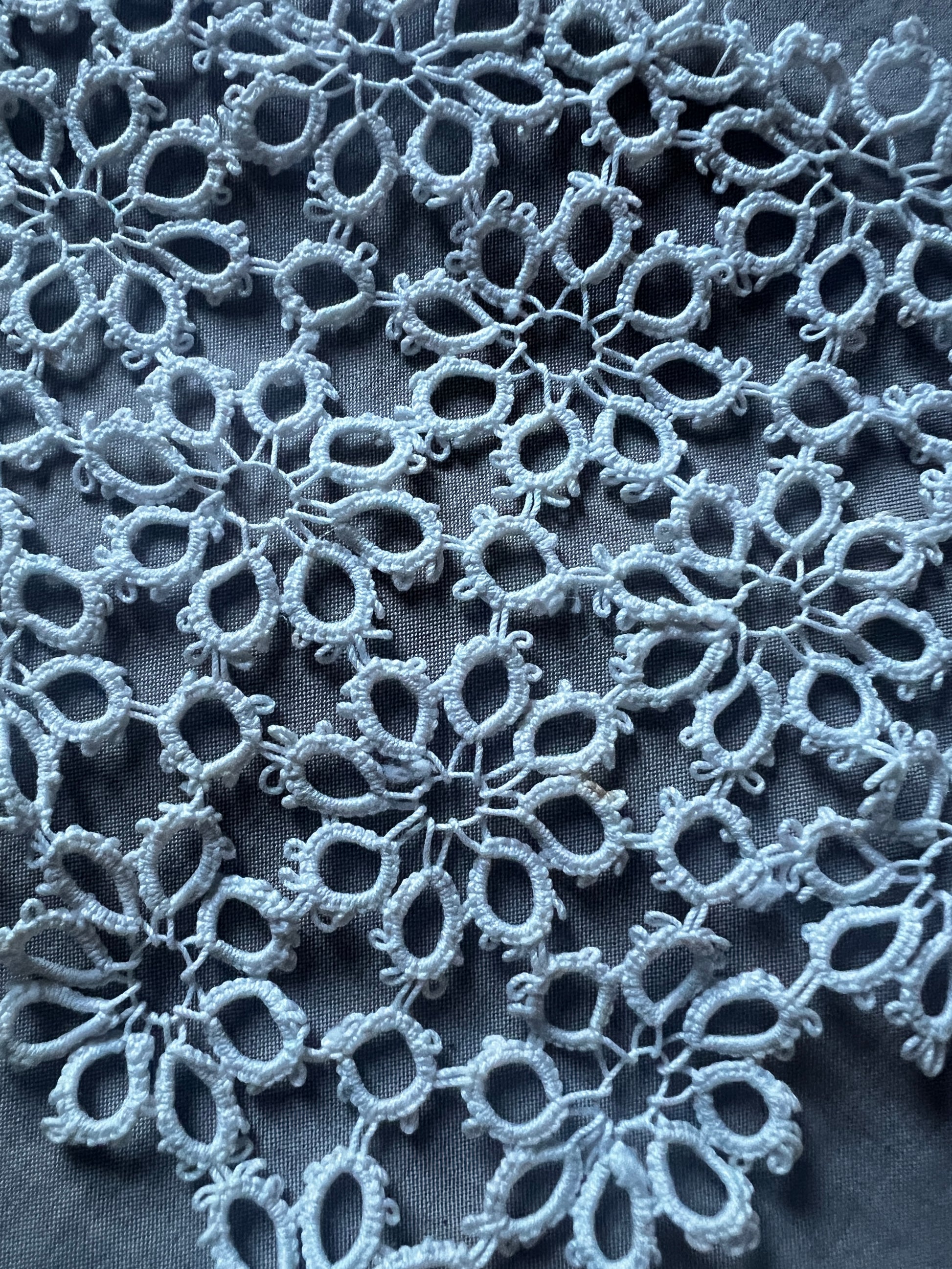 小さなお花のモチーフが連なる、繊細なタティングレースです