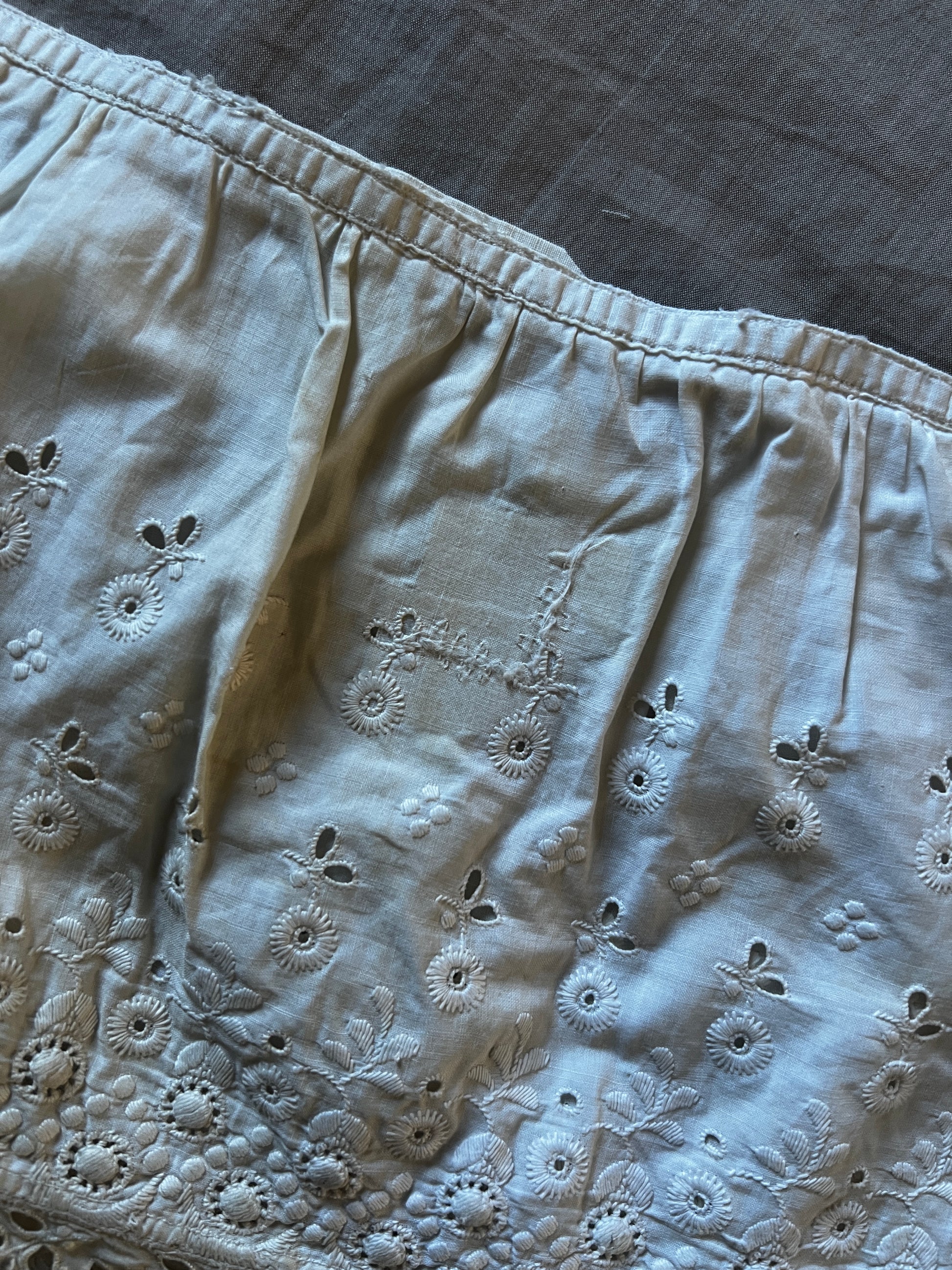 ぷっくりとしたステッチが愛らしい、白刺繍のドレス裾飾りです