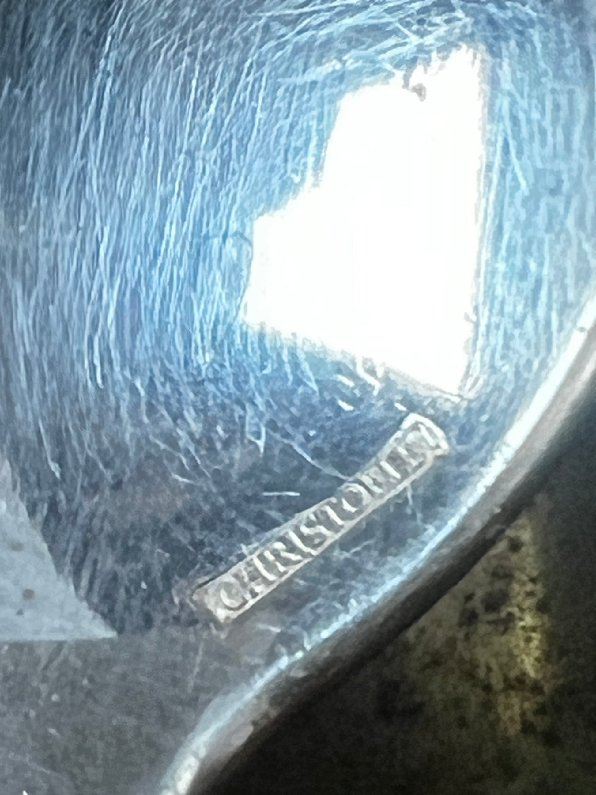 背面にはモノグラムが刻まれており、フランスの老舗ブランド「クリストフル」の刻印が刻まれた質の良いお品です