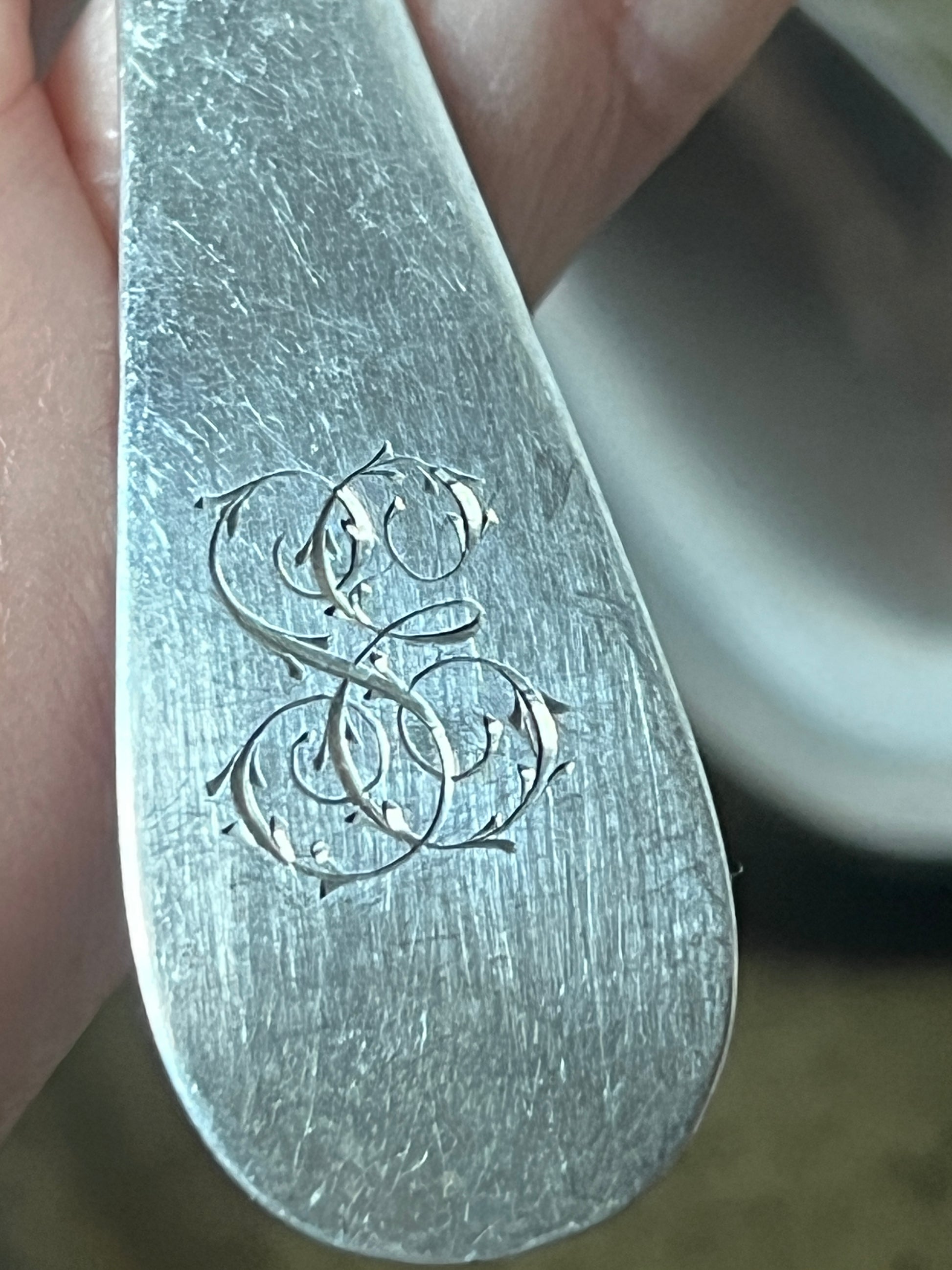 モノグラムの存在から、かつてどこかの家庭で大切に使われていたのではないかと推測される一品です