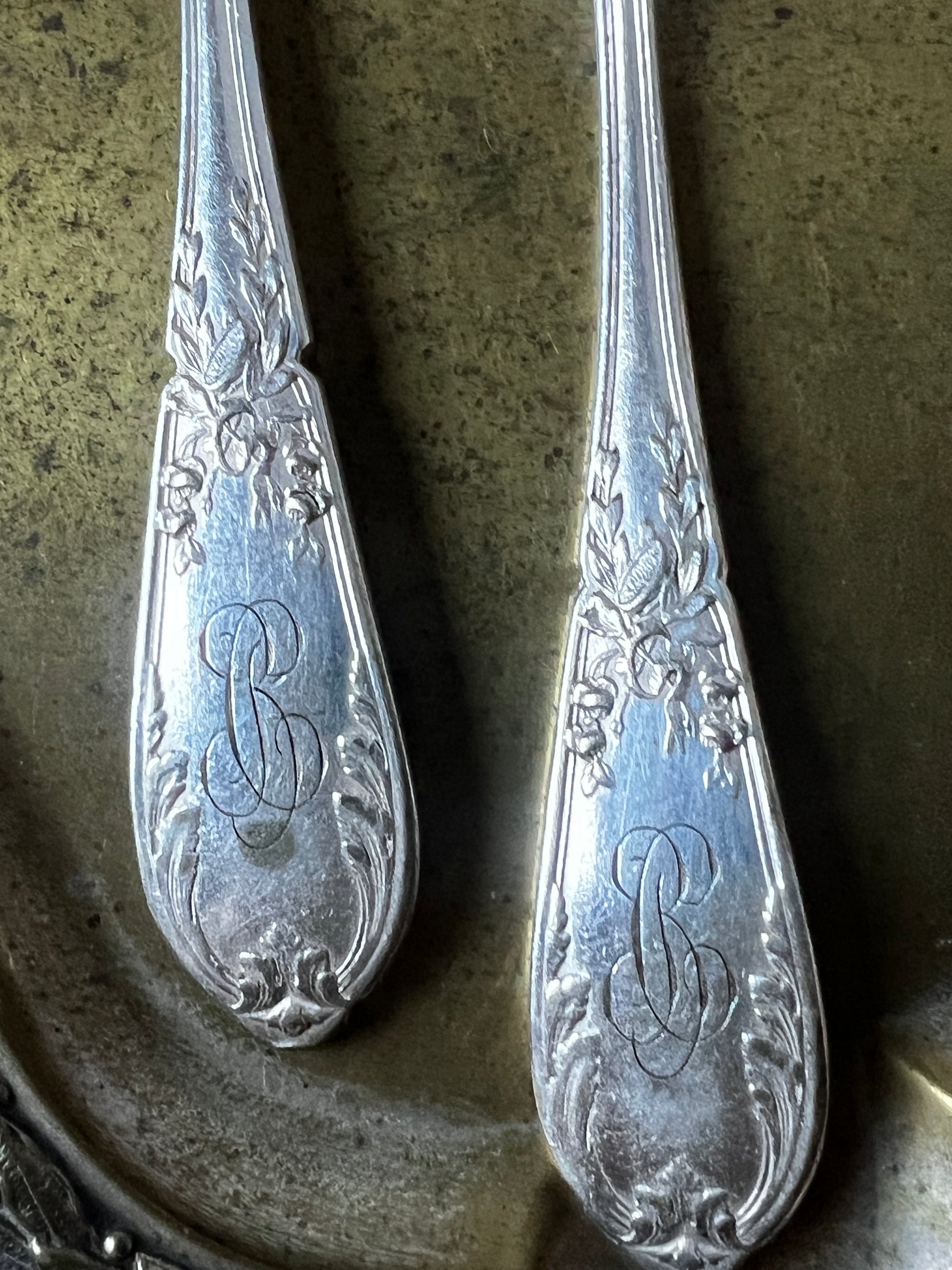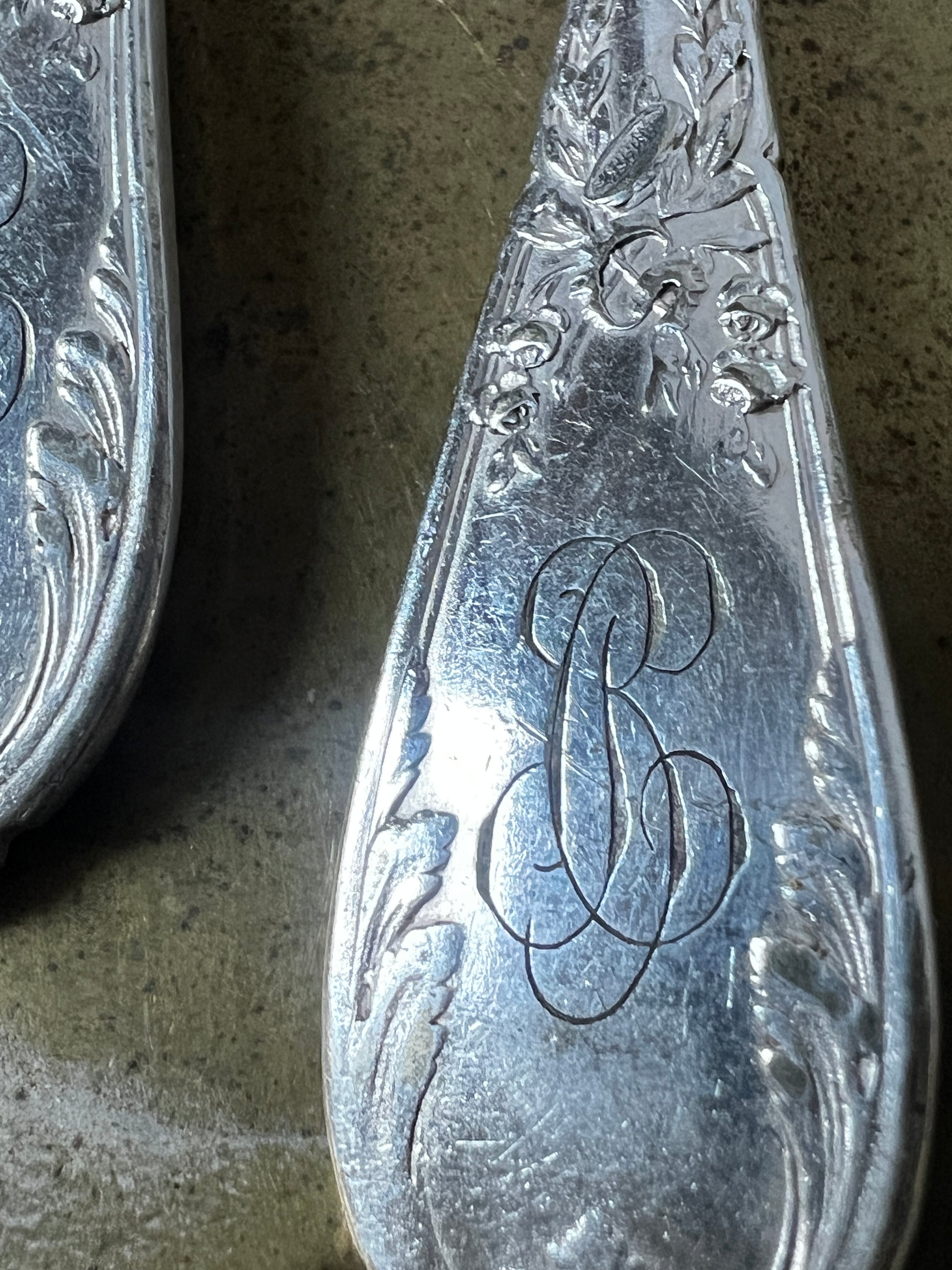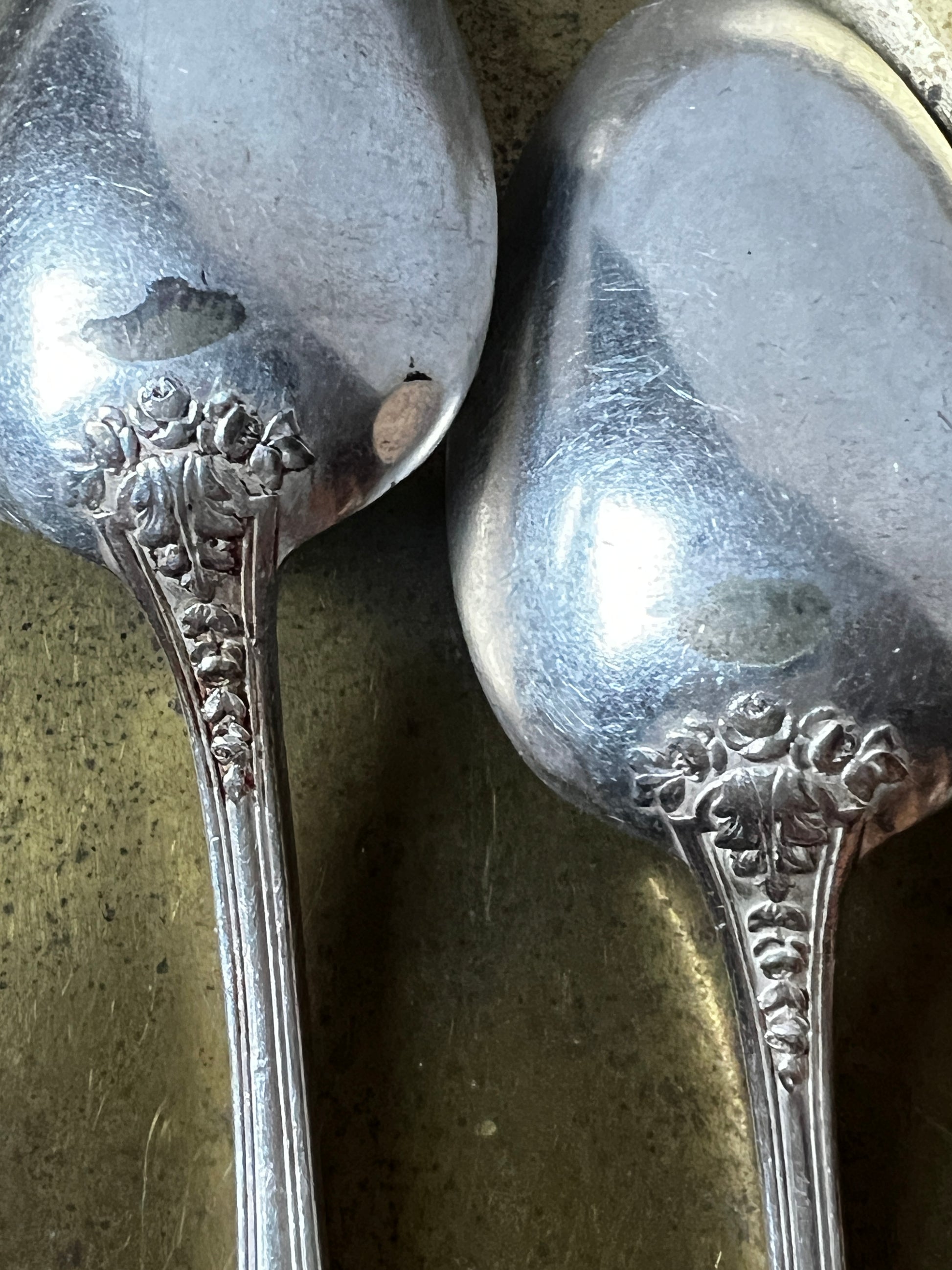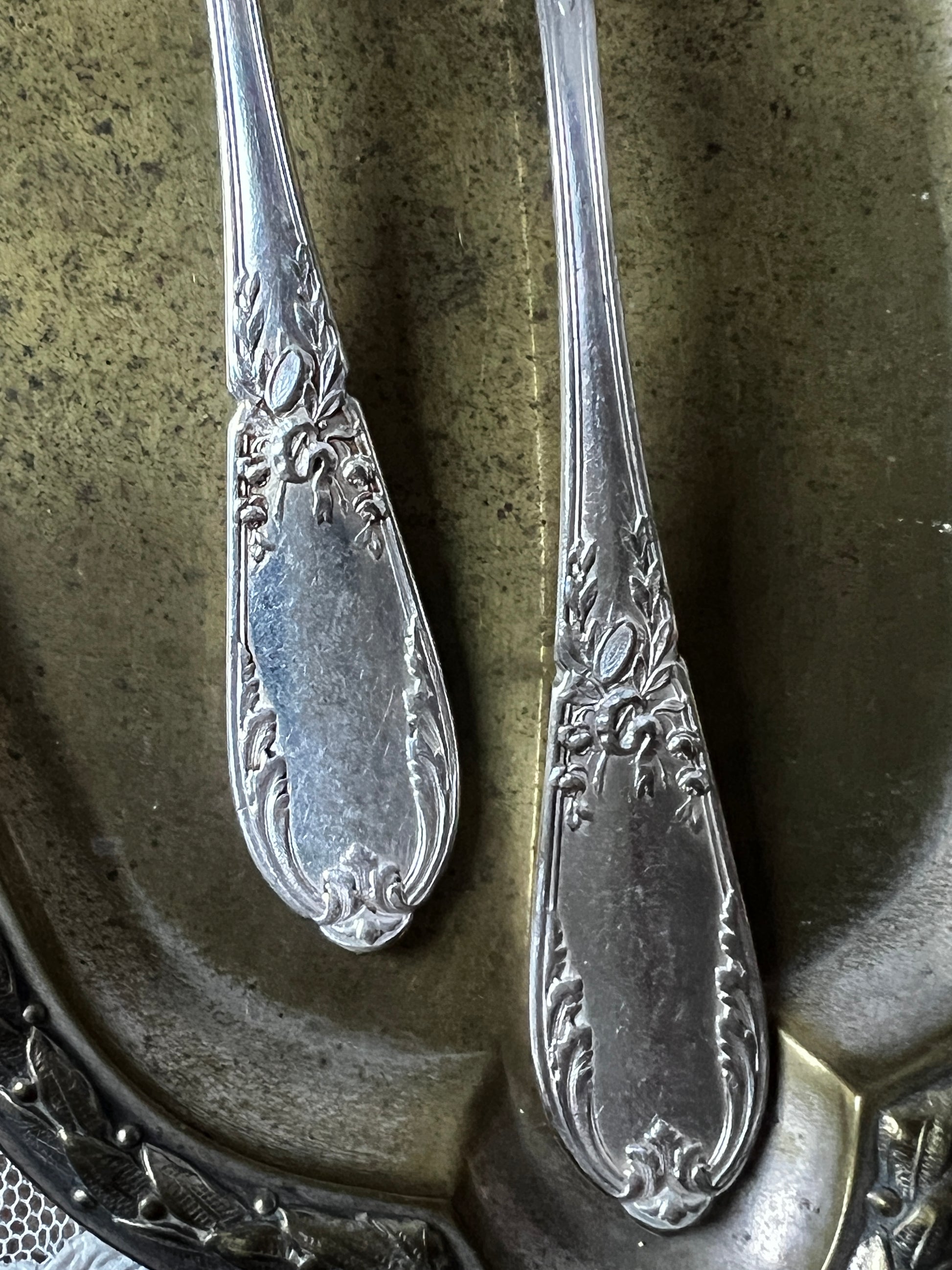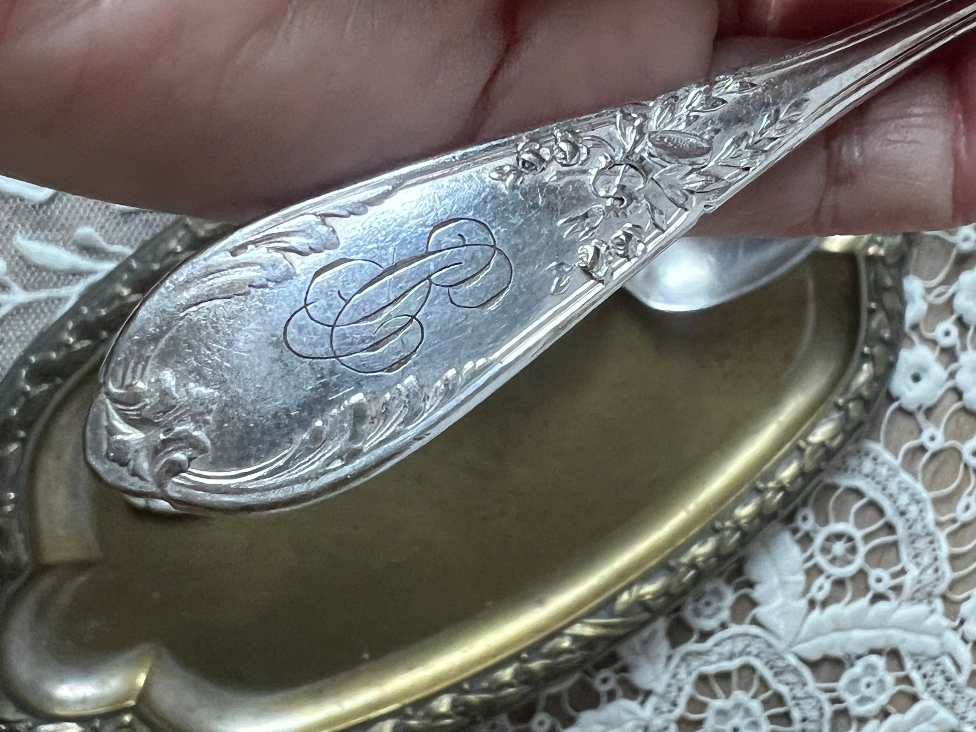 柄の部分のデザインが美しい、銀メッキ製のカフェスプーンです