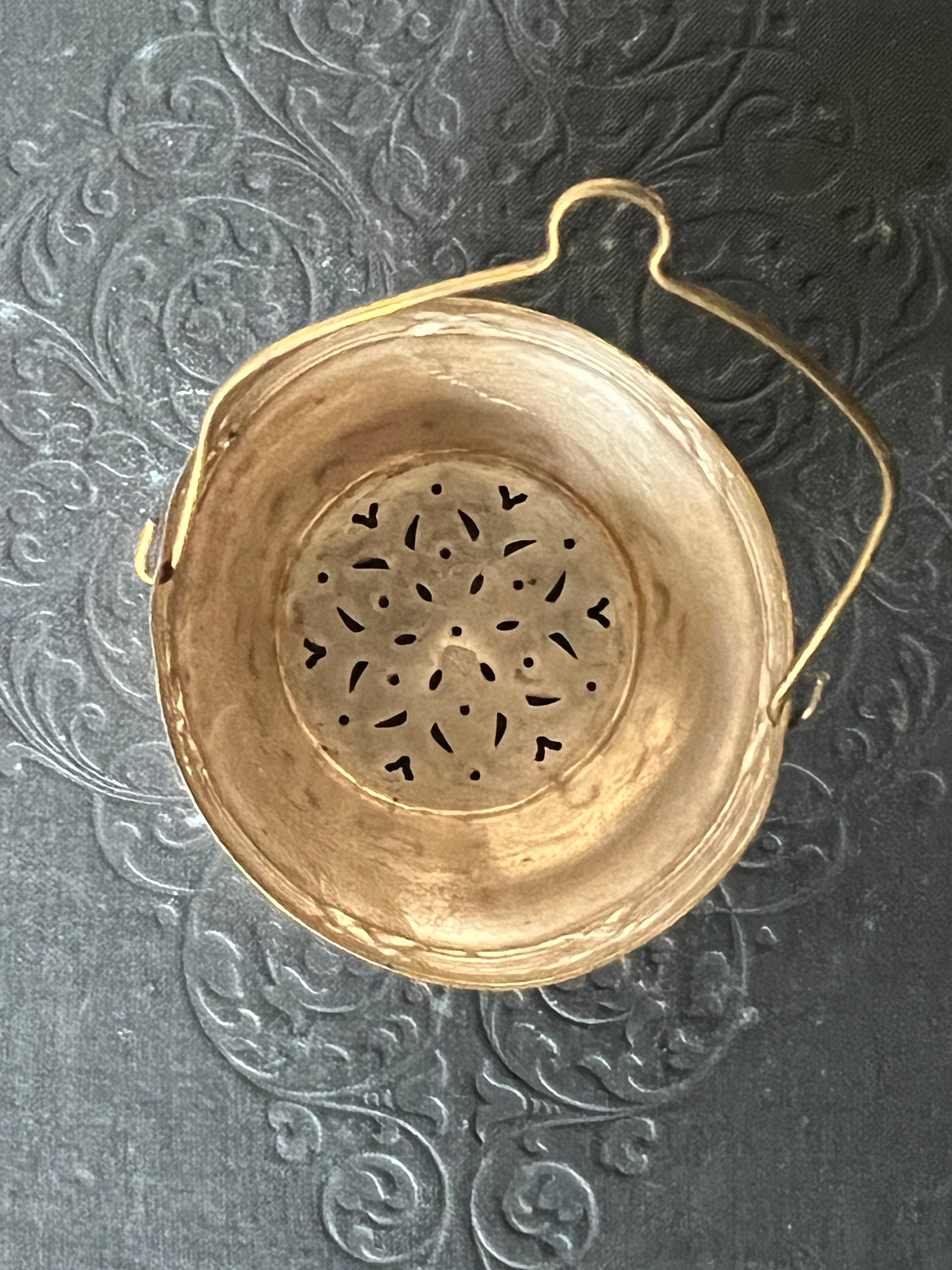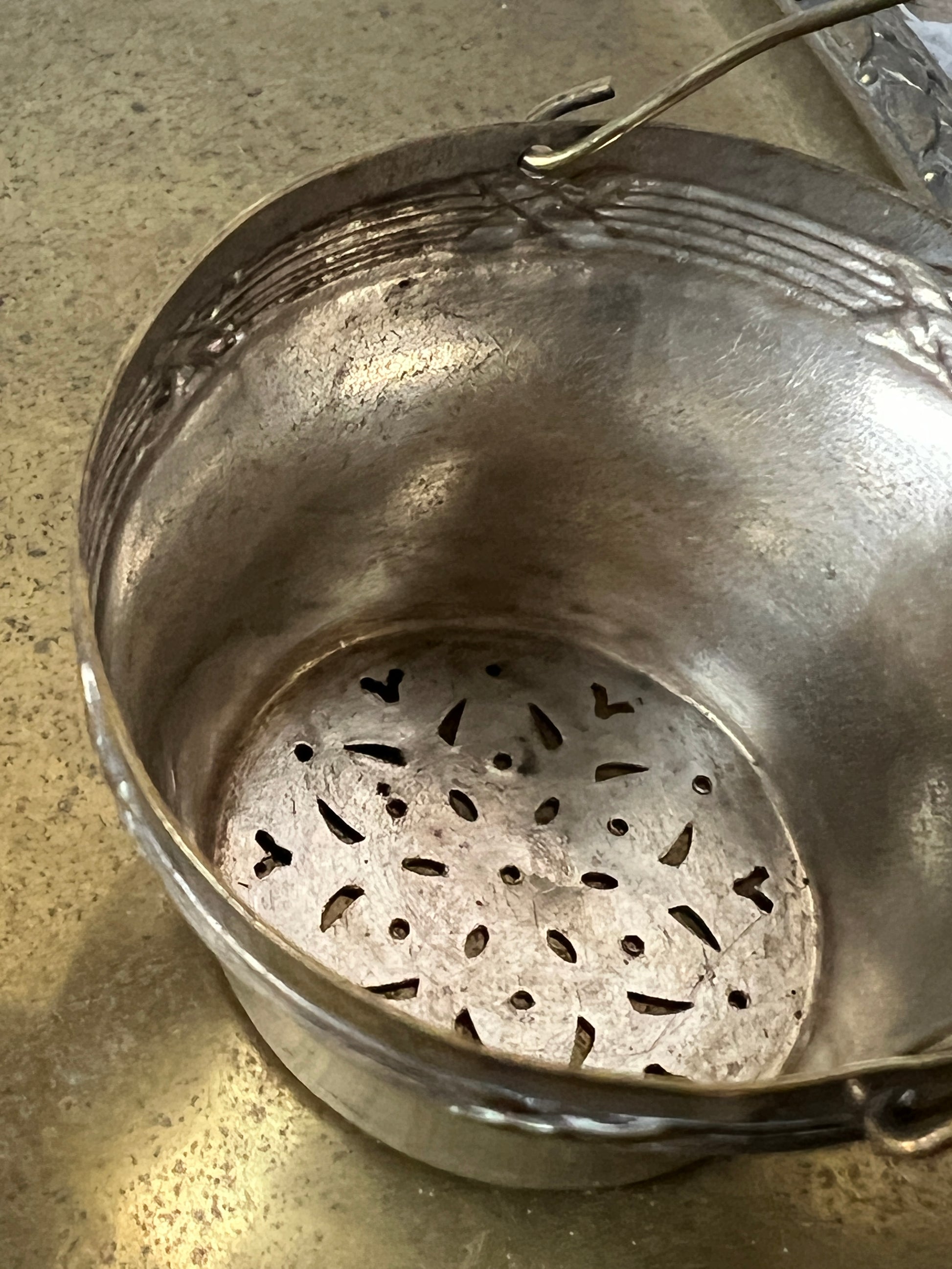 イチゴなどのフルーツに粉砂糖をふりかけるために使われていた優雅な道具で、底面の孔から粉糖をかけていました