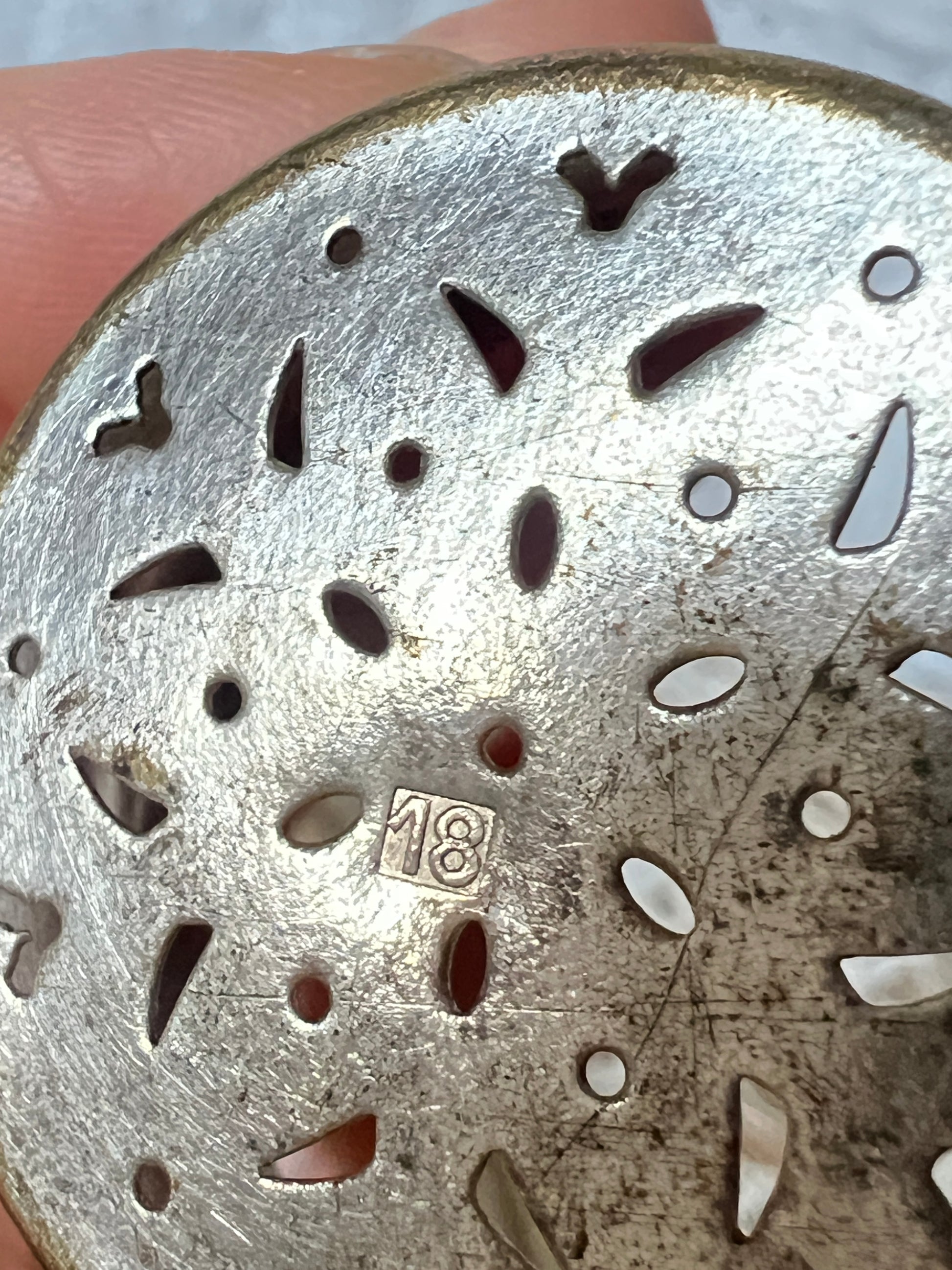 底裏には銀メッキの品質を示すと思われる「18」の刻印があり、経年による独特のくすみや質感が一点物ならではの深い味わいを感じさせる一品です