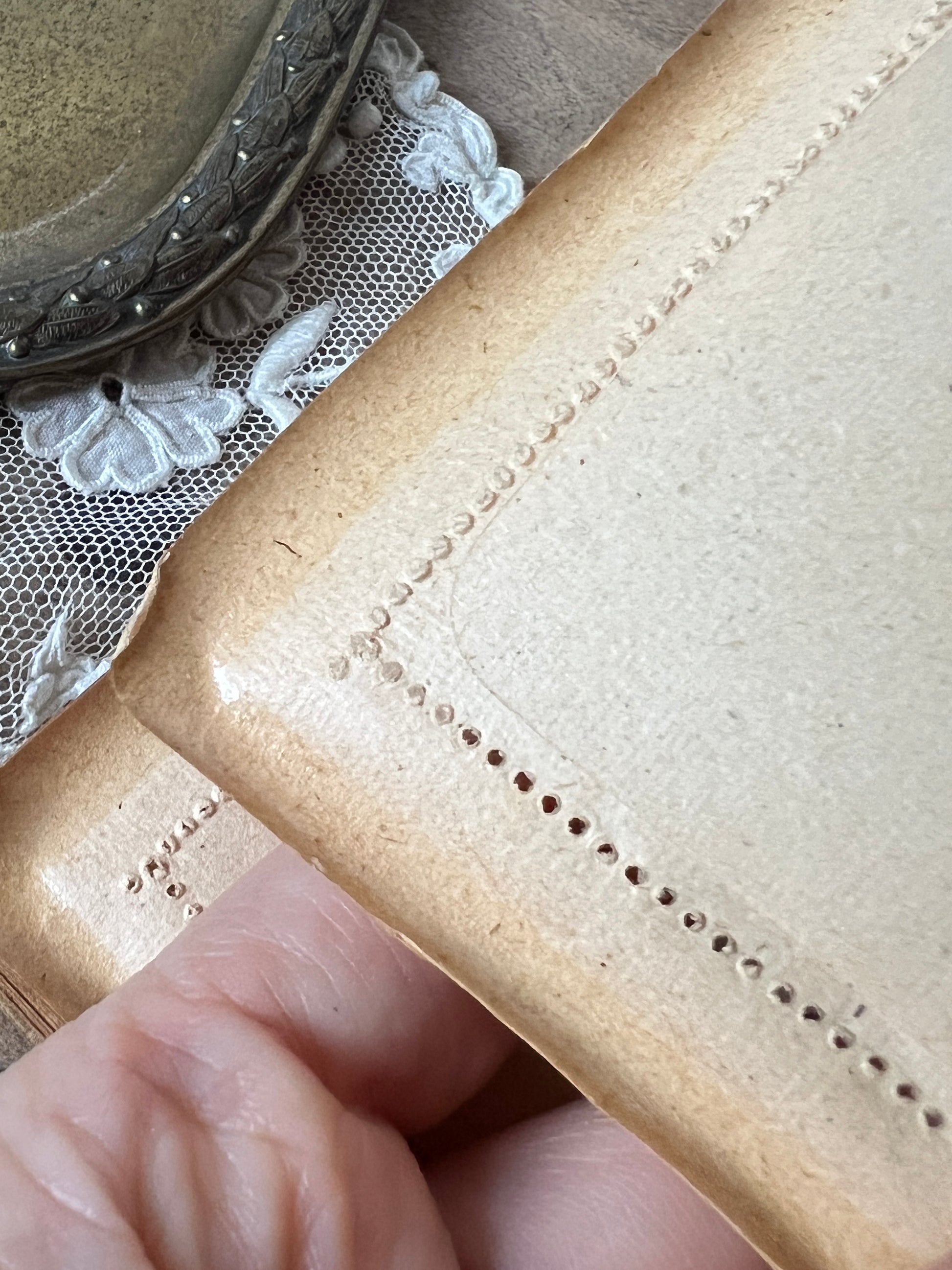 中紙は、手紙を書き終えた後にそのまま折りたたんで封をする「カード・レター」仕様で、縁には切取り用のパンチ穴が施されています
