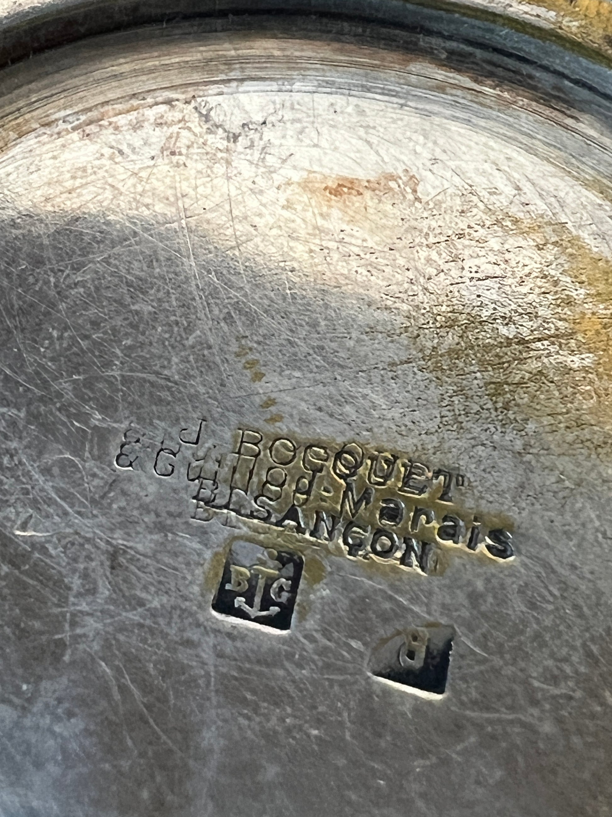 1800年代から1900年代初頭にかけて活躍したJ. BOCQUET & C. Guillard Maraisによる作で、真鍮にシルバーをコーティングしたシルバープレート製