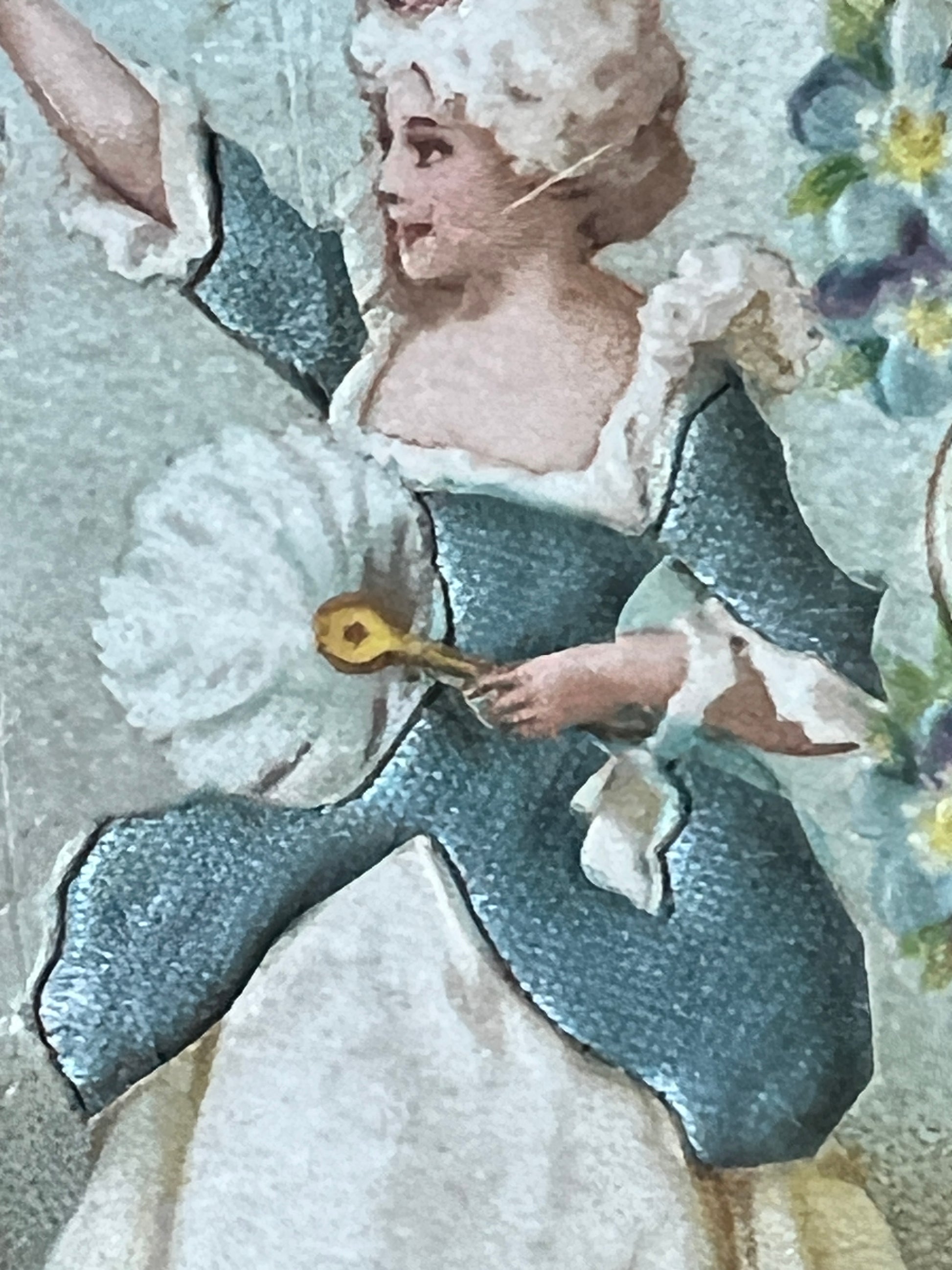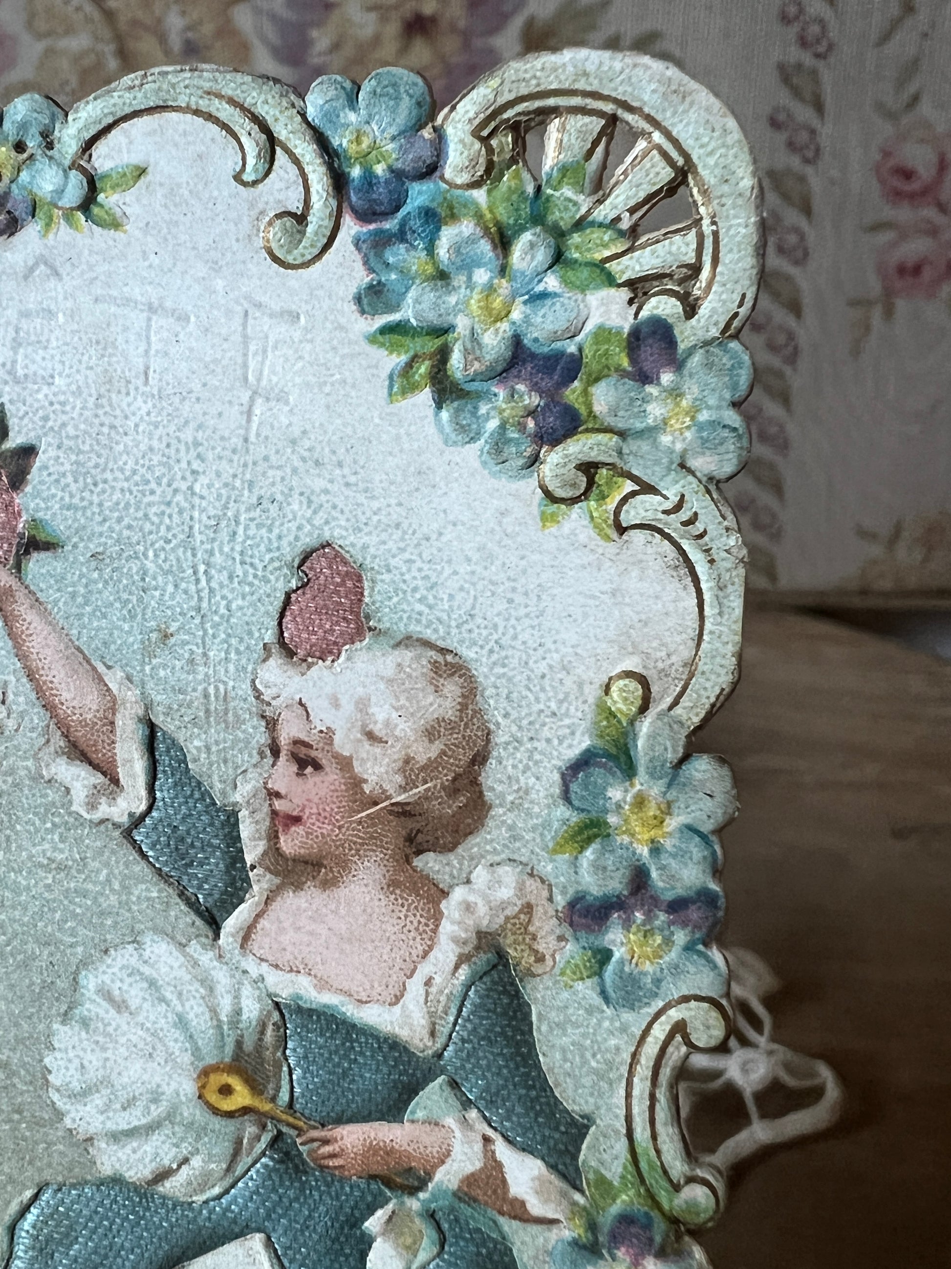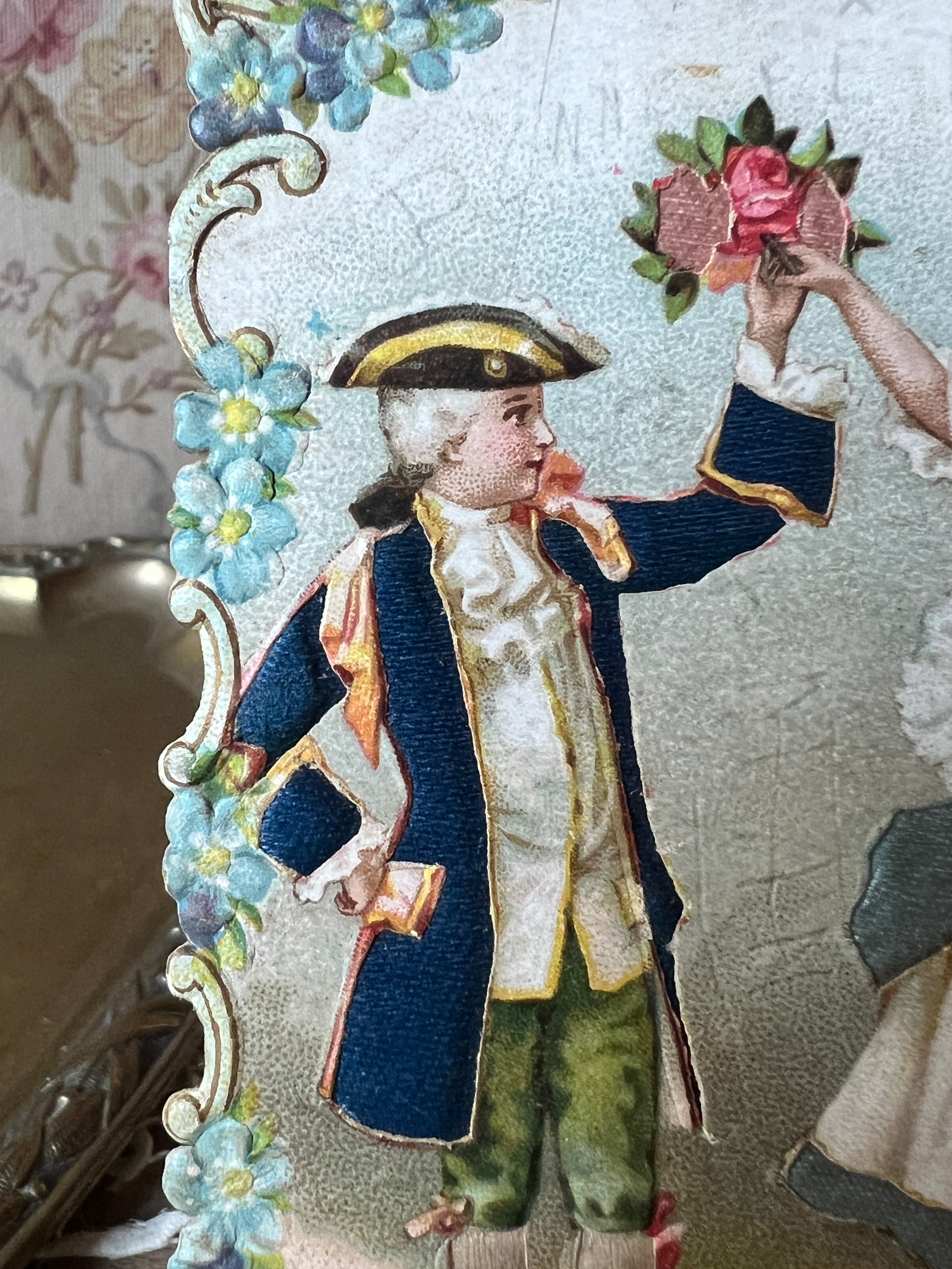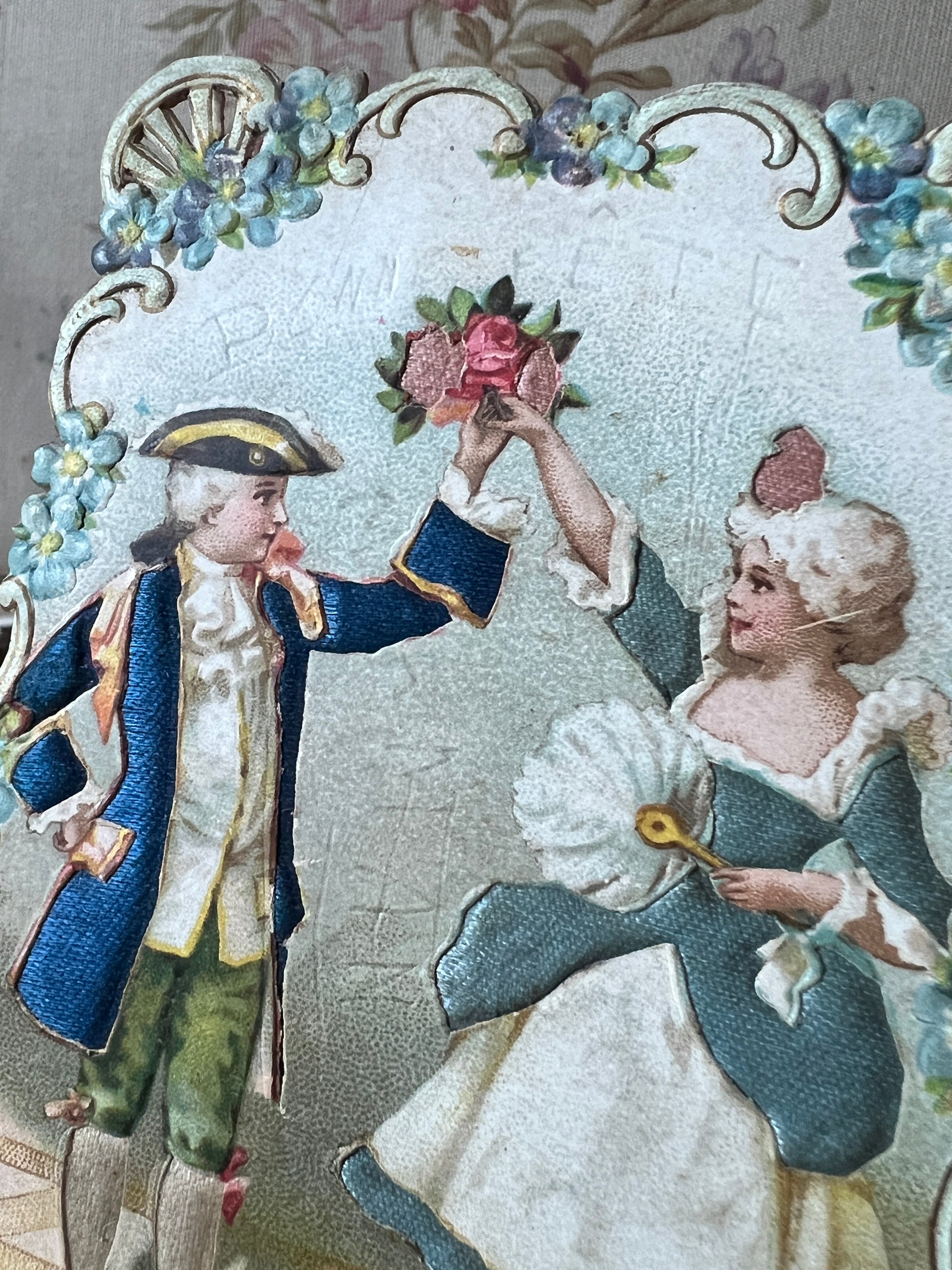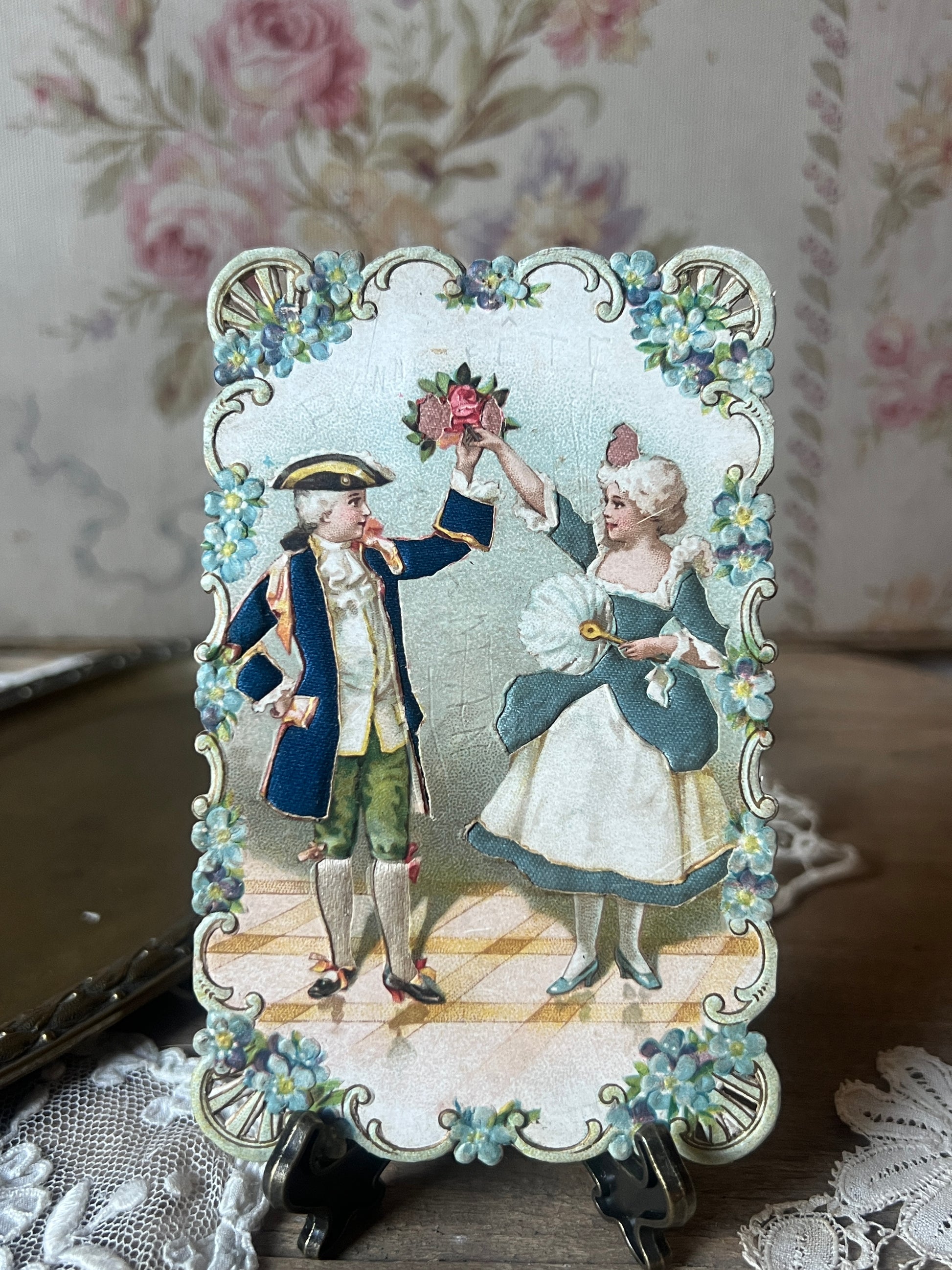 気品あるロココ調の男女が描かれた美しいクロモスです