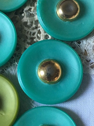 中央のゴールドカボッションが存在感を見せる樹脂&メタルボタンセットです。