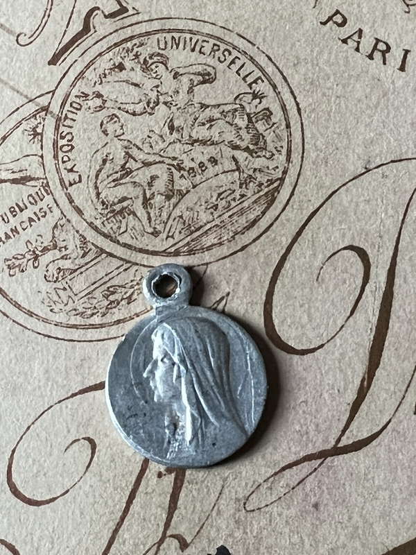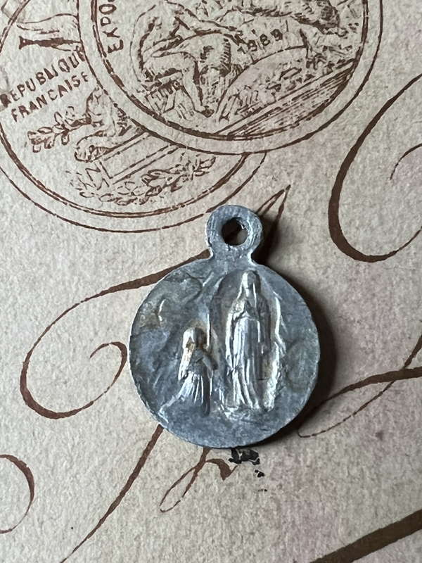 とても小さなメダイです。 ルルドの聖母と、聖母出現の場面が描かれたメダイです。 ペンダントトップやシャトレーンチャームとしても使っていただけます。