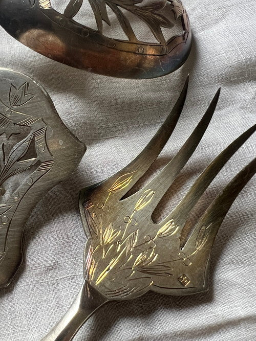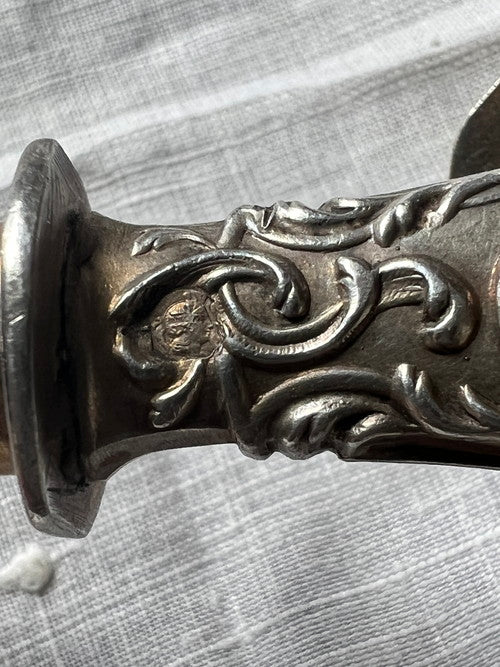 柄の部分にはモノグラムが刻まれており純銀製の刻印が確認できております。