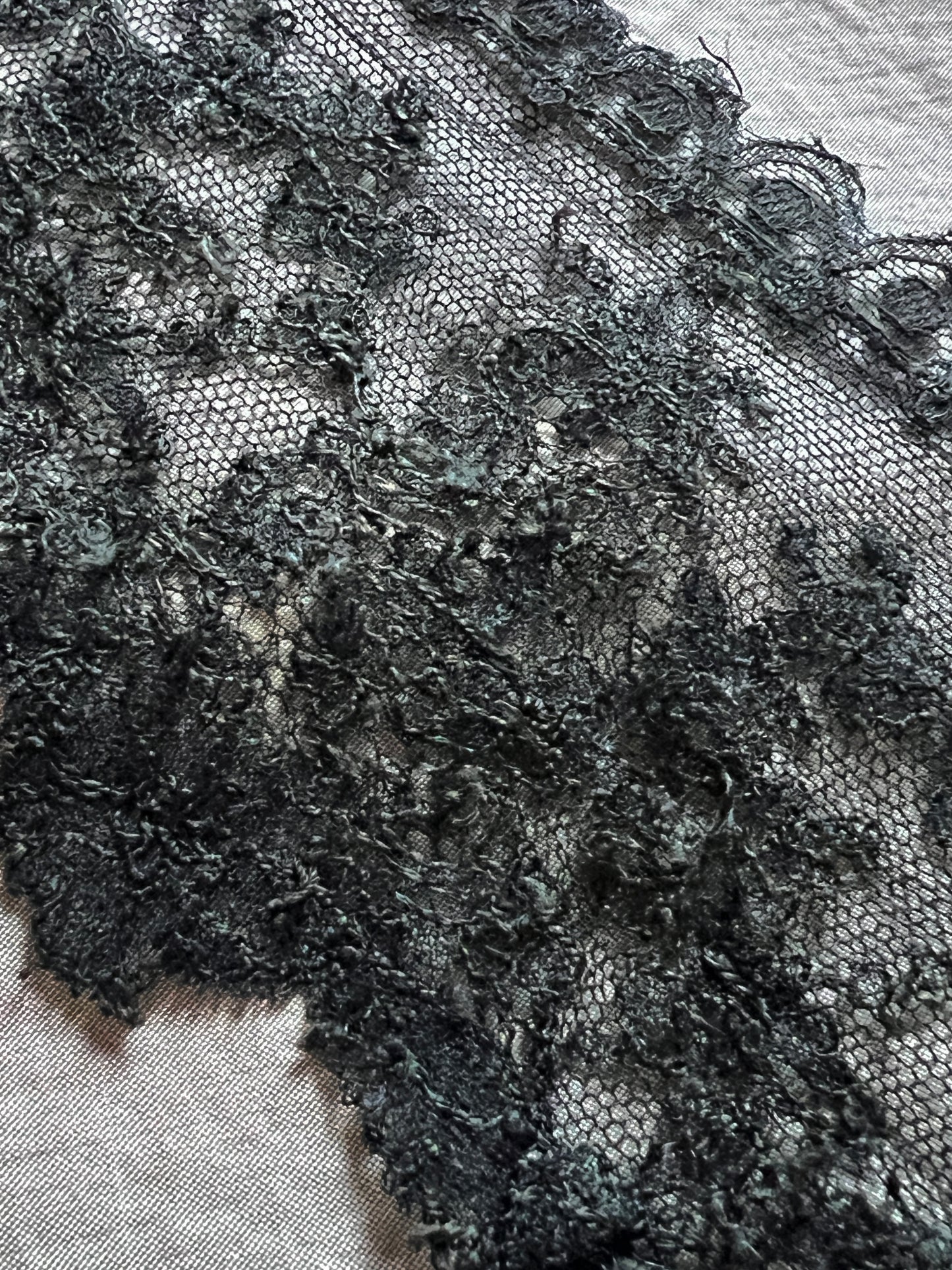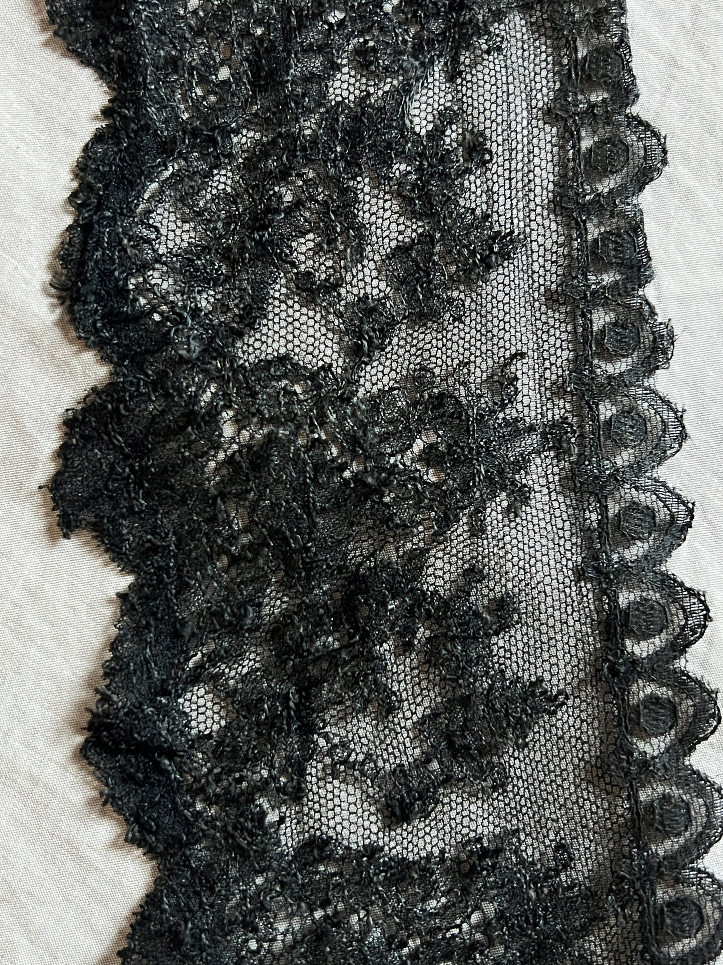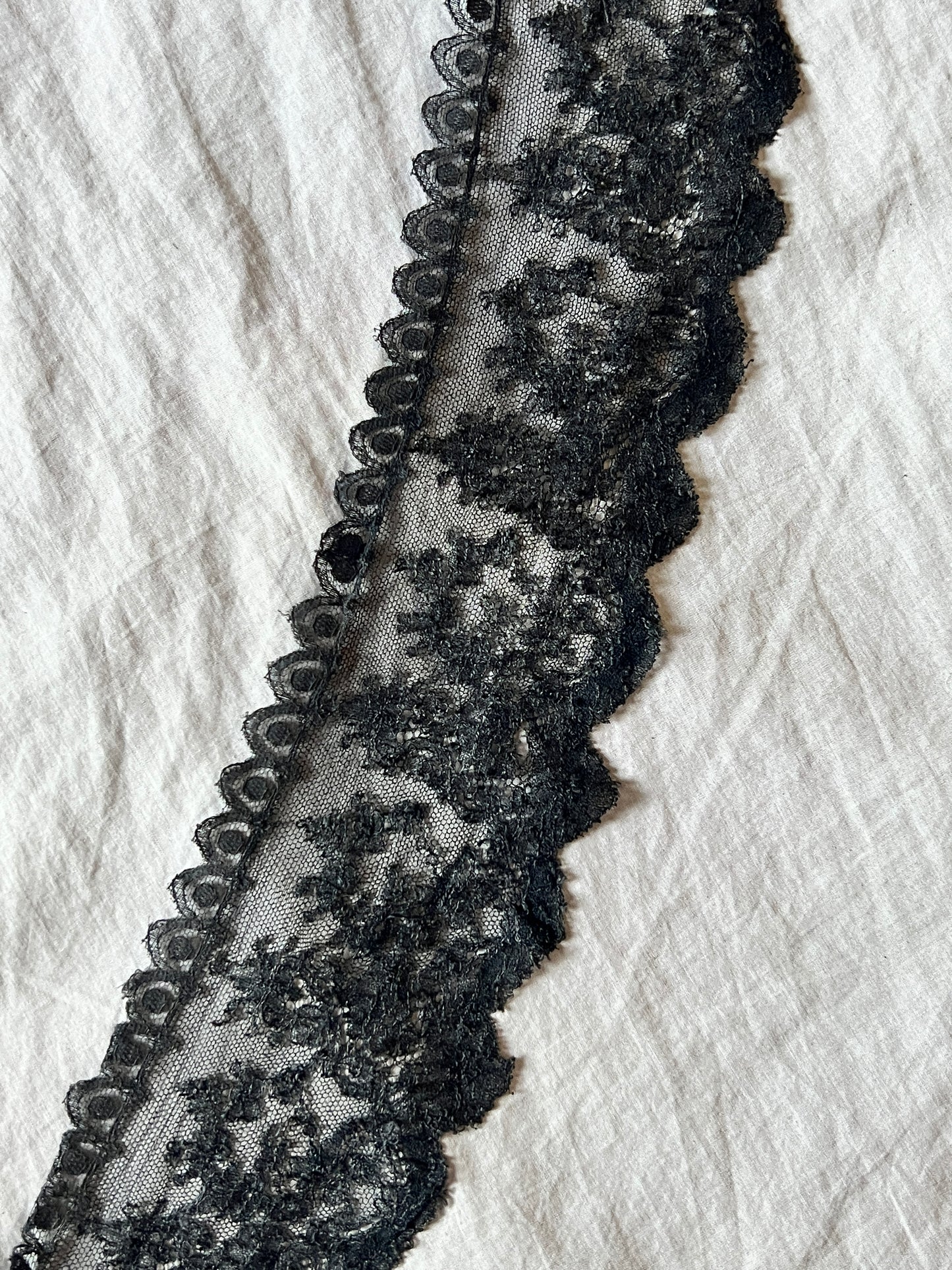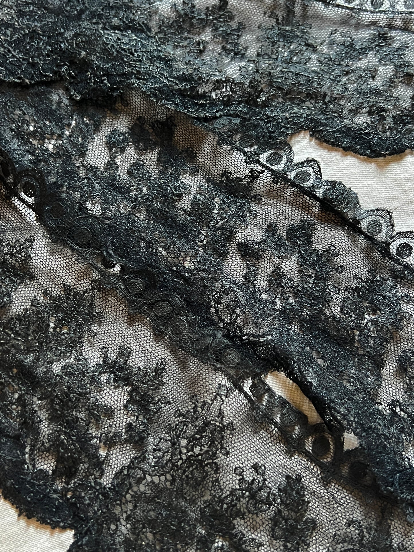 9.5cm幅×200cm 19g 繊細でエレガントな黒チュールレース。 ヴィクトリアンスタイルのドレスを飾っていたパーツです。